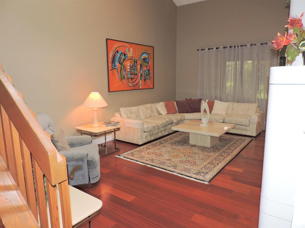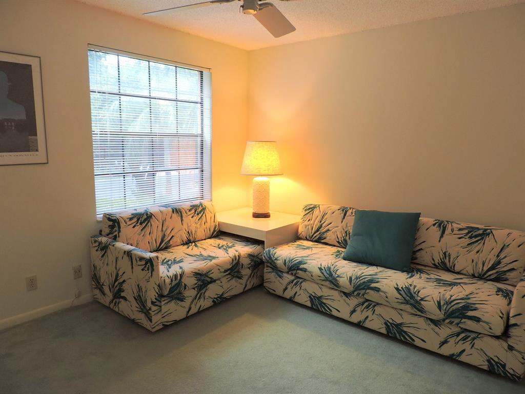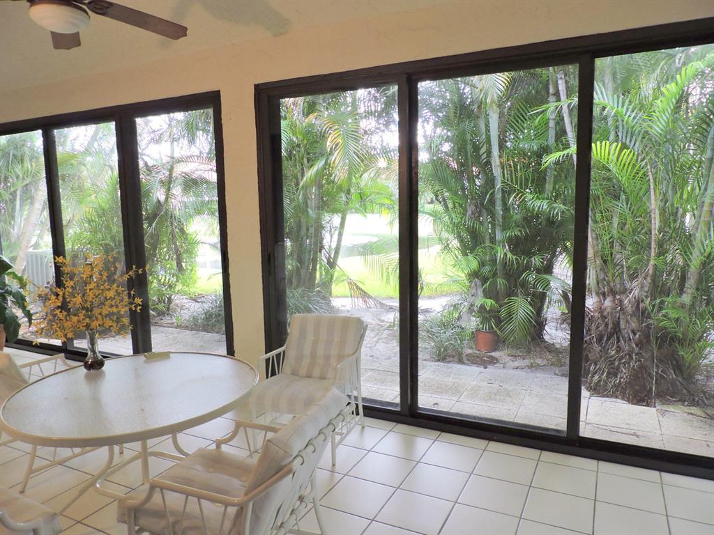 Beautiful 3/2/1 townhouse w/ 2 car garage in prestigious Boca Pointe Country Club. NO MANDATORY MEMBERSHIP. TURNKEY FURNISHED (except TV in master bedroom). Newer AC and washer & dryer.Lovely water & garden view from glassed 25 ft. patio. Huge master suite w/ walk -in closet, separate tub & shower. Just steps to large tropical community pool. Community operated as a condo, so all outside maintenance, roof, insurance on building is covered. Cable TV and alarm system, and water are included in maintenance as well.