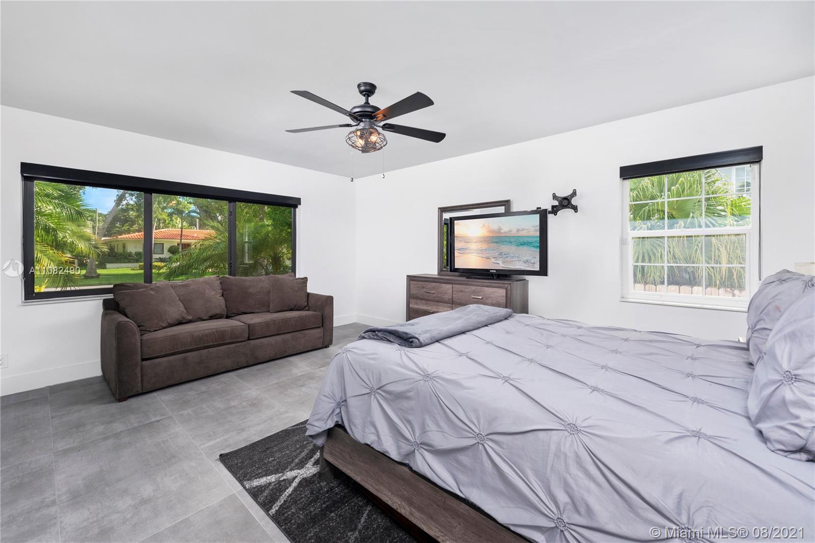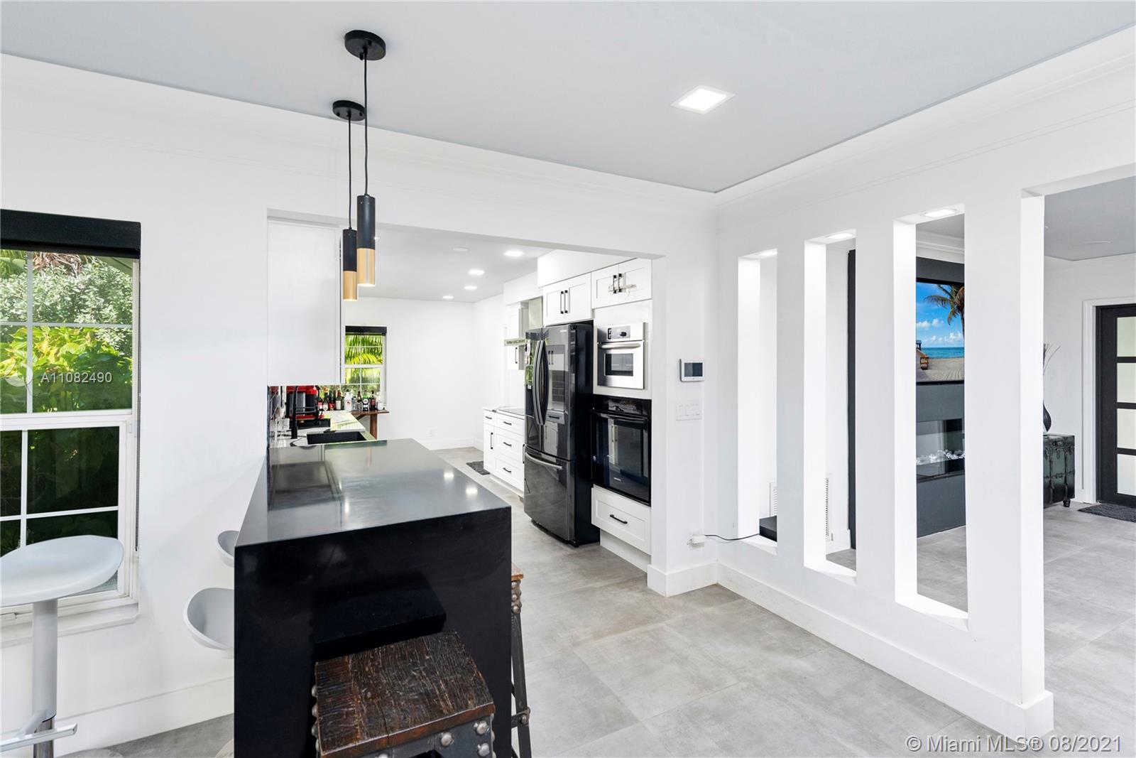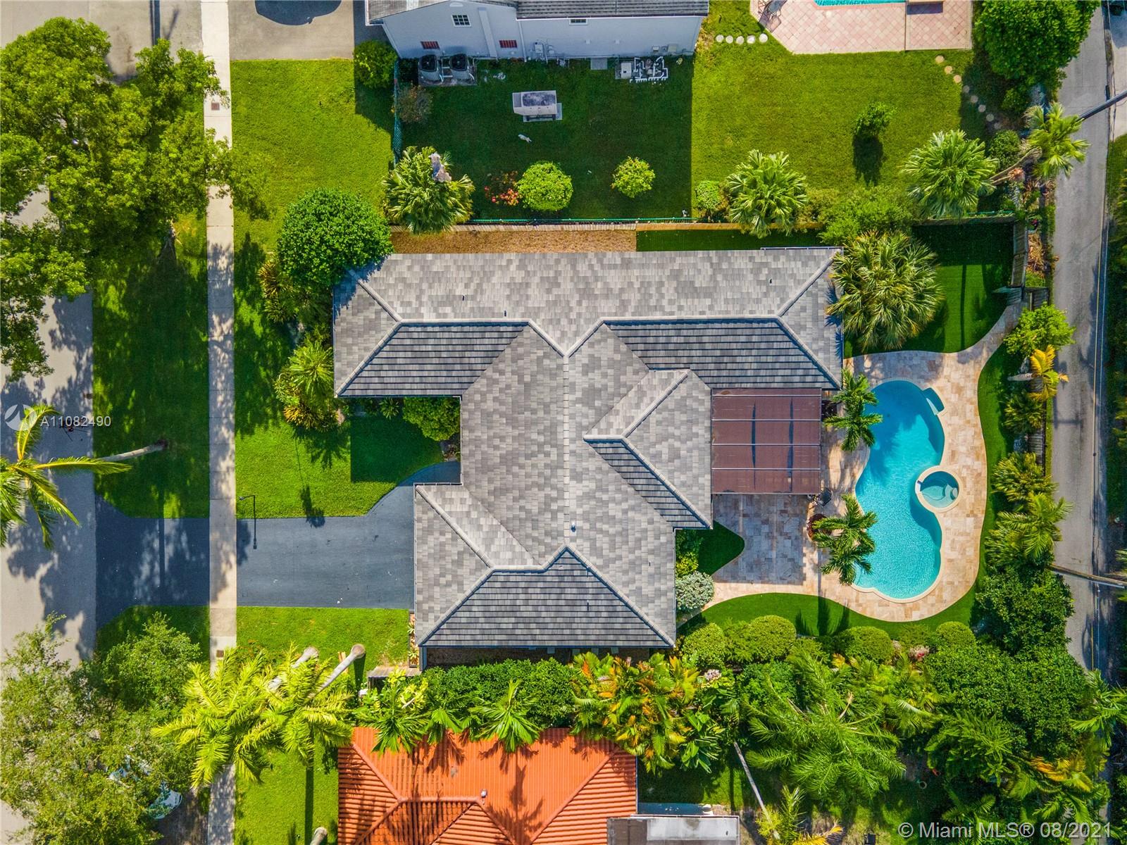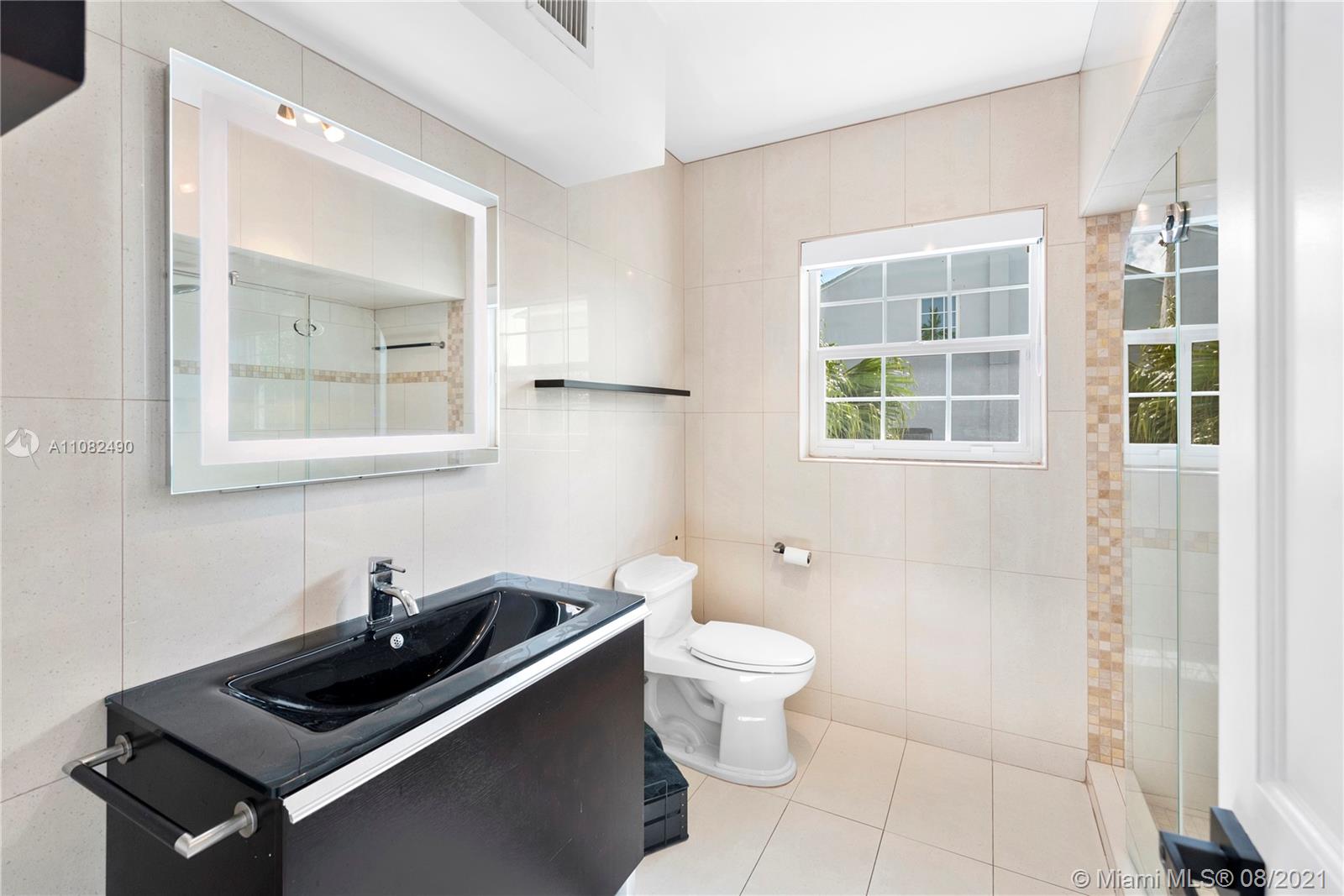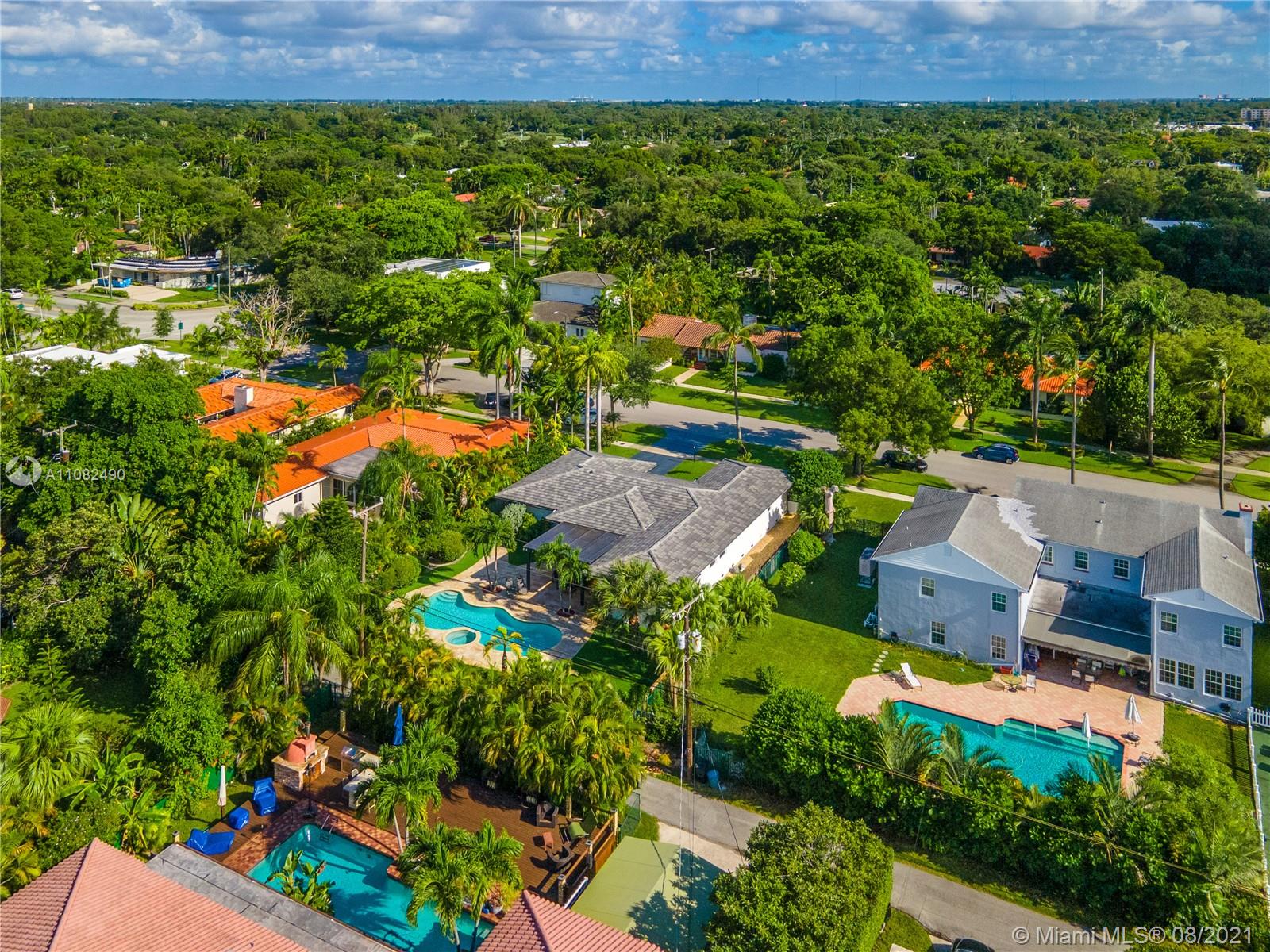 Newly renovated and redesigned 3 bedroom, 3.5 bath home on tree-lined 96th Street in Miami Shores. Located just the six homes away from glistening Biscayne Bay, this home sits on an oversized lot with a magnificent backyard with heated swimming pool, hot tub, brand new pergola and freshly installed Astro Turf throughout the generous sized backyard. Some of the many countless home upgrades include: new roof, two new AC units, brand new Italian porcelain floors throughout, new open kitchen with bar top island, custom countertops, farmers sink, and new smart appliances including wine cooler. The main living area showcase a new custom media wall with surround sound, fireplace and electric shades. Miami Shores is a wonderful community, centrally located, close to everything Miami has to offer!