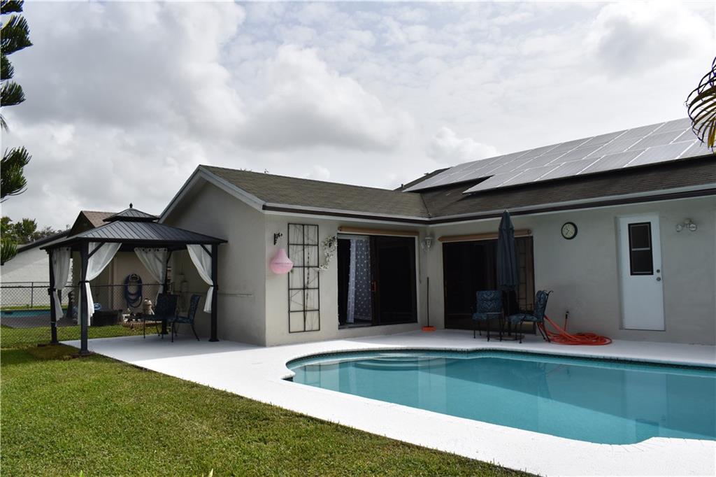Relax in the pool or paddle down the canal when you own this fantastic ,energy efficient, waterfront 3 bdr, 2 bath home. Newly installed Solar Panels and a new hybrid hot water heater help cut your electric bill. Entertain in the sunken living room with cathedral ceiling. Enjoy the recently updated kitchen with wood cabinets, granite countertops, SS appliances and new Fotile range hood. Master Bath has been stylishly updated. Thie HOA has low fees as well as Basketball Court and Playground. Local school, Westchester Elementary School is rated 8/10 by GreatSchools.org. Recreation opportunities abound as this well-located home is close to the Panthers Iceden, Coral Springs Aquatic Center, the SportPlex, and picturesque Westchester Lake Park as well as easy access to Sawgrass Xway.
