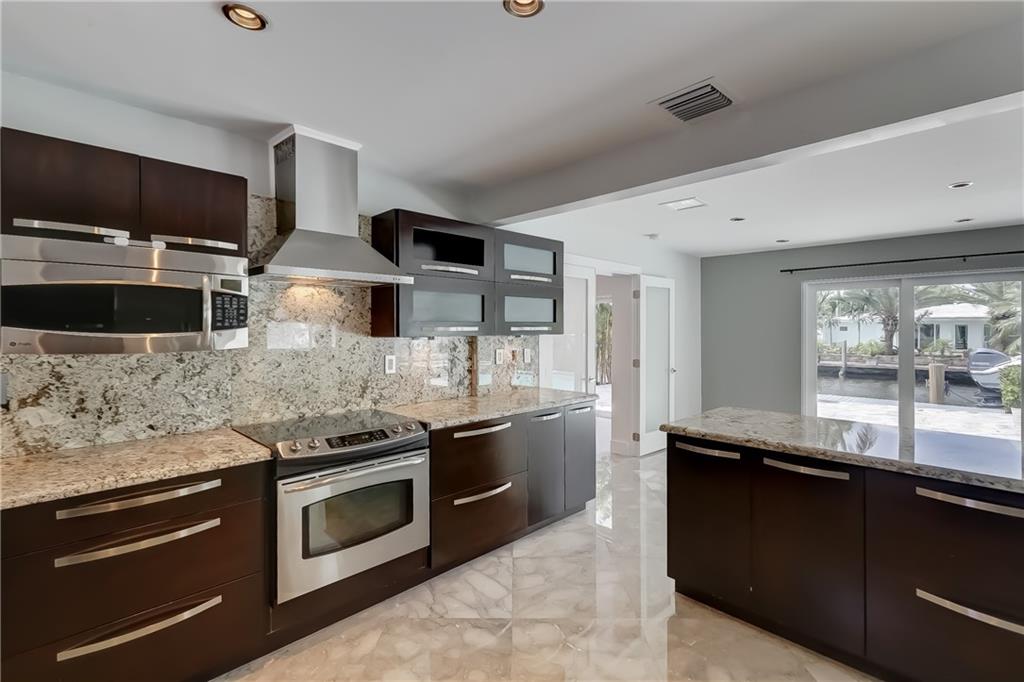 Located in sought after Citrus Isles this newly renovated home features 75' of deep waterfrontage and accessible dock with unrestricted ocean access. A 17K# remote controlled Neptune boat lift fitted w/ 30AMP power pedestal and fresh water washdown is ideal for cruising through the Venice of America. Surrounding yard features newly installed landscaping with decorative Mexican beach pebble and mature bonsai Bougainvillea. Saltwater gas heated pool with elevated spa featuring overflow waterfall. Marine grade, composite quartz and stainless steel covered outdoor kitchen. Open format all granite kitchen features a floating island, stainless steel appliances and oversized sink. Newly constructed master suite features double frosted glass French privacy entry doors, walk-in closet.