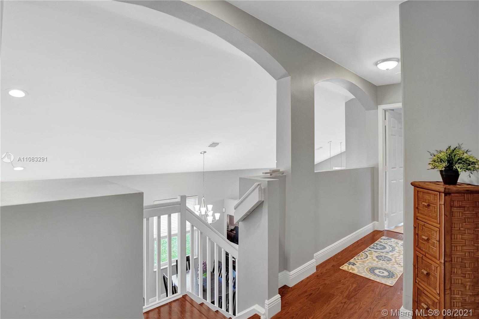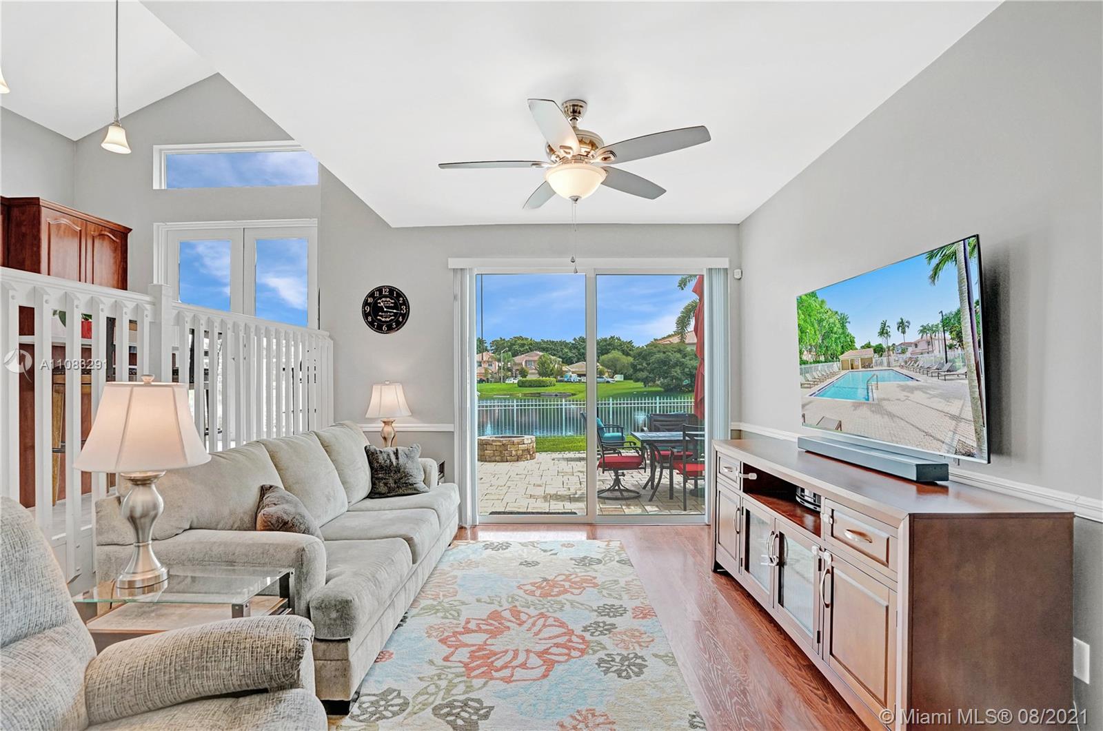 Enjoy outdoor living & beautiful water views - your own private oasis! This gorgeous, gated community home, features 4 bedrooms, 3 bathrooms, tile flooring throughout spacious living areas & high vaulted ceilings - perfectly light & bright! The generously sized kitchen showcases quartz countertops & stainless steel appliances. Full bedroom & full bath on first floor! Upstairs, enjoy amazing water views from the master bedroom & sitting room! Upgraded wood flooring throughout second floor. With an extended patio perfect for BBQ & a large oversized fenced yard with wide water views, this home is ready for entertaining! Impact windows for convenience. Excellent cul-de-sac location close to great schools, shopping, dining, parks & more!