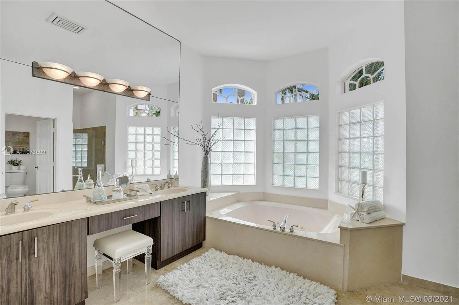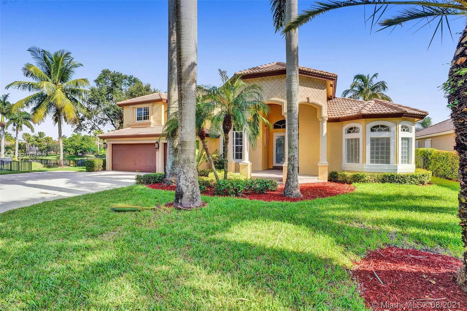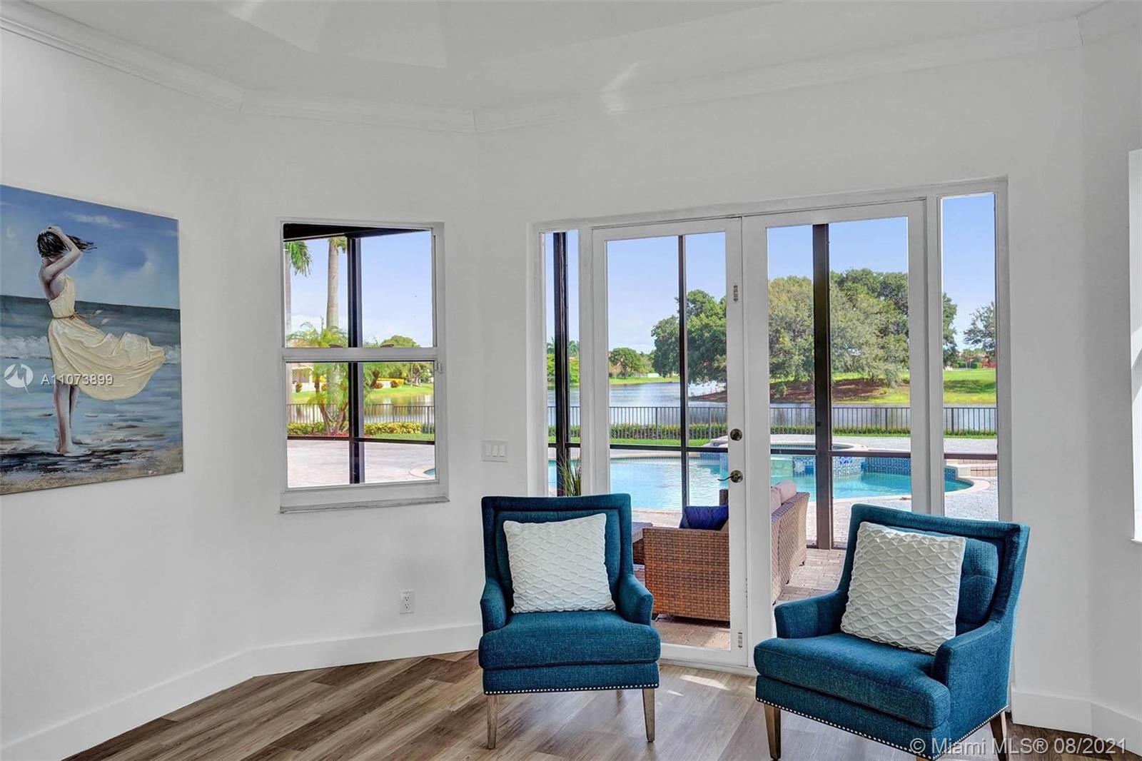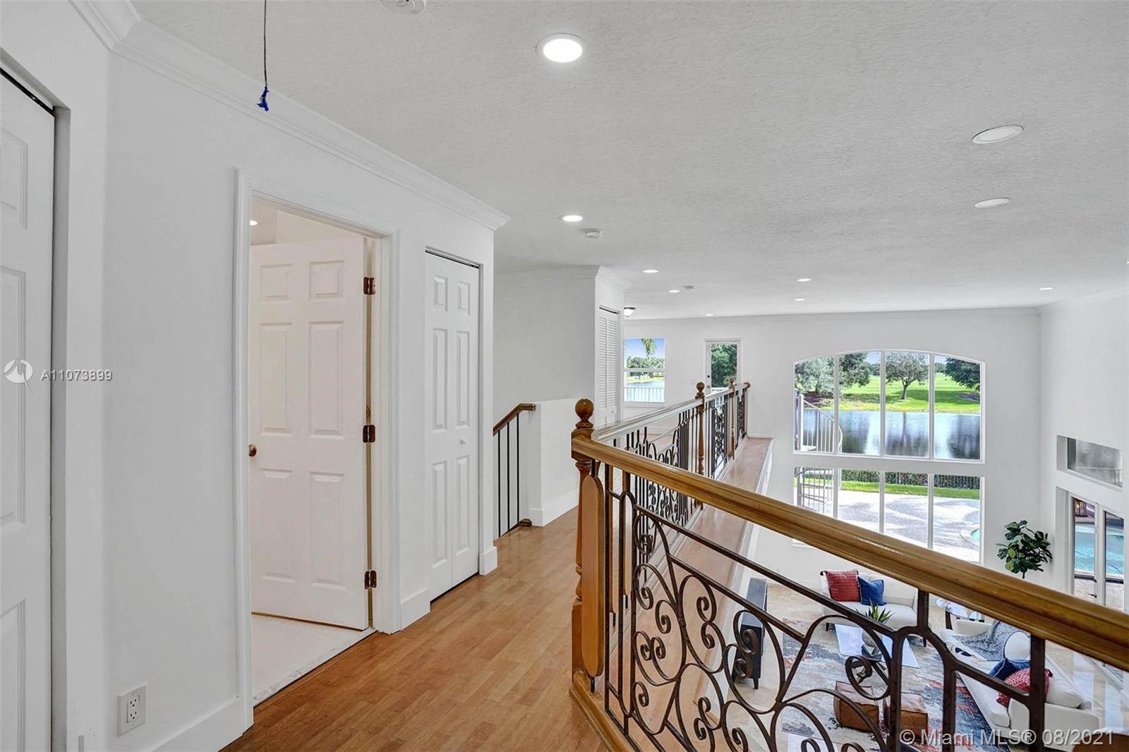 Talk about a VIEW. Incredible setback with oversized paver driveway located in Heron Bay at Long Cove. Privacy galore in this spacious 2 story home featuring travertine marble floors, volume ceiling, windows on water, and extensive crown molding. Brand New modern kitchen with stainless steel appliances and quartz countertops 2021. Owners suite first level with french doors to screened patio, pool, and fully fenced yard with view of golf and water. Newly renovated master bath. Secondary bedrooms 2nd level plus loft and balcony overlooking water and pool.
