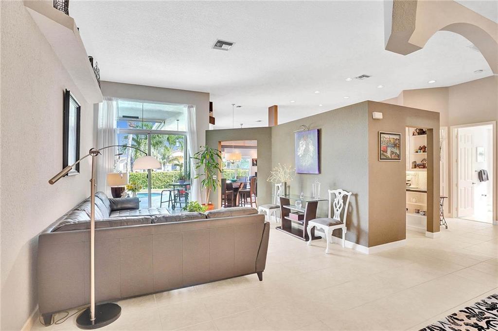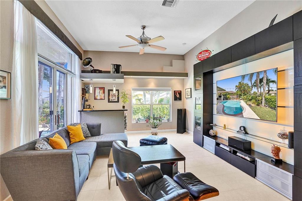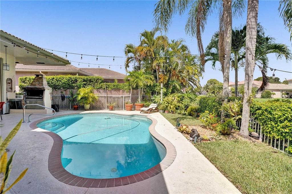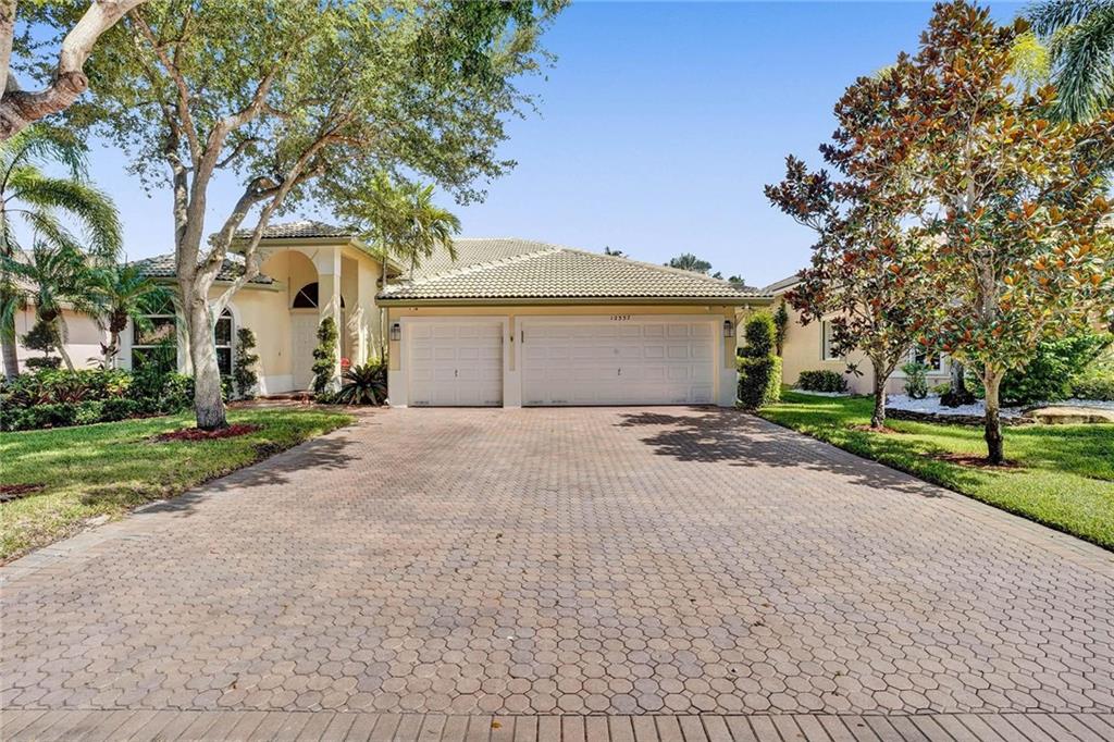 This Amazing home is ready for you, located in a desirable gated neighborhood, consist in a 5 bedroom, 3 bathrooms, 3 car garage, water view, with a beautiful Pool recently re-finish includes a salt chlorination system , this is the Corsica model, one story biggest house in Pelican Isle. Modern kitchen feature exquisite granite countertops, tile glass back splash, Stainless steel appliances and a wine cooler. The family room includes a built-in furniture with a 75 in. Sony TV, and a bar with a refrigerator. Furniture are negotiable. Both AC Units are 2017. This is a triple split bedrooms, 5 bedroom is being use as an office with no closet. Bathrooms 2 and 3 were remodeled. HOA takes care of your lawn, irrigation, and common areas.