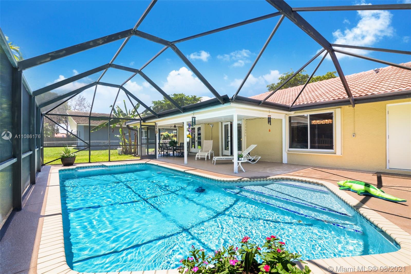 Beautifully maintained, professionally landscaped home, fenced in yard. Huge corner property, newer roof, resurfaced pool, two car garage with hurricane graded garage door. Accordion hurricane shutters, or impact glass on windows and doors. Family friendly, pet friendly community with excellent schools. This 3 bedroom/2 bath home features an extra large living room/great room perfect for large parties and holiday gatherings. Tile floors throughout living room, kitchen and dining room, new vinyl wood flooring in all bedrooms, stainless steel appliances in kitchen and laundry room. Close to shopping, movies, schools and the famous Sportsplex Drive where Olympian swimmers, ice skaters and professional hockey players train. Best of all, No HOA.
