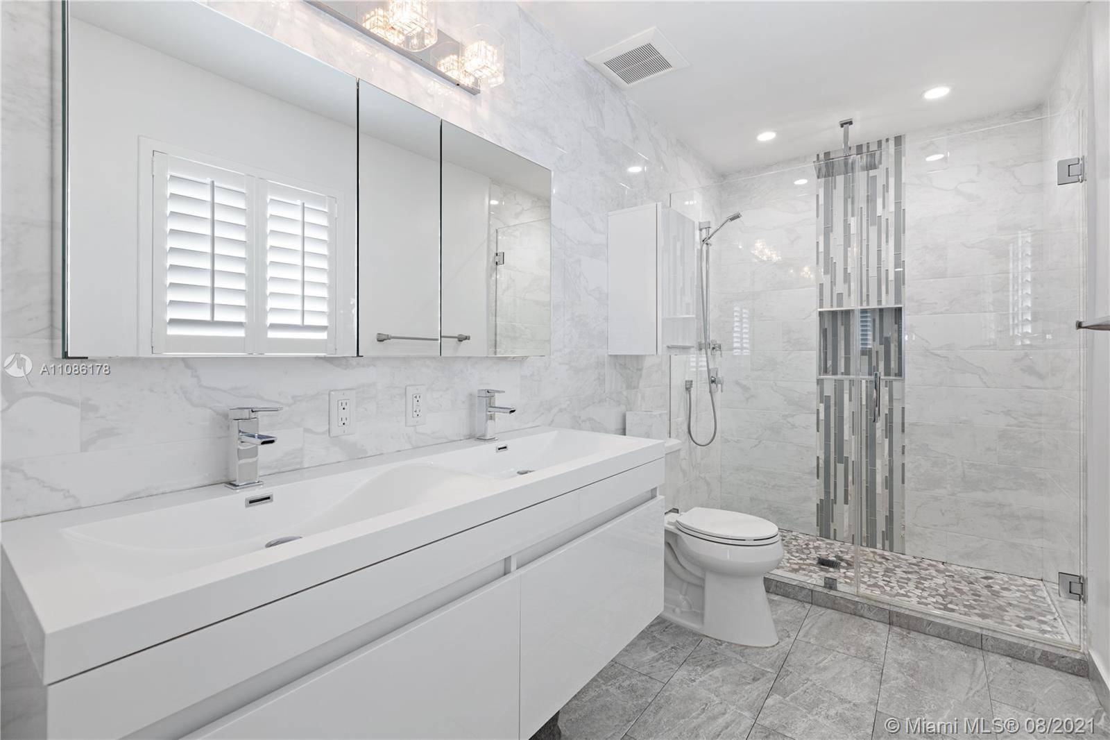 Live in the prestigious Hollywood Lakes neighborhood minutes from beach & downtown. Fully updated, turnkey home was renovated by current owners in 2017. Oversized porcelain tiles throughout, the home features an ideal open concept, spacious eat-in kitchen w/ new appliances & cabinetry, light & bright large living areas & oversized bedrooms. The fully permitted renovation spared NO expense. All NEW drywall, ductwork, Carrier AC unit, Nest thermostat, electrical panel & service, built-out custom closets, plumbing, oversized impact glass windows & doors, window treatments, Rheem natural gas tankless water heater, LG dishwasher, oven, natural gas cooktop stove, washer & natural gas dryer, Rainbird irrigation system, landscaping, tongue & groove front porch, back patio, + more! Room for a pool!