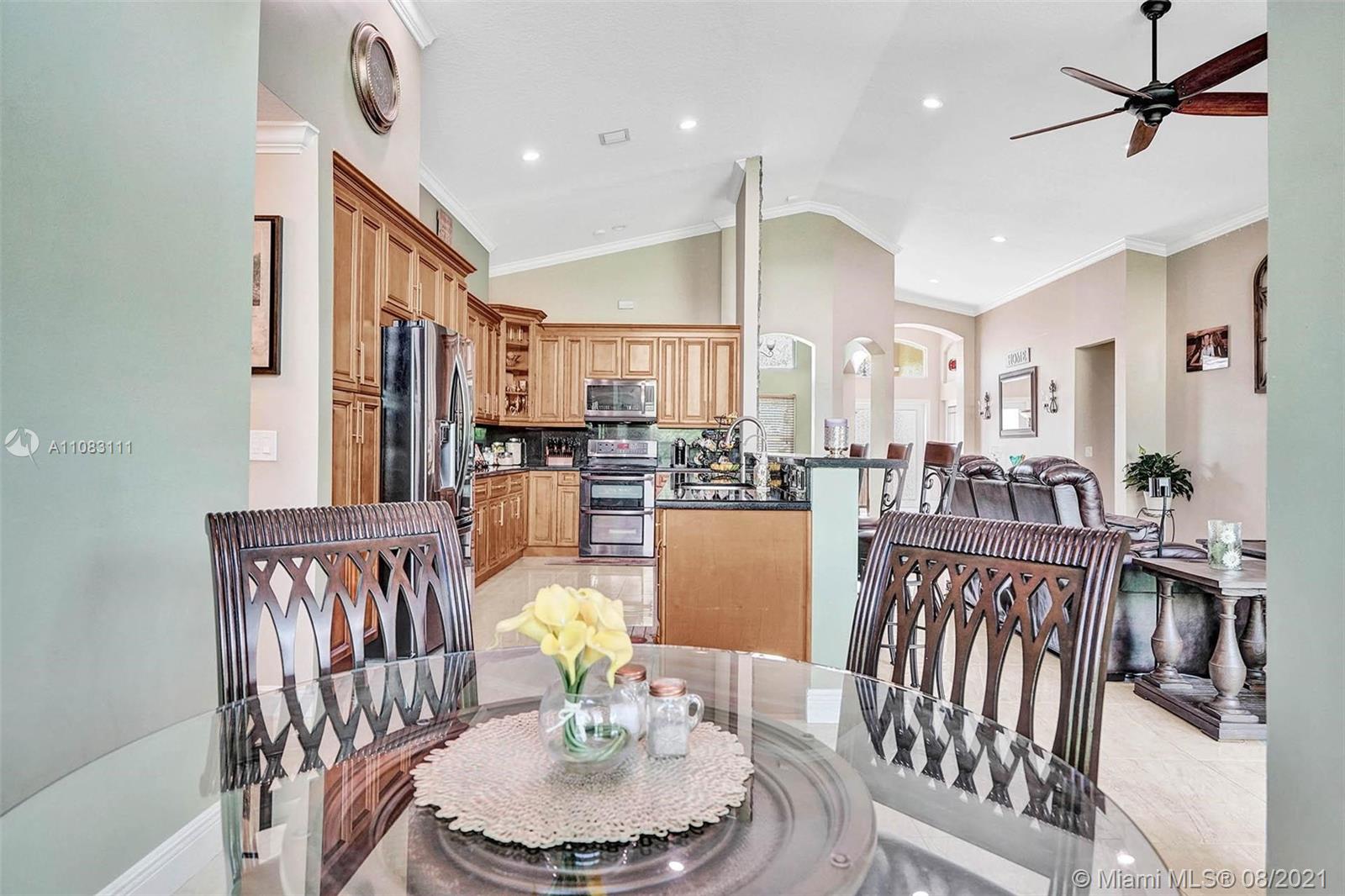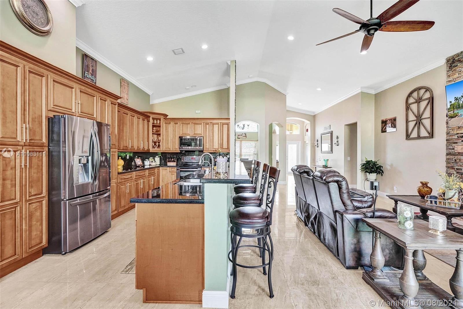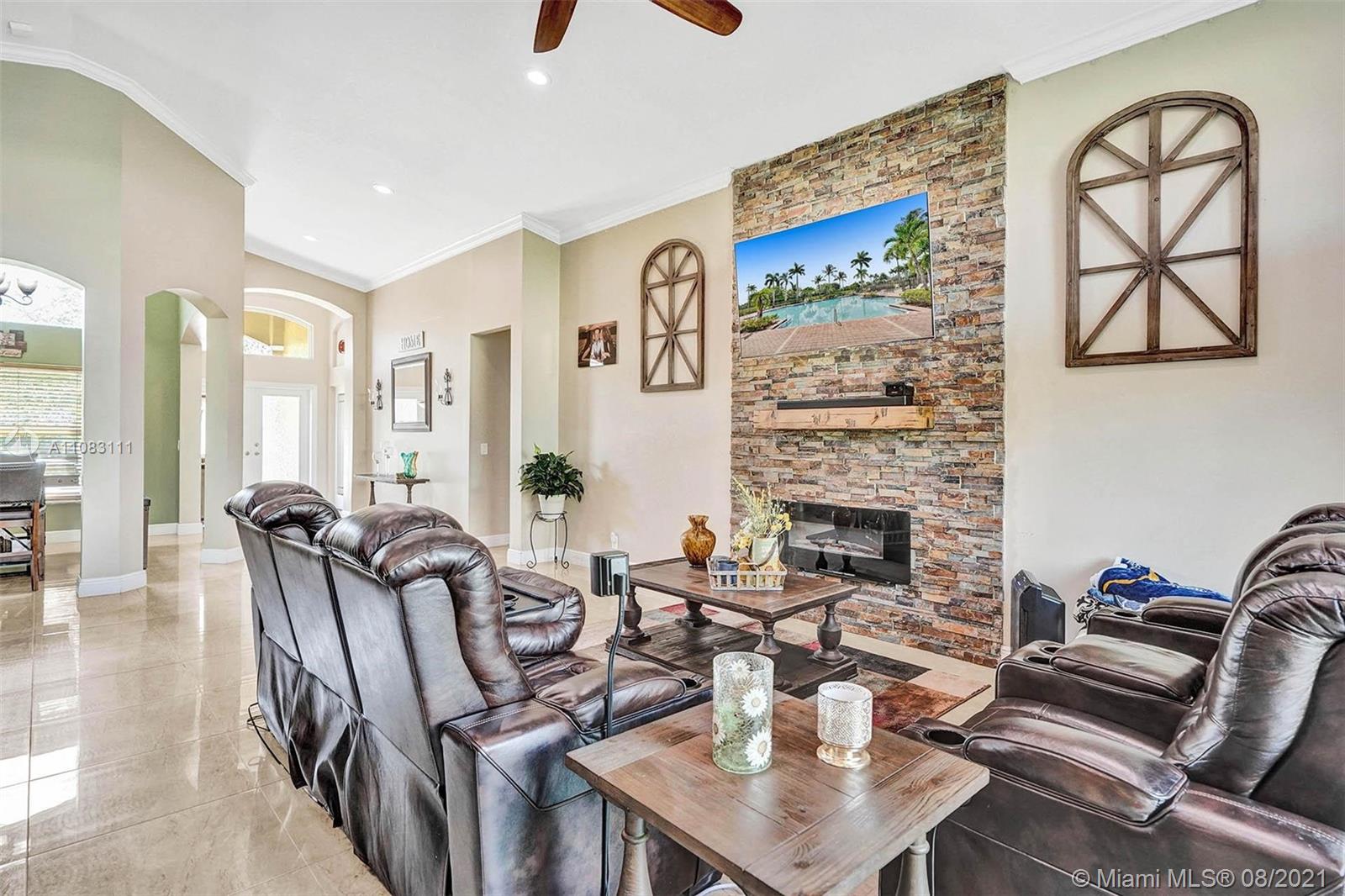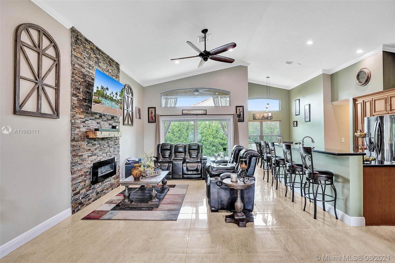 A house designed with pure joy and entertainment in mind! Rarely available in the prestigious west Pembroke Pines community of Encantada. Split floor plan with an open concept featuring 4 bedrooms, 3 baths, and a large den. COMPLETELY REMODELED interior with an endless list of upgrades such as Impact windows, new Trane A/C installed in 2019, new LG appliances (warranty until 2023), built-in wine cooler, functional fireplace, Rainsoft water purification system, Nest Thermostat, Lutron App controlled lighting, and much more (too much too list). The exterior features an incredible Paradise Grill Tiki Bar, travertine flooring, and lush landscaping providing privacy. Community clubhouse features a pool, gym, kid play area, sand volleyball, basketball court, tennis court, and more.