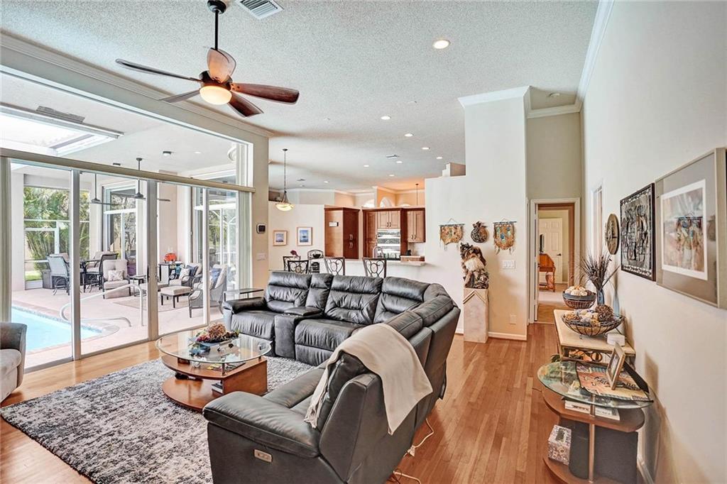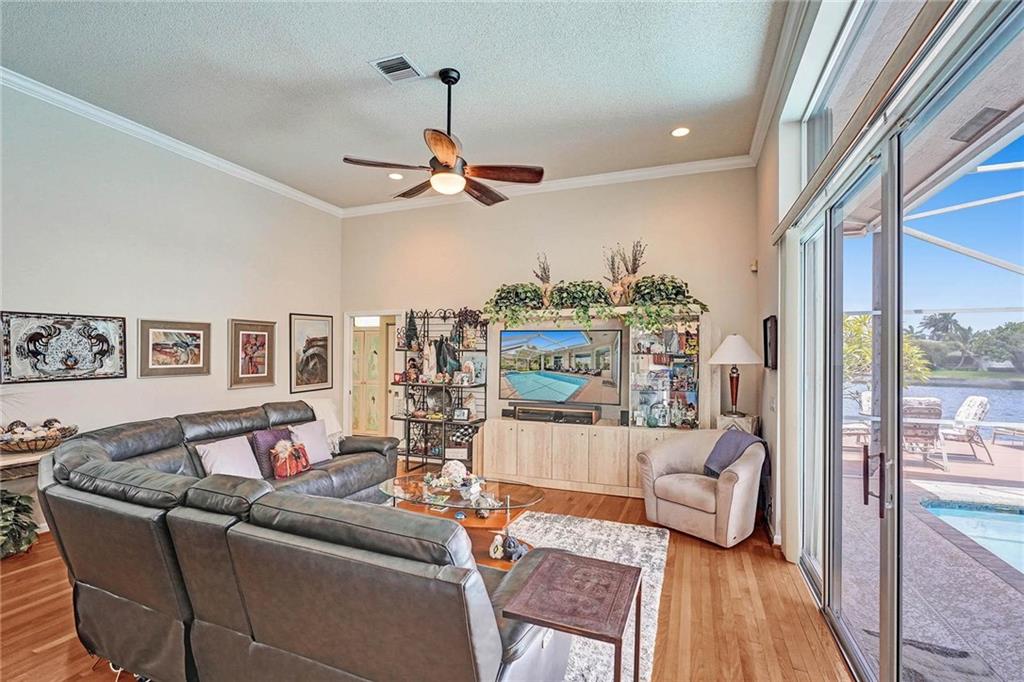 Welcome To Your Dream Home! This Pristine Estate Boasts Picturesque Water Views From The Moment You Step Inside The Double Front Doors. Volume Ceilings W/ Crown Molding & High Hats Throughout Show The Meticulous Detail Of Owner's Pride. Stunning Kitchen Remodel Includes Soft-Close Cabinets, Cooktop, Wall Oven & Convection/Microwave. Triple Split Floorplan. The Master Wing Complete With Separate A/C, Two Walk-In Closets & A Spectacular Spa-Inspired En-Suite W/ Dbl Vanities, Jacuzzi Jetted Tub & Spacious Pass-Through Shower. One Of The Large Bedrooms Comes With A Sizeable Den Perfect For An Office Or Mother-In-Law Area w/ En-Suite Leading Out To The Tranquil Waterfall Featured Salt-Chlorinated/ Heated Pool. Custom Trex Deck. Roof, Diamond Brite, Exterior Paint ALL Done in 2019!