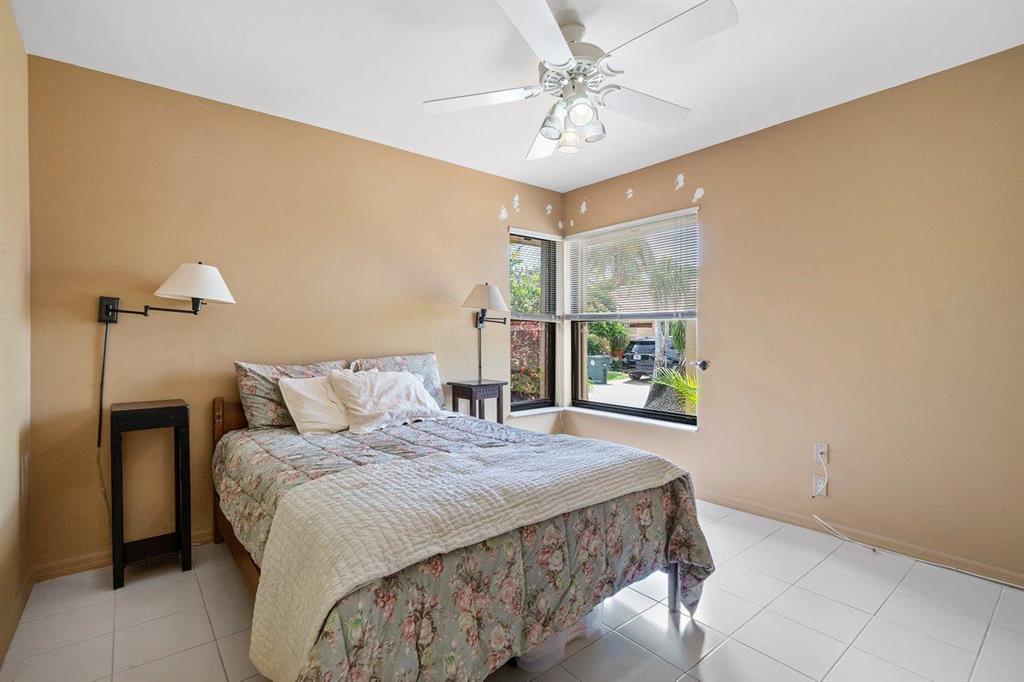 Don't miss out on this beautiful three bedroom home in Pradera. Centrally located within close proximity to amazing schools and all things Boca Raton. The family room is light and bright with vaulted ceilings and beautiful French doors. Split floor plan with a large master suite. Newer laminate floors in the master. The kitchen has granite countertops and matching appliances. The large patio is private and screened in for your comfort. Accordions shutters installed in 2021. Air conditioner 2021. Roof replaced in 2014. Two Car Garage.
