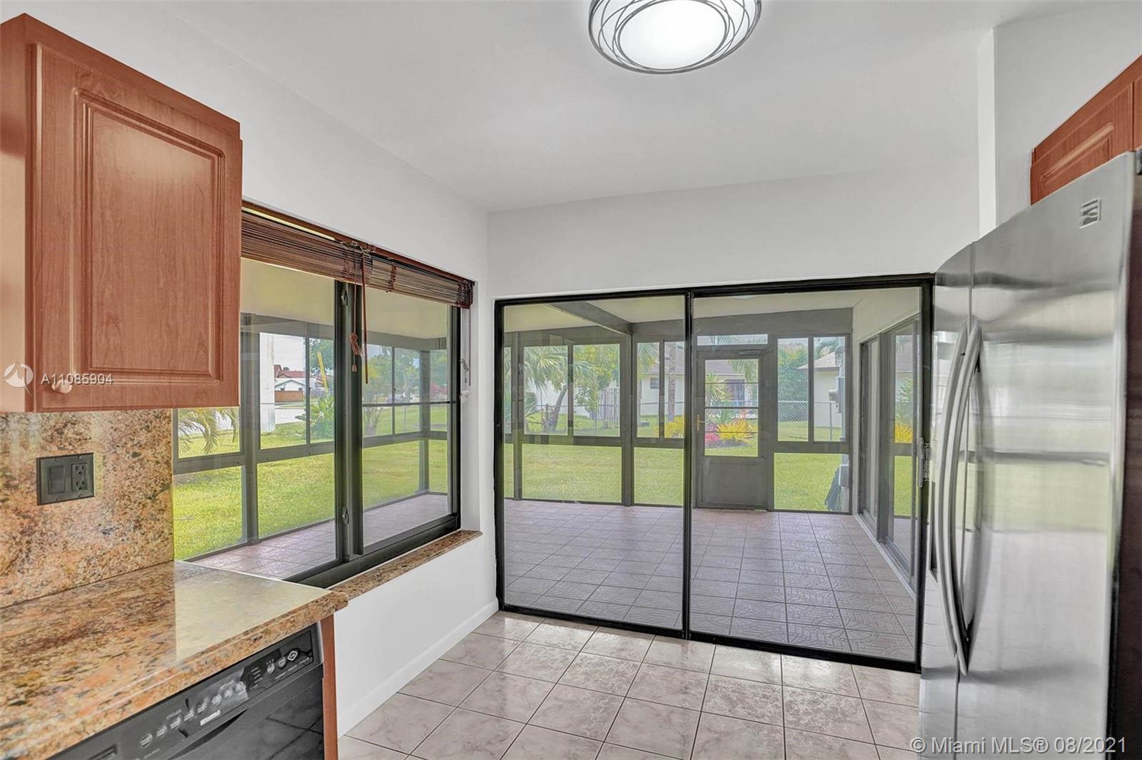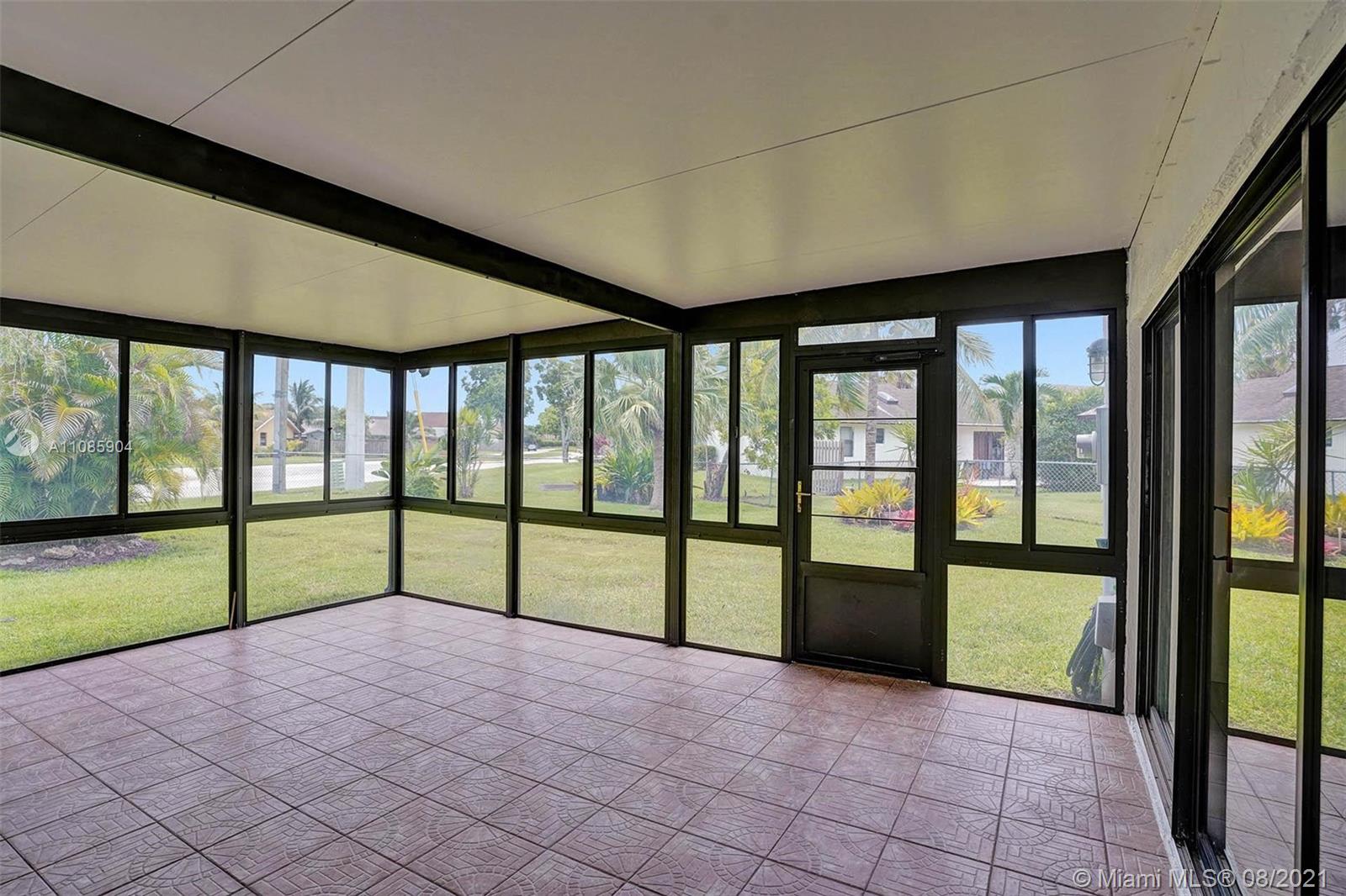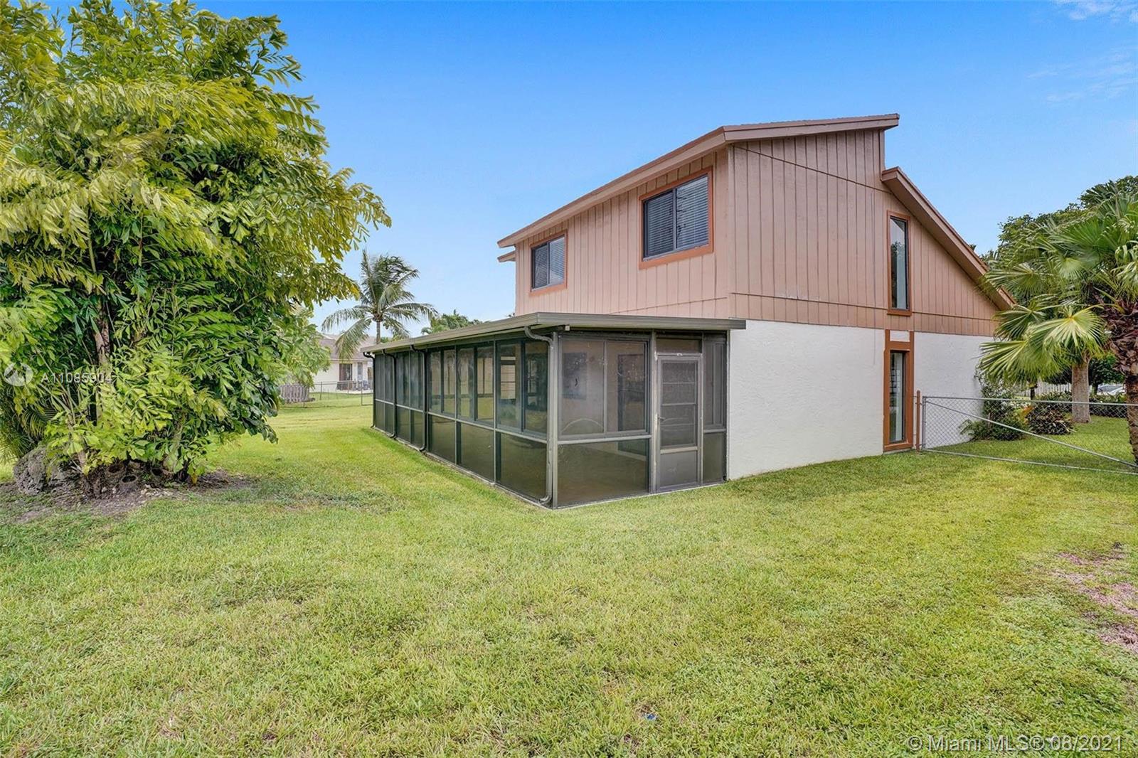 Rare to market, charming, 3 bedroom 2.5 bath home. One of the largest lots in the neighborhood! This fenced-in, pie-shaped lot is ideal for pets and for family get-togethers with room for a pool! The home boasts a lovely floor plan, 2 car garage and spacious bedrooms. From the front door, you will appreciate a formal family room and dining area. The living room is sizable and looks to the well-equipped kitchen with granite countertops. Together, the living room, kitchen and dining area connect to an expansive Florida room, or 4-season room. Master bedroom is large and bright, has convenient balcony overlooking the yard, walk-in closet and en-suite bath. All bathrooms updated with marble and glass. **8/24/2021 Please view Broker Remarks