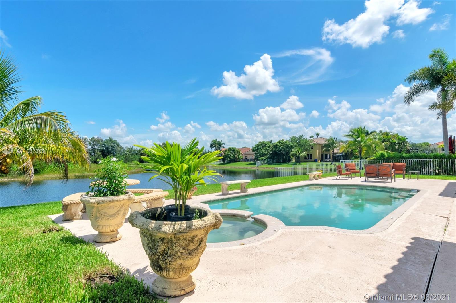 Location, location, location. Beautiful waterfront pool home in the sought after gated community of Encantada - perfect with 6 bedrooms, 4.5 baths and a 3-car garage. Walking through the front door, you see a breathtaking view of the water and a natural preserve. The dining room and living room combination makes for a wonderful social area while you enjoy soaring high ceilings open to the second floor. As you walk into the family room and kitchen area, you won’t be able to take your eyes off the beautiful kitchen renovation. This dream kitchen includes solid wood cabinets, granite countertops, newer appliances and an amazing stone feature wall and backsplash. There’s even room for a kitchen dining set.