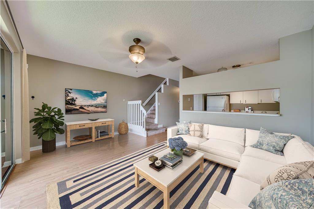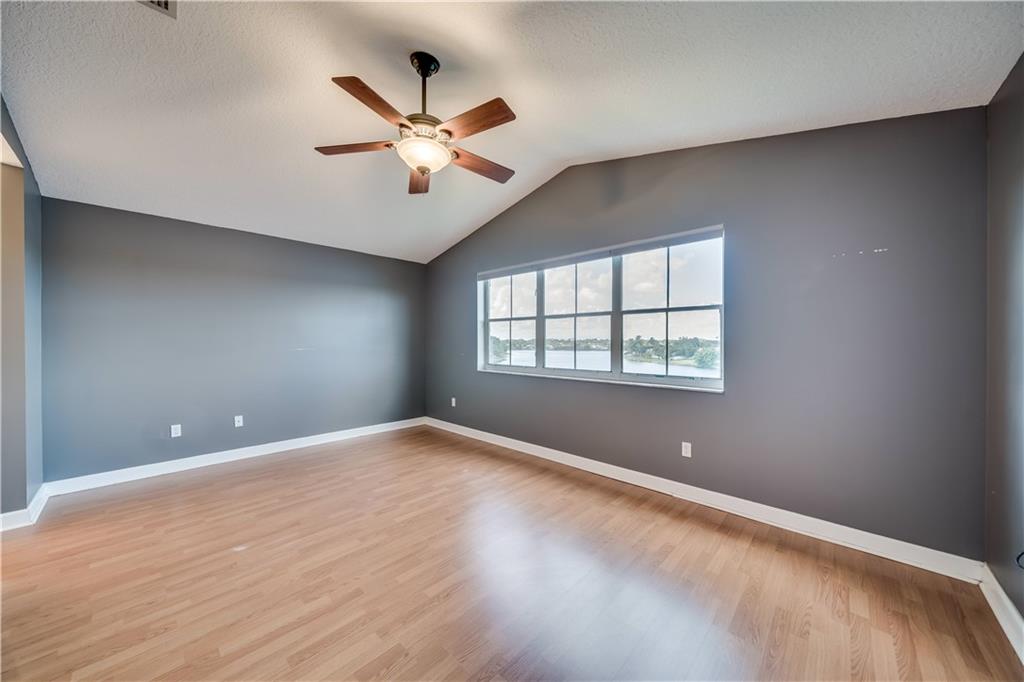 Back on Market. Handyman Special!. TROPICAL PARADISE awaits. LOCATION, LOCATION! WIDE LAKE VIEWS from all 3 stories. Spacious living areas will delight the family. Neutral laminate throughout. Entertaining is a breeze in your kitchen with newer S/S range. Large pantry. Convenient pass-thru to big family room with balcony overlooking WIDE LAKE. HUGE media room on ground level is 17 x 13 with room for guests to sprawl out. Enjoy the open patio that captures the cool lake breezes & sunsets. Relax in your oversized owner's suite with soaring, knock down finished ceilings. Owner's bath features double vanity, stall shower and soaking tub to wash away your stress. BIG walk-in closet. Generous guest rooms have bright eastern exposure. 1 CG, + W/D. Update to your liking. Low HOA.