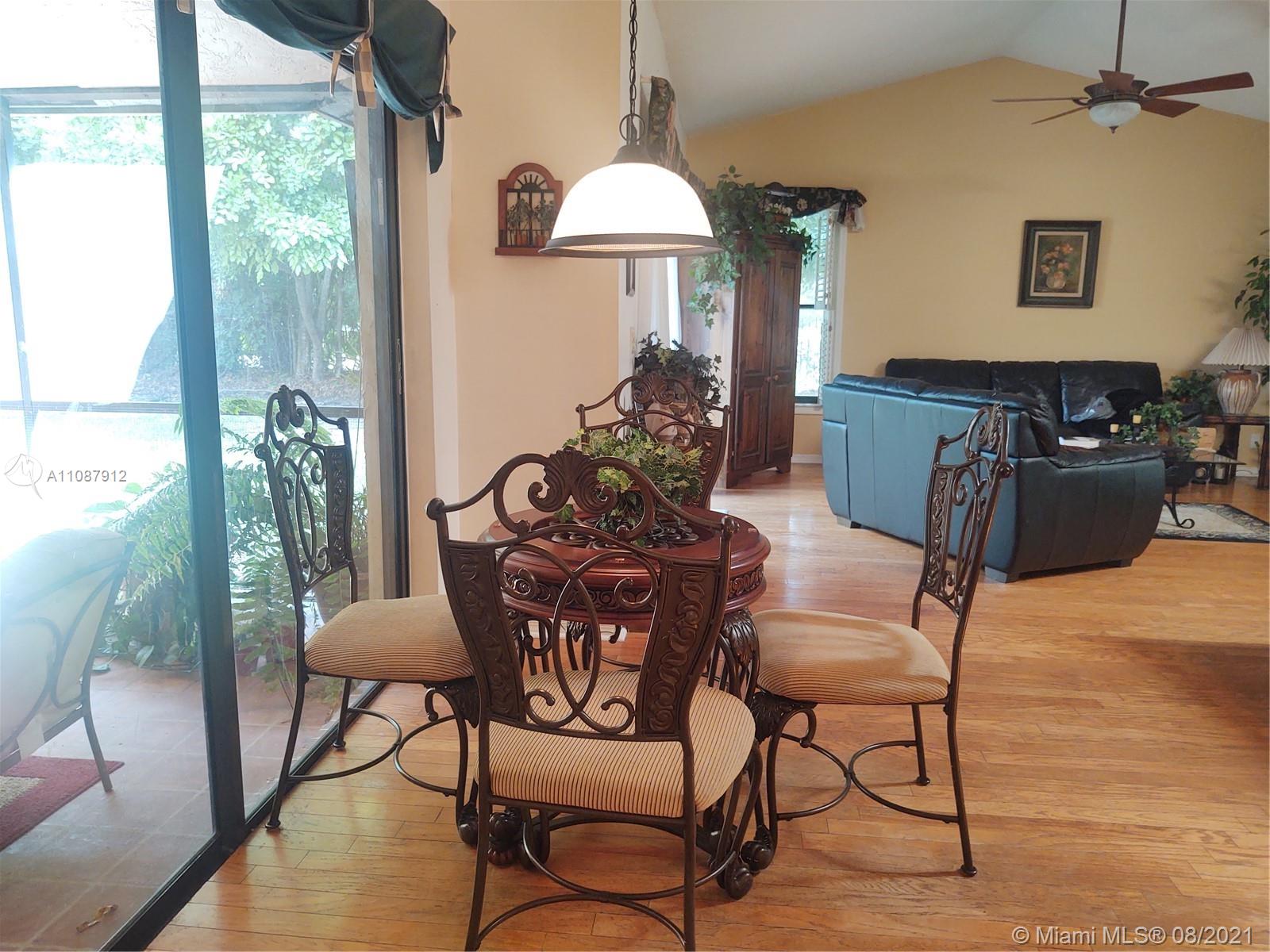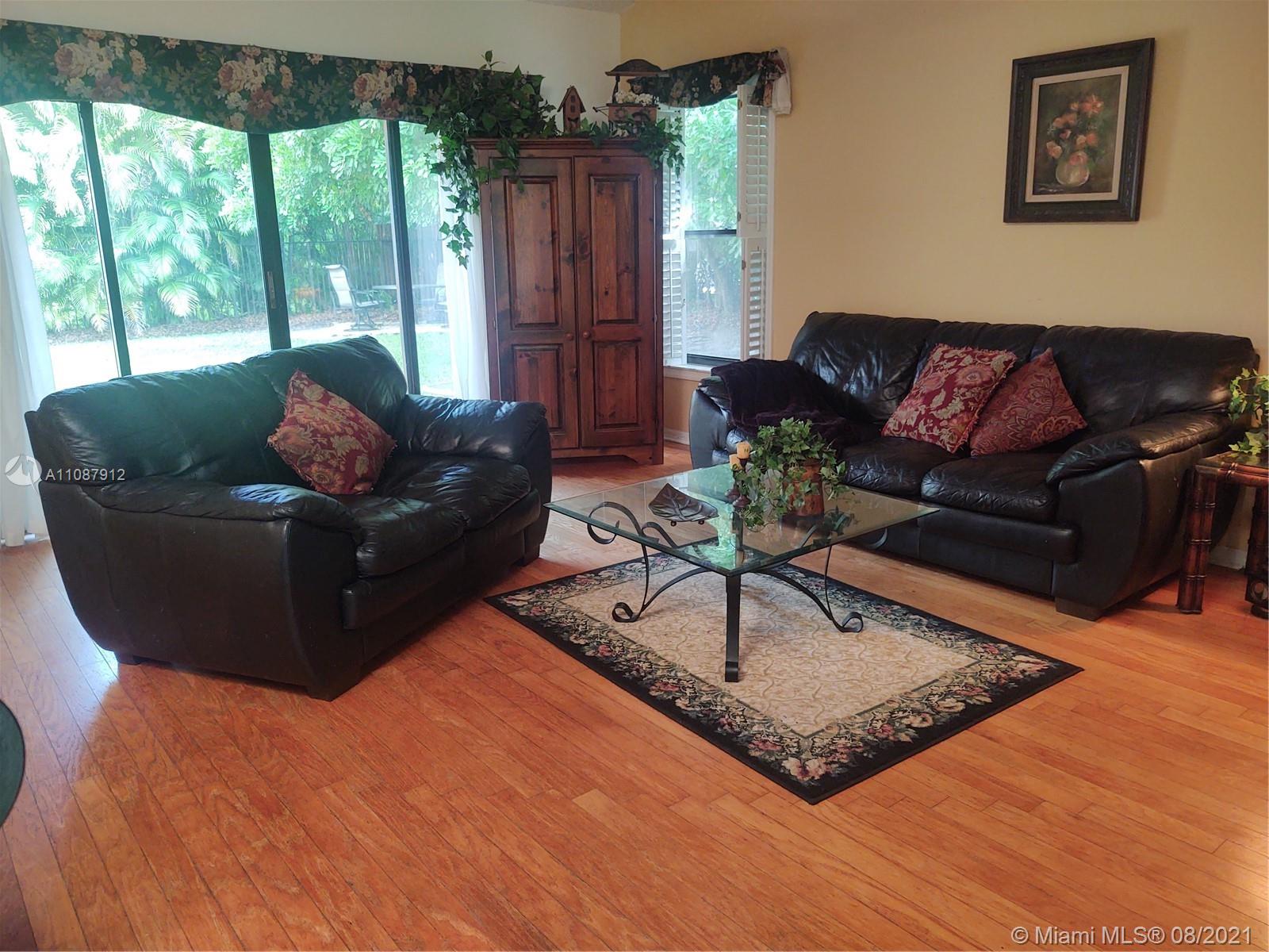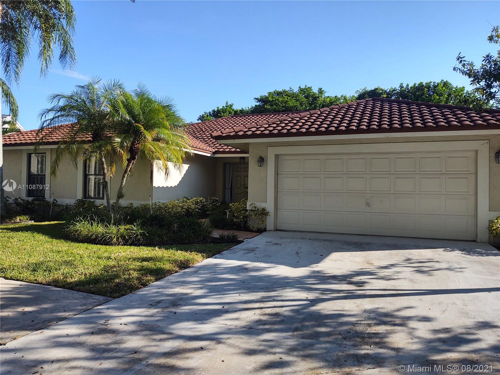 Perfectly placed just in the heart of Weston! 4 Bedrooms 2.5 Baths with the garage converted into an office/5th bedroom, ideal for working from home. A convenient one story home with a practical floor plan/layout that features a formal living and dining room, breakfast area, spacious family, master bedroom and bedrooms. All living areas and master bedroom have sliding doors that lead to a covered patio and backyard that has plenty of room for a pool. Carpeted flooring in the bedrooms and wood throughout the living areas. The garage has room for storage with a work bench that offers plenty of drawers. Laundry/utility room has a tub. Low HOA fees. A++ schools, the elementary school is within walking distance. Close to highways, beaches, restaurants and shopping, Make an appointment today!