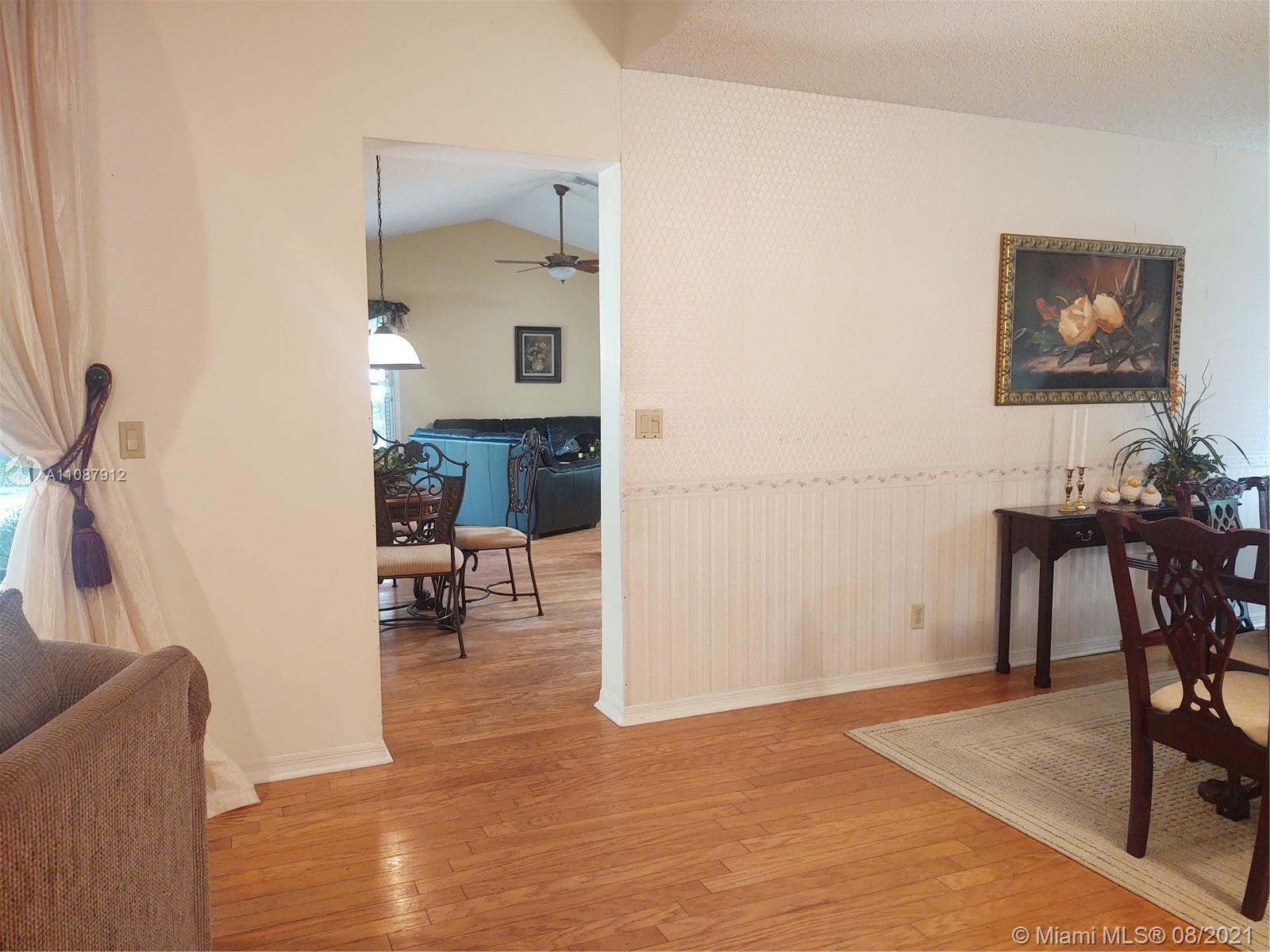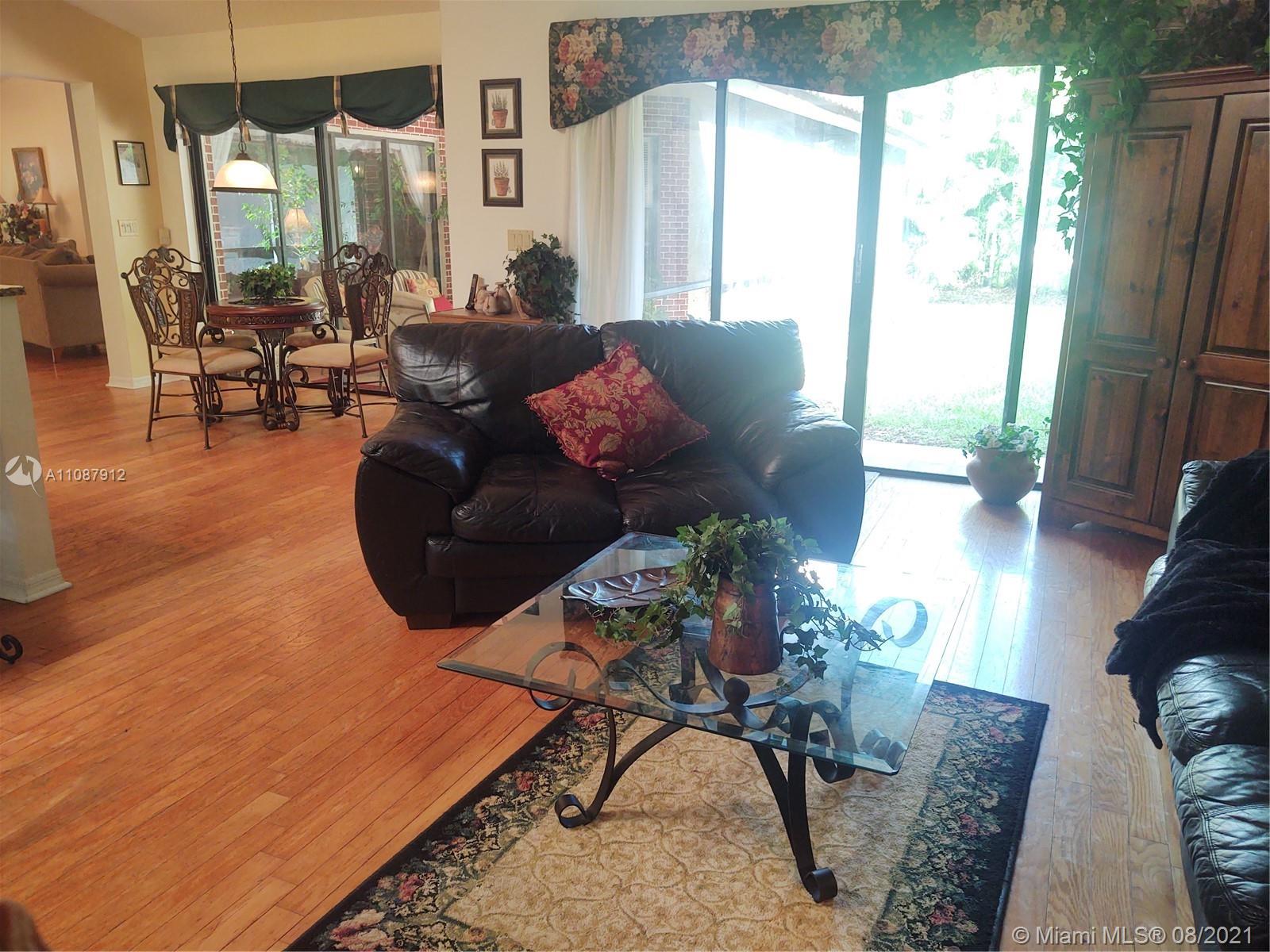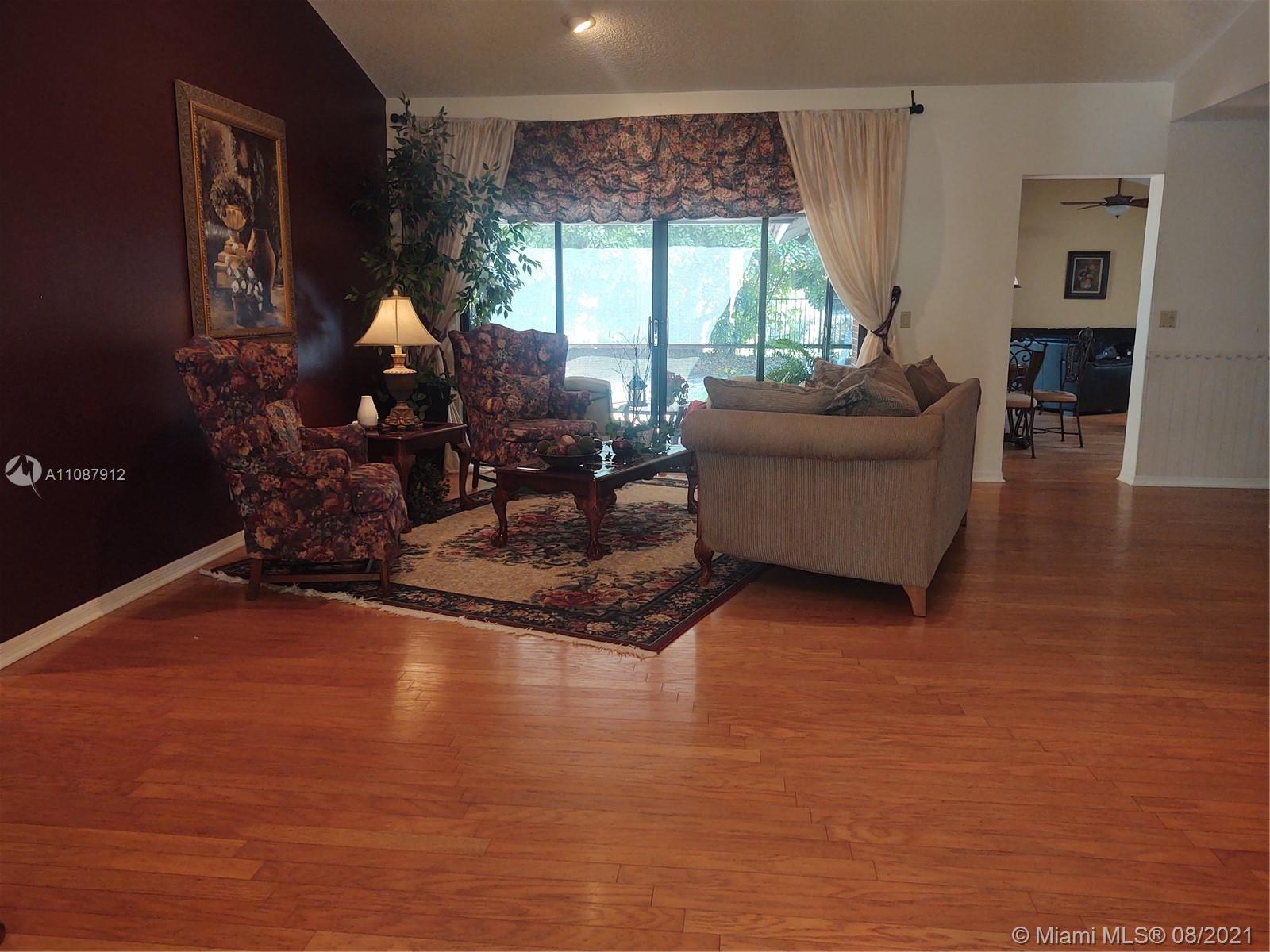 Perfectly placed just in the heart of Weston! 4 Bedrooms 2.5 Baths with the garage converted into an office/5th bedroom, ideal for working from home. A convenient one story home with a practical floor plan/layout that features a formal living and dining room, breakfast area, spacious family, master bedroom and bedrooms. All living areas and master bedroom have sliding doors that lead to a covered patio and backyard that has plenty of room for a pool. Carpeted flooring in the bedrooms and wood throughout the living areas. The garage has room for storage with a work bench that offers plenty of drawers. Laundry/utility room has a tub. Low HOA fees. A++ schools, the elementary school is within walking distance. Close to highways, beaches, restaurants and shopping, Make an appointment today!