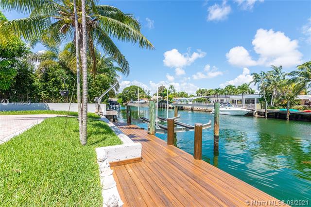 Beautiful updated modern waterfront pool home in a terrific location. This Property is located only 9 houses away from the bay. 75ft on the water with boat dock, boat elevator lift with 4 pilings, travertine marble floors thru-out. Lovely kitchen with granite counter tops- counter island, custom wood cabinets, gas range. Impact windows and doors thru-out and 3 beautiful bathrooms. Enjoy Life in your spacious backyard and pool while watching the parade of boats, jet ski’s, paddle boarders, kayaks, manatees, fish, dolphins and more going up and down the waterway. Only 30 seconds to the Intracoastal and 8 minutes to Haulover inlet. (Garage or storage room for your toys). So much more to see in this lovely one story home.