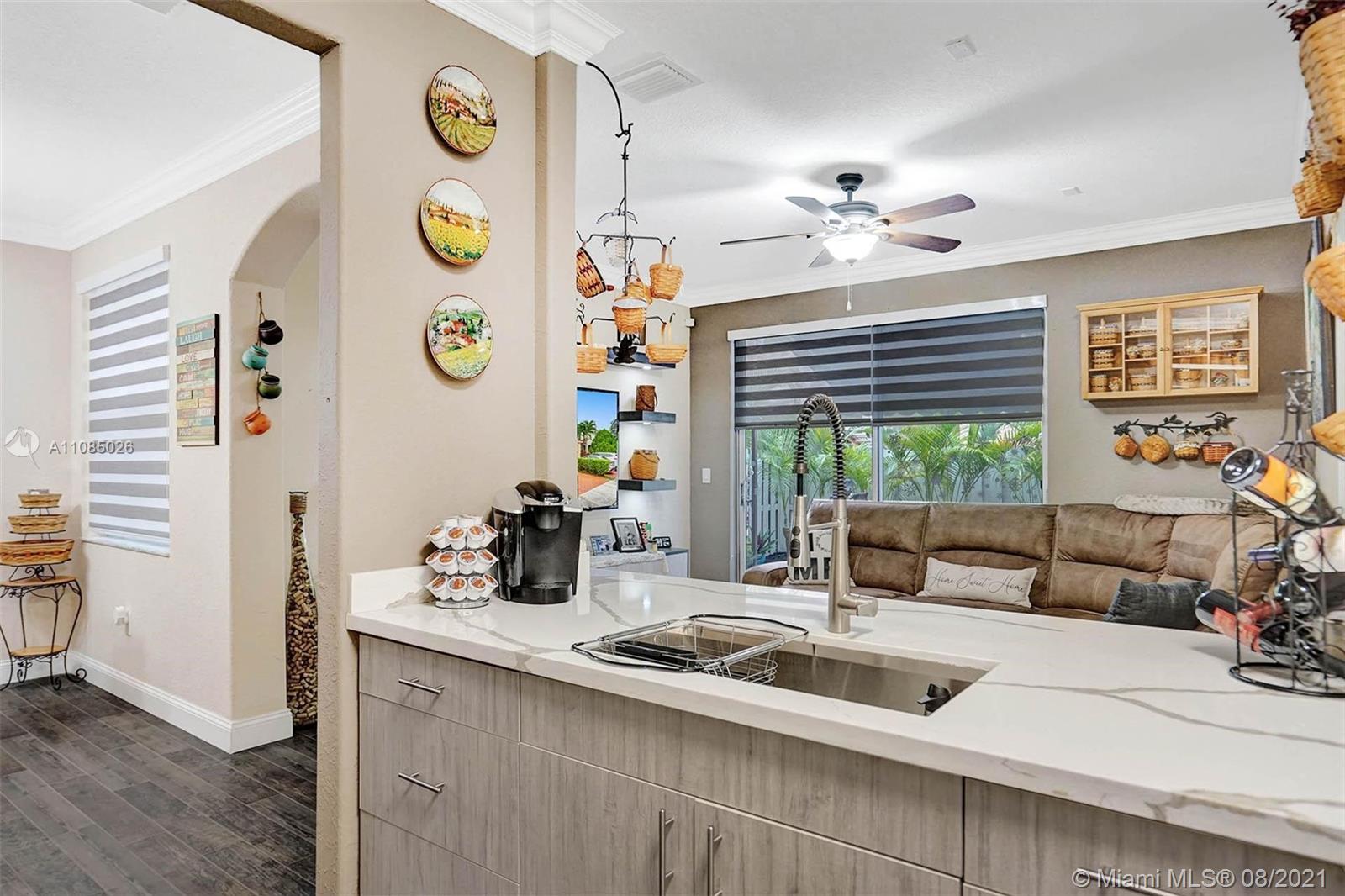Gorgeous townhouse, move in ready in desirable community of Nautica, Miramar with fenced yard and 24 hour security gate. The entry level leads you to a spacious living area with a half bathroom downstairs. The kitchen was just upgraded with neutral quartz countertops and backsplash, modern two-toned cabinets, stainless steel appliances. Downstairs the floor was just replaced with ceramic wood-like tiles and upstairs has laminate flooring. As you enter the master bedroom through the double doors you will find an spacious, neutral master bathroom. It has his and her closets and private bathroom. The two other bedrooms are across from the master. Resort-style amenities include pool, gym, tennis and basketball courts. Located is located near I-75, close to shops and restaurants.