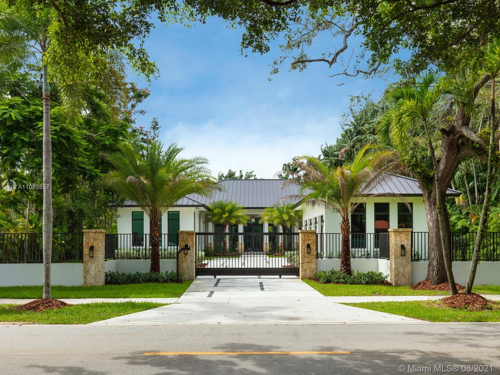 Stunning Brand-New Modern Estate in Pinecrest situated on a 28,656-sf lot. This gorgeous one-story home welcomes you with enormous impact windows and doors offering an abundance of natural light radiating through every room. Discover a large open family room featuring dining room, chef’s kitchen with quartz counters, Viking Appliances, walk-in glass wine cellar and built-in bar. The master suite offers his and hers walk-in closets, spa like bath with double vanities floating tub, and shower. Enjoy flow through yard views of the resort style pool and spa with covered terraces, built in summer kitchen and expansive green grounds. Other features: high ceilings, cabana bath, full house generator, gated and 4 car garage with space for lifts. Elite Schools nearby.