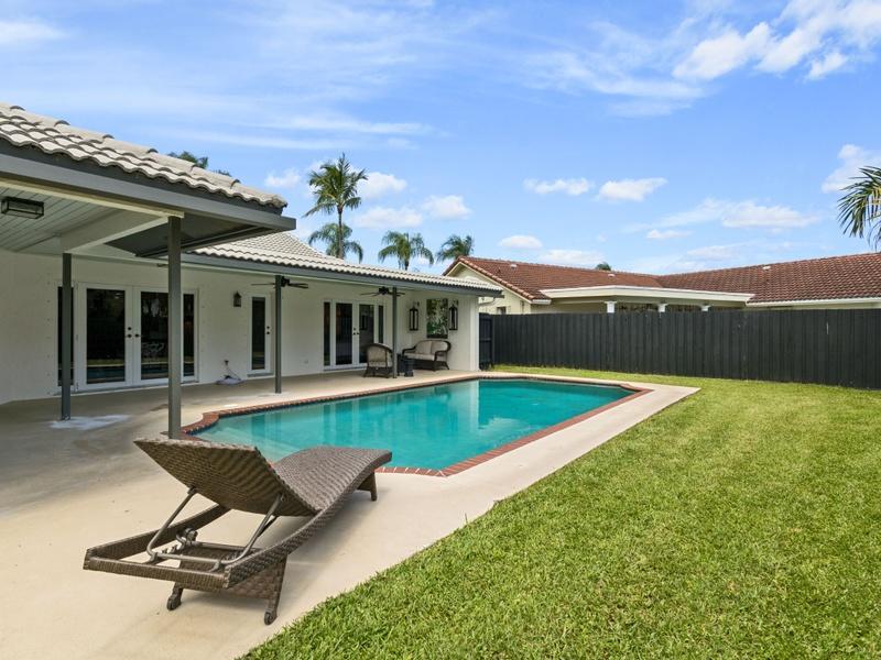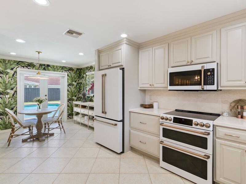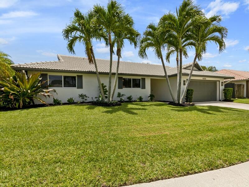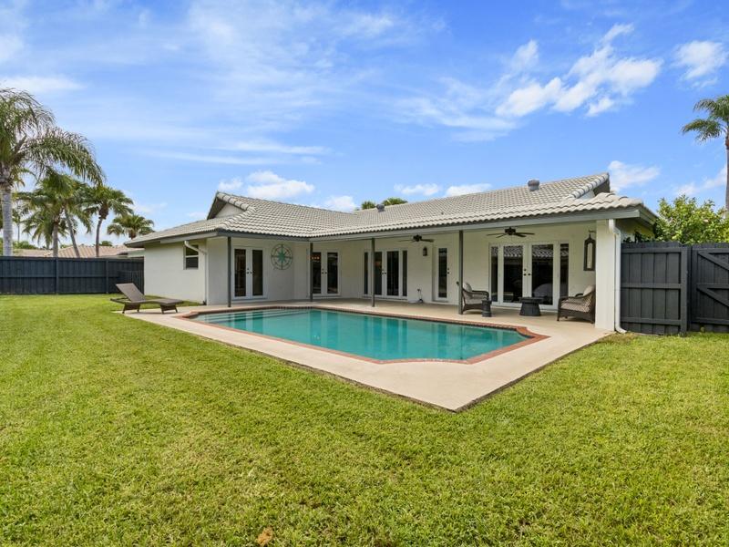 CBS single level pool home with super low HOA. A-rated Boca schools & centrally located in Boca Del Mar. This home has two spacious living areas-can accommodate a variety of needs. Private fenced back yard, salt pool, large covered patio. New Trane HVAC 2020, hot water heater 2019, roof 2005, exterior paint & lighting 2019, washer & dryer 2019. Kitchen makeover 2019 including new natural marble counters & backsplash with waterfall, professionally refinished cabinets, GE Cafe Matte White appliance suite including slide-in induction double oven range, French door refrig, DW & micro. LED high hats & dimmers throughout. No carpet- uniform cream diagonal tile throughout & European oak hardwoods in master & 2nd bdrm. All bedrooms have custom walk-in closets.