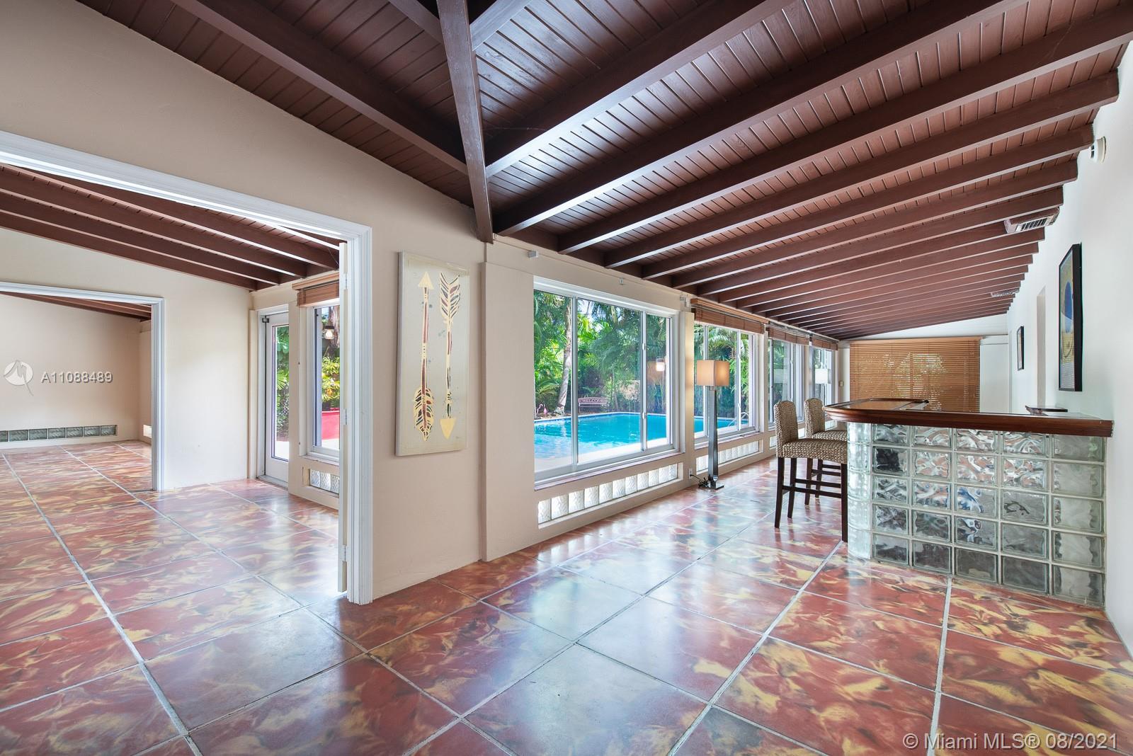 Beautiful, tropical pool home in the heart of Miami Shores. Built in 1946 for the community developer, this 3 bedroom, 3 bathroom, 1 car garage home features a fully renovated kitchen, and all the charm you'd expect from a cottage home. Covered porch, fireplace, built-ins, granite counters, ss appliances, finished garage (an easy conversion to a 4th bedroom), enclosed recreation room with bar and wood ceiling overlooking the pool area, large bedrooms with cedar closets, and 2 vintage bathrooms, tons of natural light, and tile flooring throughout are just some of the features that make this home unique. Amazing location east of US1, tropical mature landscaping in front and back, and large pool make this an entertainer's dream. Close to shopping, restaurants, and world class beaches!