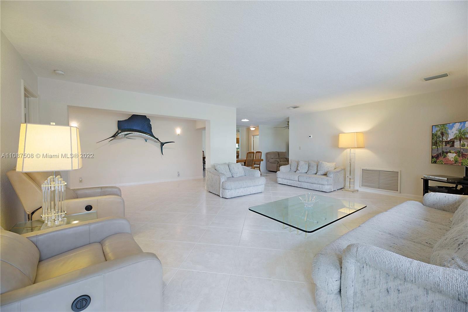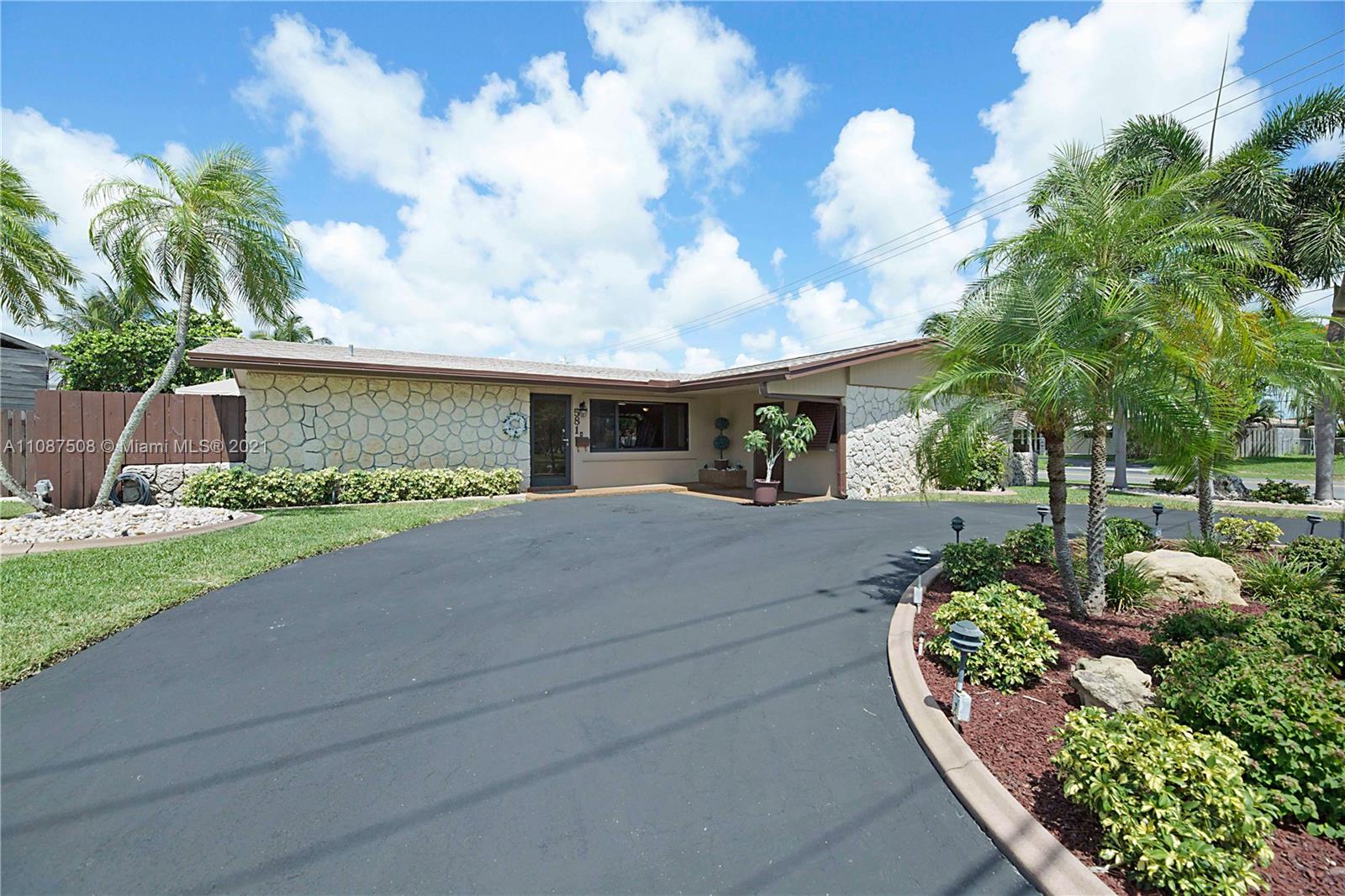 If you have been looking for a waterfront paradise w/ ocean access this may be the perfect home for you! Situated on a large 9,171 sqft lot w/ large circular driveway & room to park 6+ cars! Once you enter through the front door your greeted by the natural light & spacious flowing floor plan. Extremely large living room is open to the dining room & family room overlooking the spacious kitchen w/ peninsula. Triple spilt floor plan 4 Bedrooms & 4 full bathrooms (2 master bedrooms w/ walk-in closets) Impact windows & doors, brand new roof, freshly painted outside, 30ft dock on canal w/ ocean access, heated pool w/ covered patio, perfect location 1 mile from beach, close to Pompano Pier & restaurants. Entire home generator. Storage room. Interior laundry room & oversized pantry & much more!