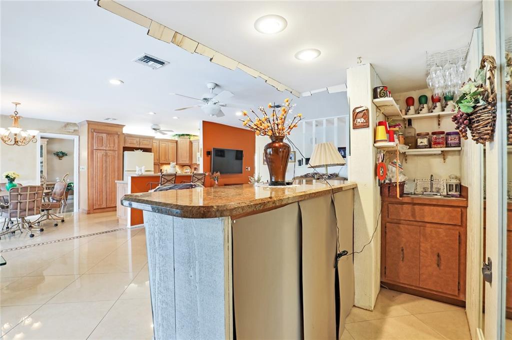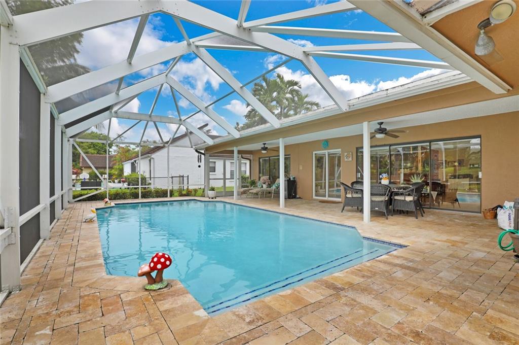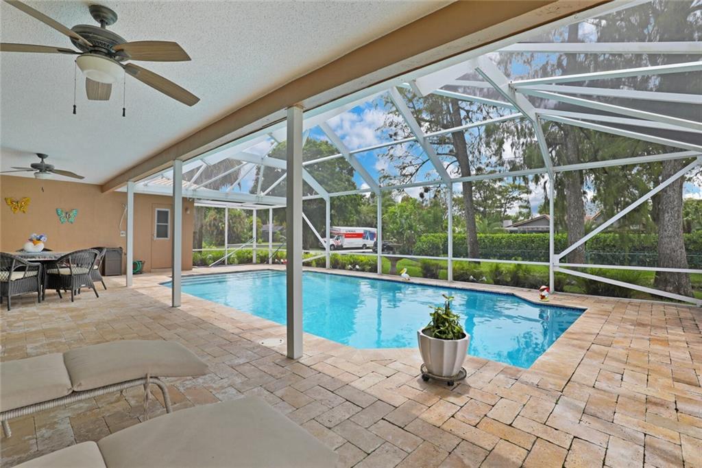 Waterfront corner lot home on over 1/4 acre in RED HOT Ramblewood. Walking distance from Countrywood Park! Large paver brick circular driveway & extra side driveway for TONS OF PARKING! Featuring an updated kitchen with granite counters and breakfast area, and an open floor plan w/ built-in bar - great for entertaining! Split bedroom plan. Oversized master bedroom features XL walk-in closet. Updated master bathroom features dual sinks w/ built-in storage, beautifully updated shower w/ frameless shower door, and private commode leading out to the pool. Guest bedrooms are all generously sized w/ full closets & laminate wood floors - NO CARPET! Backyard and screened-in pool has been beautifully redone with new travertine pavers overlooking the canal view. Don't miss this one!
