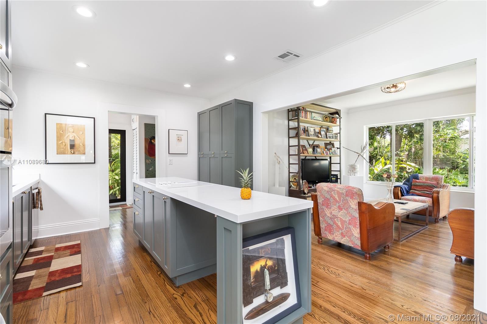 Spectacular botanical paradise in the heart of Miami Shores. This majestic property just received an extensive renovation that preserved the magic and history of the home. The ONLY double lot for sale in the area means you have a blank canvas next to the home to build your most creative space. Empty lot can accommodate a complete second home, a pool along with an accessory dwelling unit, or a full extension of the living quarters. Includes approved plans and materials to convert the garage into a 3rd bedroom, perfect for a studio or home office. Custom European kitchen with direct garden views from every angle. Original oak floors and custom pine accents, combined with a working fireplace, make this the perfect home to enjoy a relaxing disconnect from the busy Miami lifestyle.