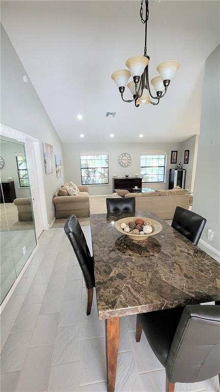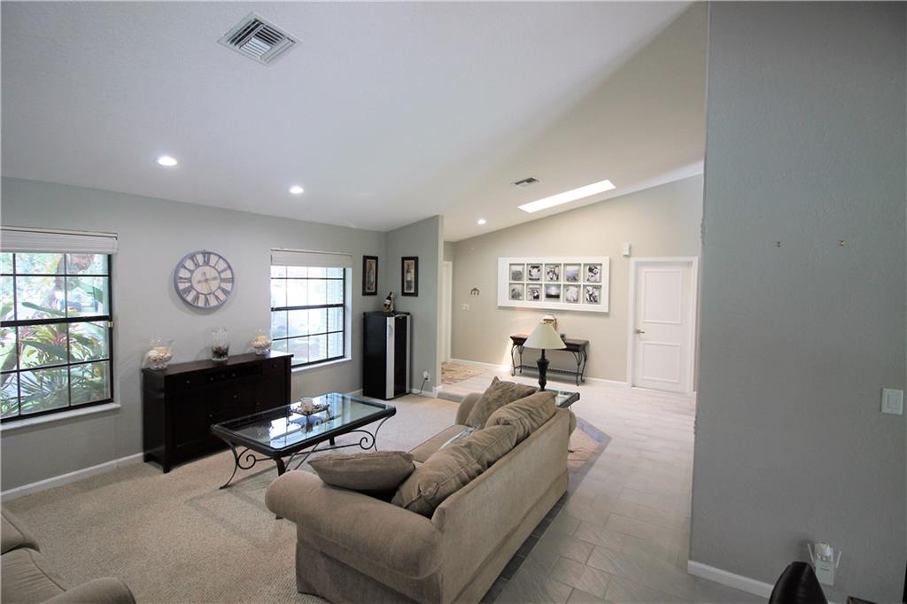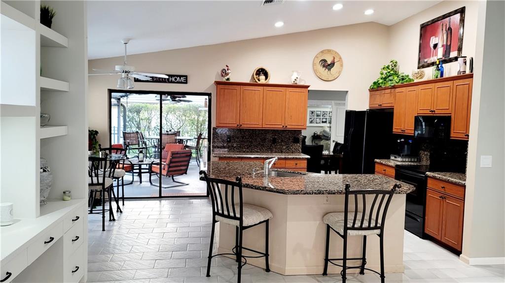 One of a kind 4 bedroom, 2 bath, updated split-bedroom, open floor plan, pool home in sought after Pine Ridge. Vaulted ceilings greet you as you are drawn from the formal living & dining rooms through to the kitchen & great room with custom wall unit. Gourmet kitchen with huge granite island, custom cabinets & an oversized pantry. The primary suite features cathedral ceilings, dual walk-in closets & a remodeled bath with custom shower, dual sinks & a spa-feel. Large bedrooms & updated cabana bath. Entertainers' private tropical oasis with hot tub waterfalling into the oversized pool, screened area with wet bar. Fenced yard for pets with lemon, grapefruit & avocado trees. Freshly painted & knockdown ceilings. Newer A/C, water heater, pool equip. & sprinkler pump. Accordion shutters.