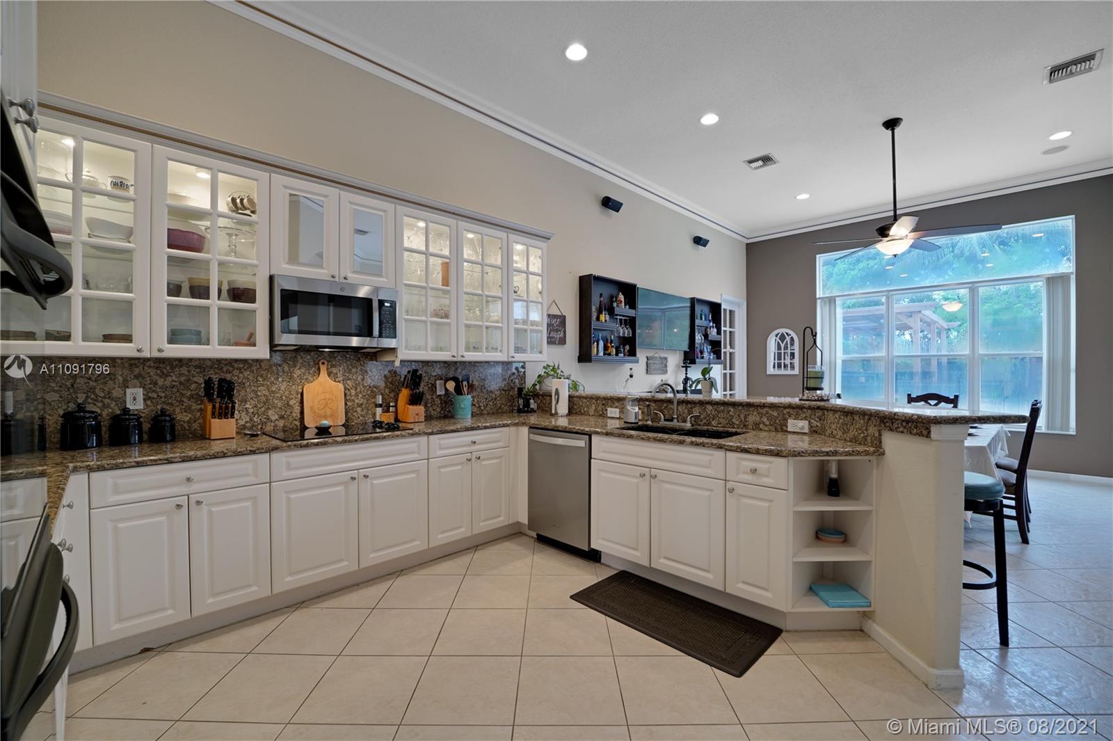 Paradise in the Estates of Pembroke Shores, this Estate pool home is truly one of a kind. This 4 bed 3 bath stunner is perfect for entertaining with its open floor plan and 13ft volume ceilings. New/newer SS dishwasher, microwave and refrigerator. New 5-ton AC unit, newer washer and dryer, high impact entry French doors, accordion shutter throughout. It is move in ready. Now prepare yourself to be taken away to the tropics! This oversized lot, one of the largest in the area, boasts a 16x30 custom pool, travertine flooring, 2 custom wood sun decks, a Zen pergola sitting area with working stone waterfall and numerous fruit trees including, bananas, coconuts, papaya, mangos and avocado. Conveniently located near I75, The shoppes at Pembroke Gardens, major shopping and entertainment.