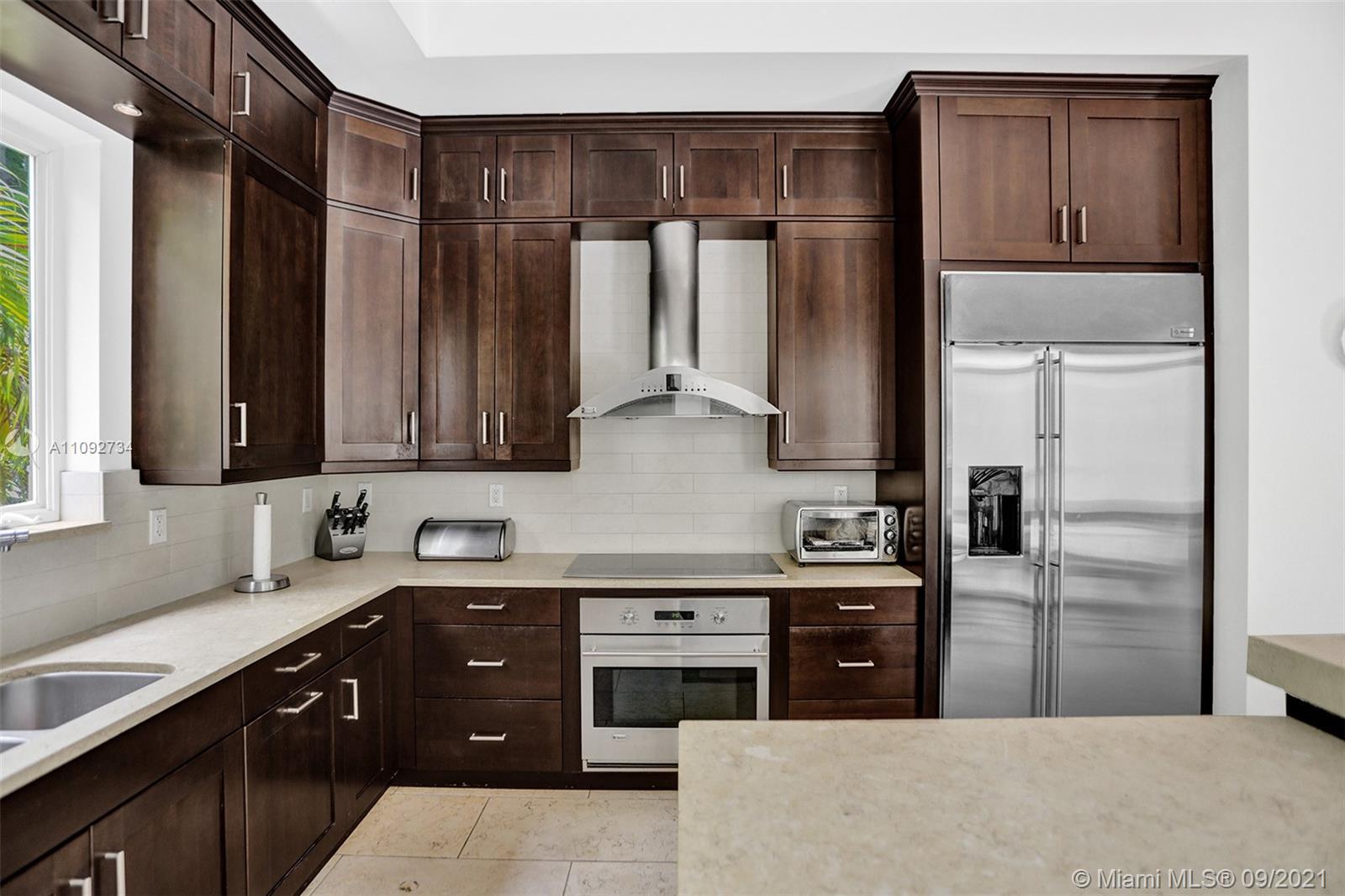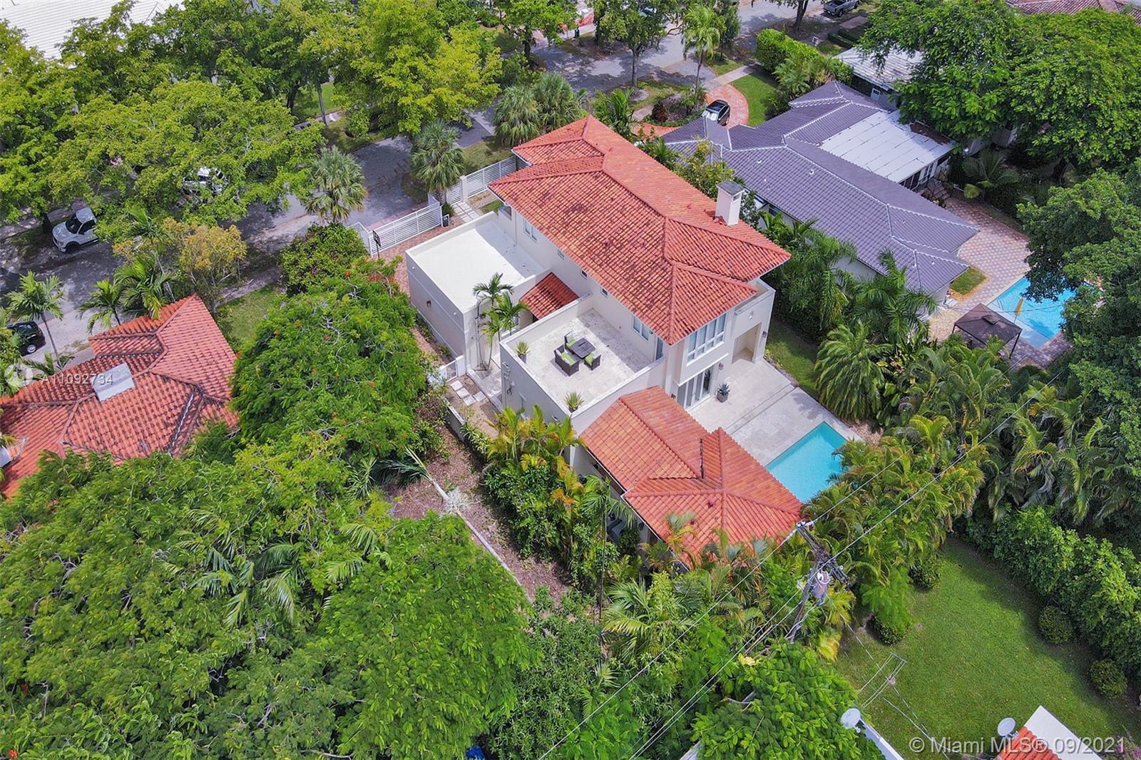 Stunning two-story home built in 2008, in the heart of Coral Gables designed to entertain! Home features an open concept floor plan with spacious areas & high ceilings, allowing plenty of natural light throughout. Relax under the covered terrace, with built-in grill & full cabana bath, and enjoy the lush landscaped backyard and sparkling pool. Modern kitchen with plenty of cabinet space & SS appliances. Home features 5 bedrooms + den/office/6th bedroom, all with en-suite bathrooms. The 2nd floor encompasses 3 generous size bedrooms & master suite with a large walk-in closet & private terrace overlooking the pool. Tons of storage, 2-car garage, all impact windows/doors, plantation shutters and more. Move-in ready! Near everything Coral Gables has to offer & only 15 minutes from MIA Airport.