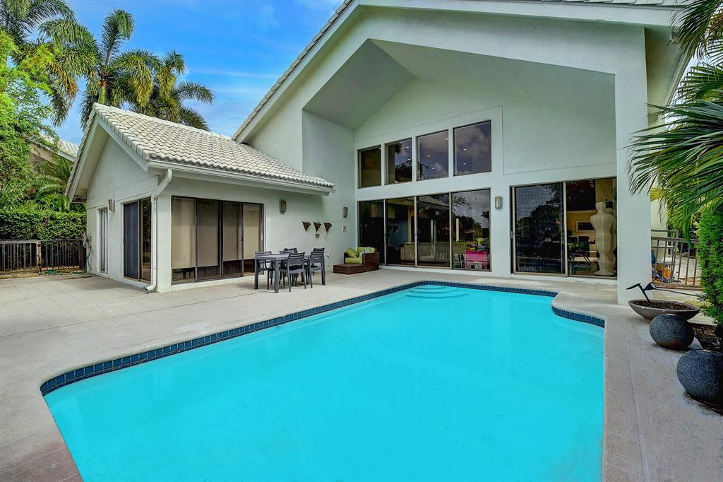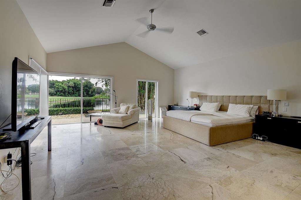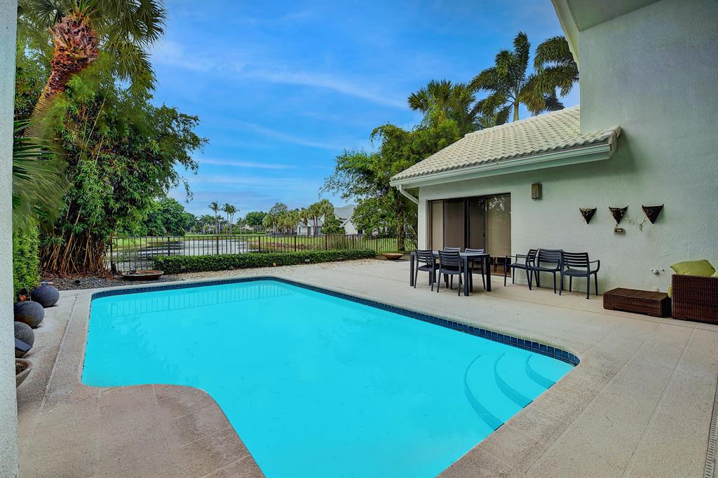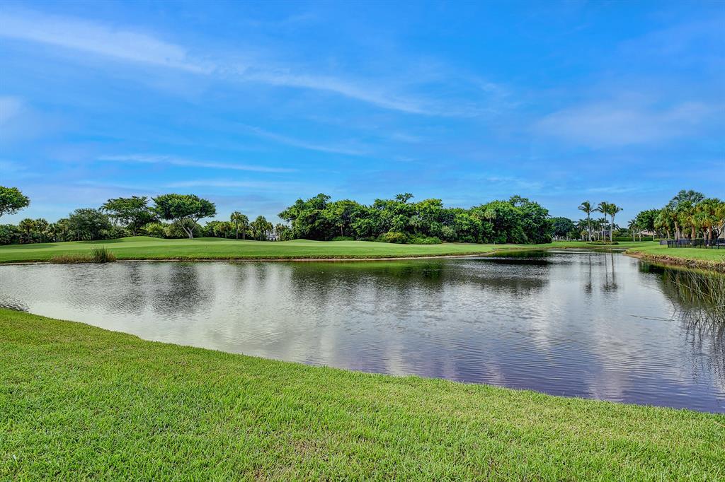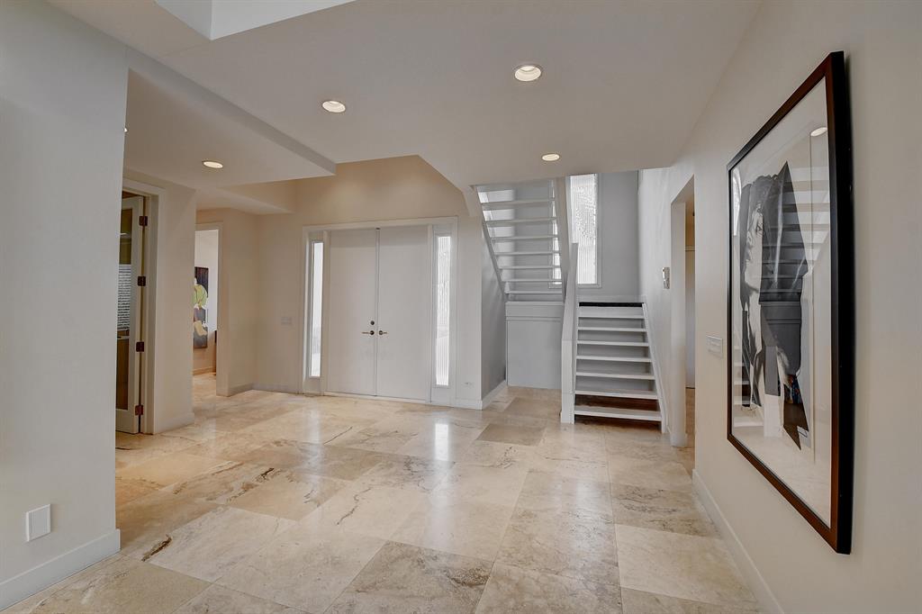 Updated 2-story, 3-bedroom + office home with stunning lake & golf course views. The interior is open, light and bright, with floor-to-ceiling windows and lots of natural light flooding through. Ground-level master suite has a spacious master bath with dual sinks, rain shower and wall body sprays, and ample closet space. Upstairs are 2 en-suite guest bedrooms. The backyard features open & covered patio areas and a pool, all overlooking the exceptional lake & golf course views. Located in a private cul-de-sac in the Fairway Terrace section with concierge services.