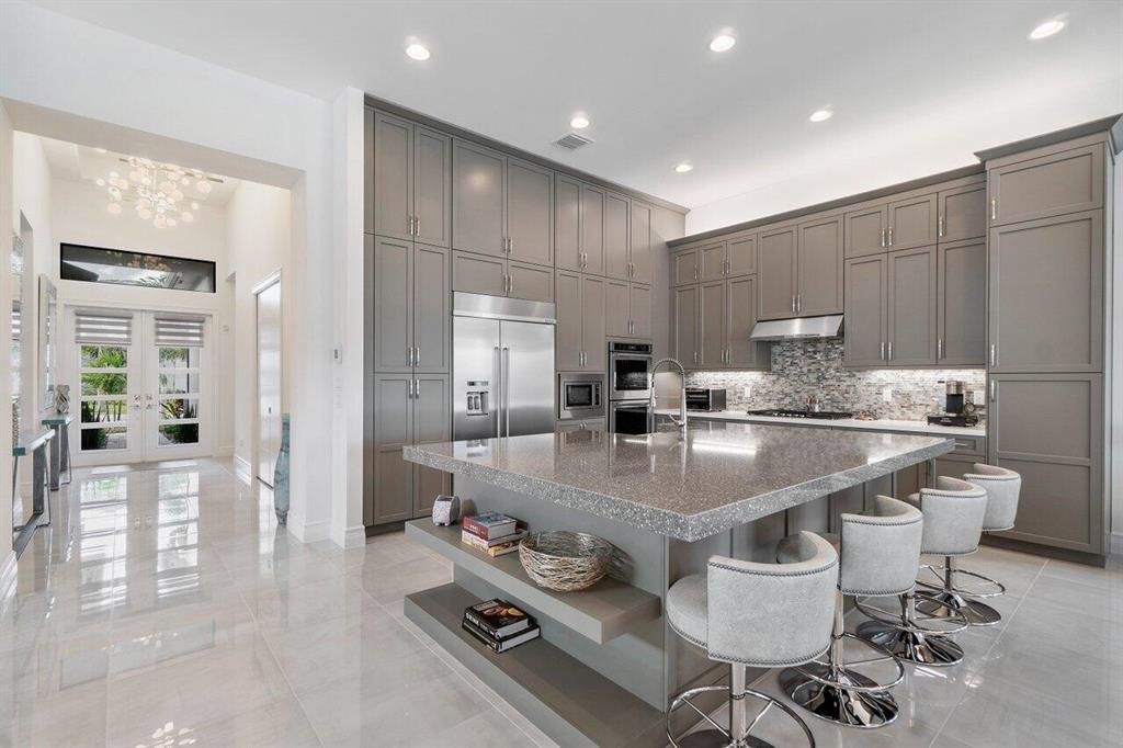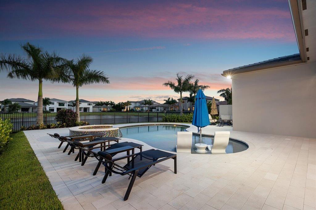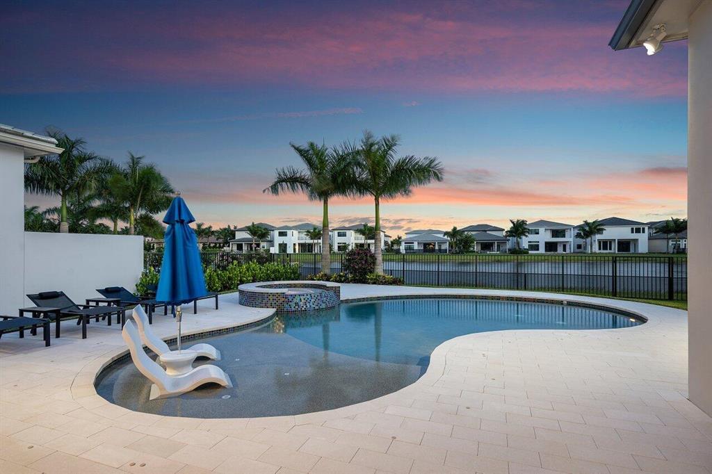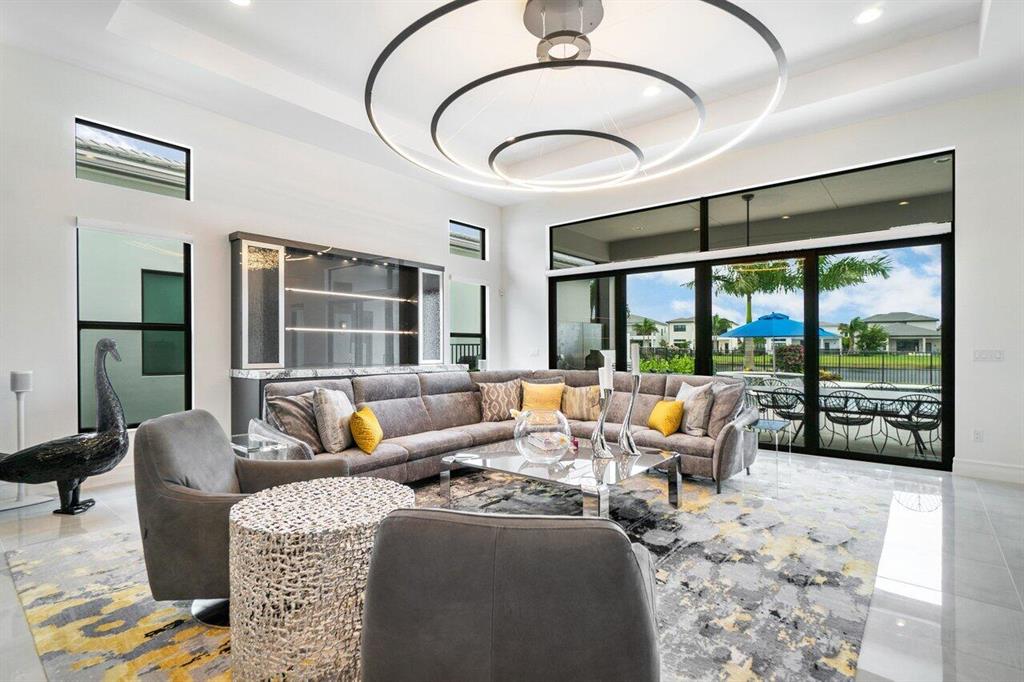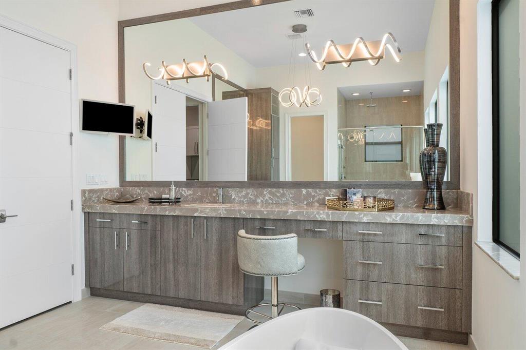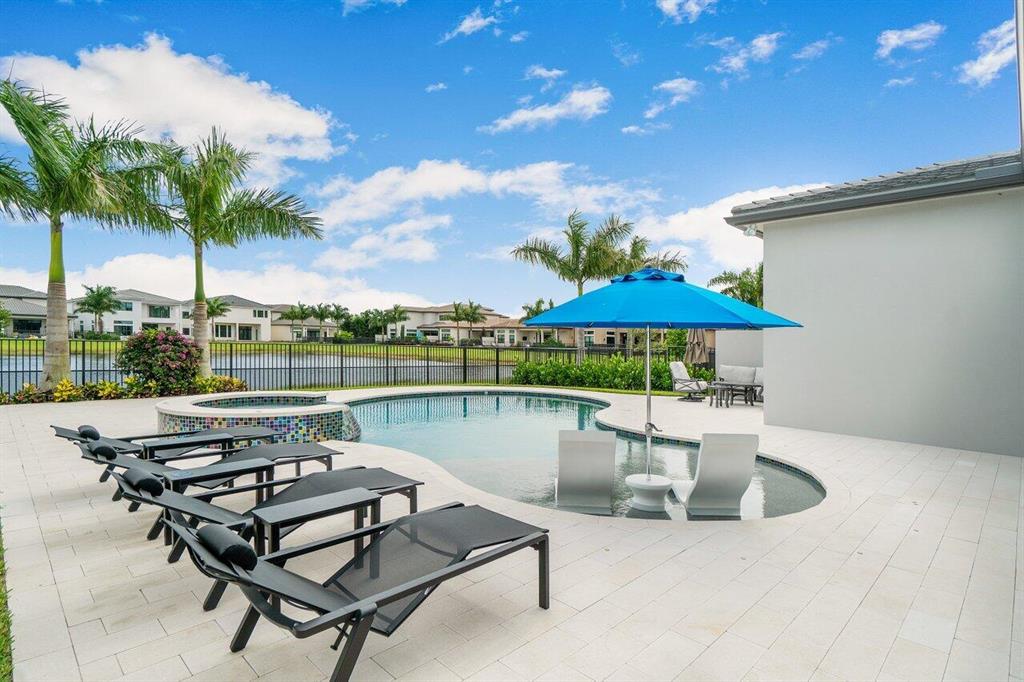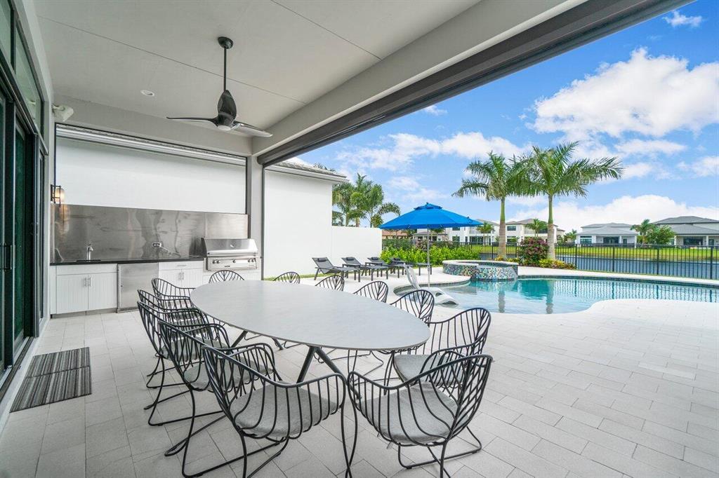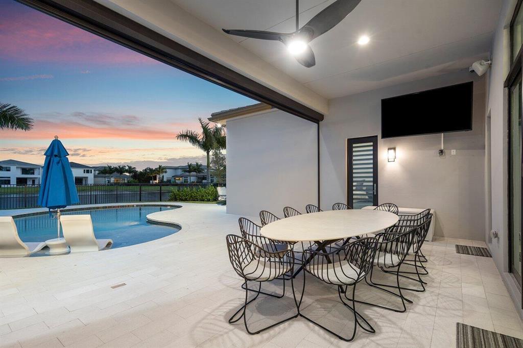 Stunning one-story, fully upgraded home in the highly desired Boca Bridges. 3 bedroom plus den! This home features a long list of upgraded features and was meticulously designed to be a stand out in the community. The home owners sparred no expense in design. The contemporary home features soaring 12 1/2 foot coffered ceilings with gorgeous tile and wood flooring. The living area features a custom entertainment center and built in bar area with Quartz countertops. Additionally, the home has custom, motorized blinds throughout. The bedrooms all have ensuite bathrooms that feature upgraded tile, vanities, lighting, and mirrors.Custom, European light fixtures throughout the home. The backyard features pool, spa and summer kitchen. Electronics included.