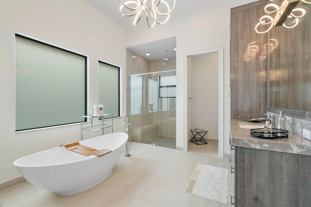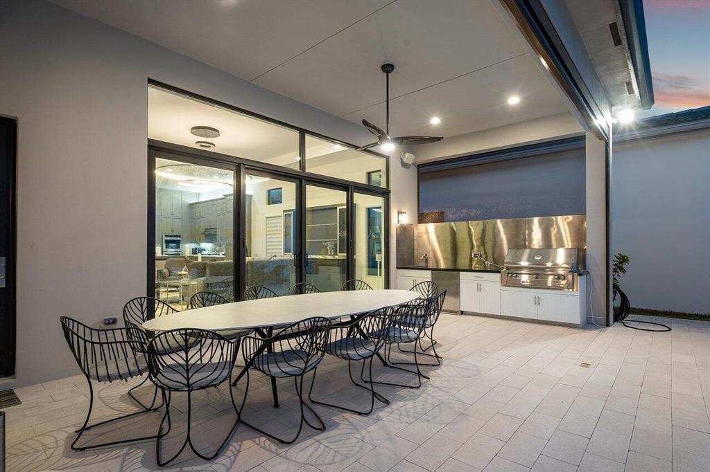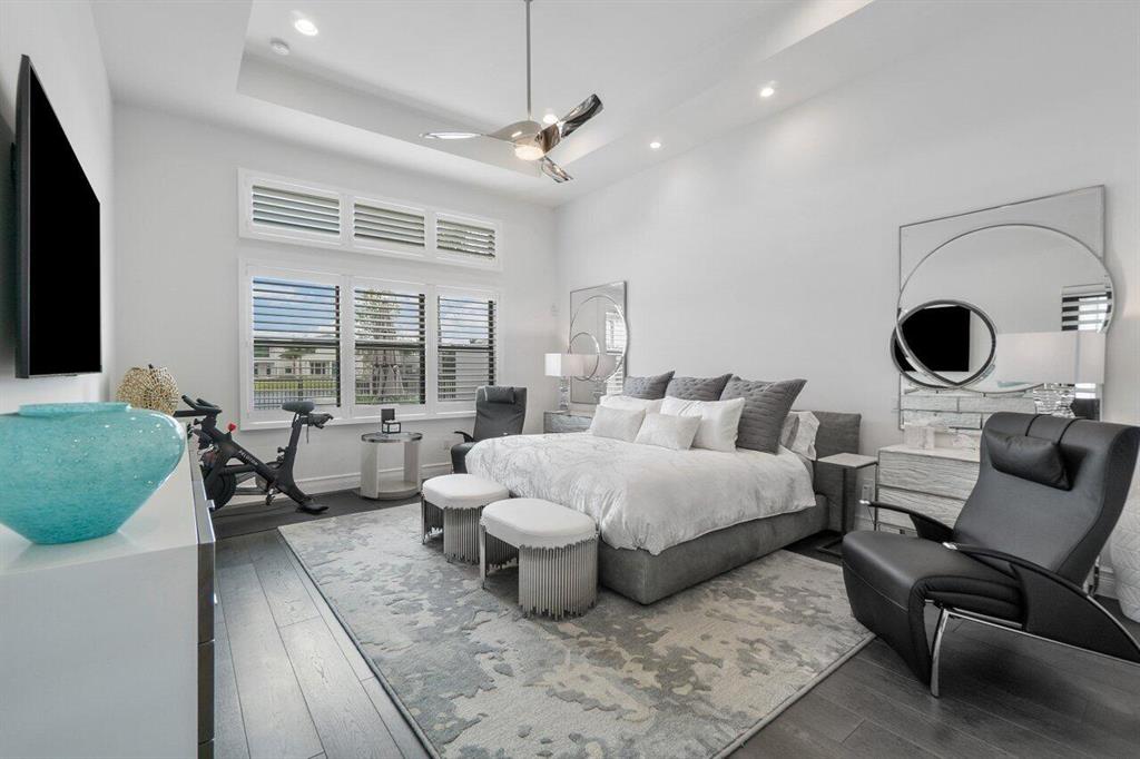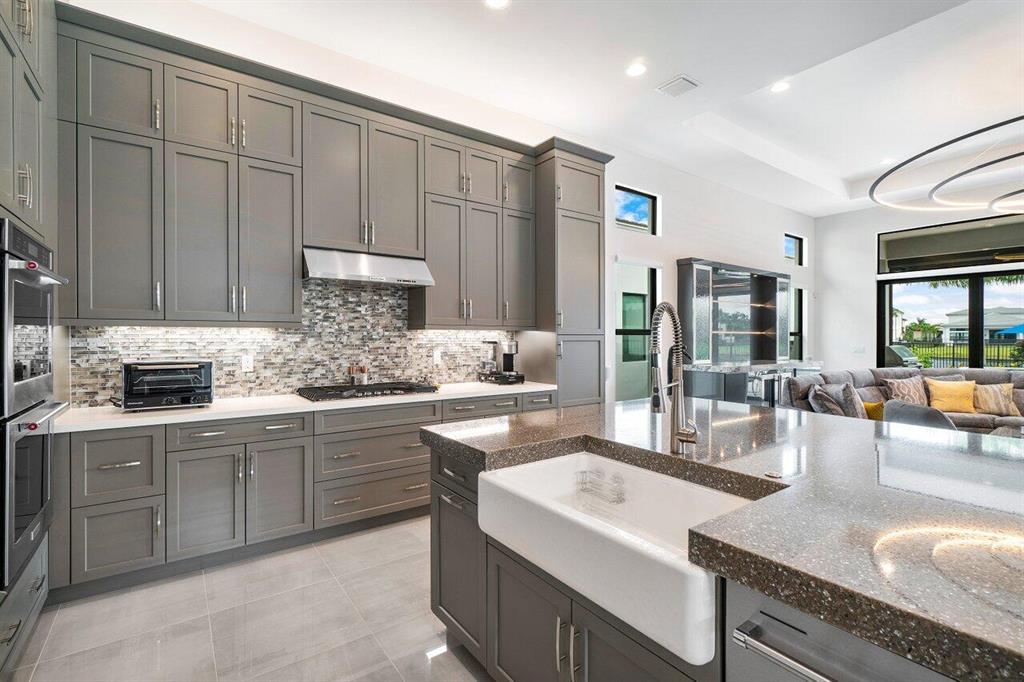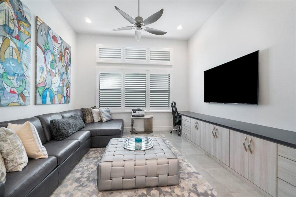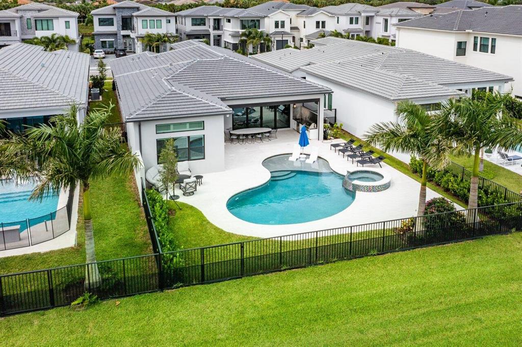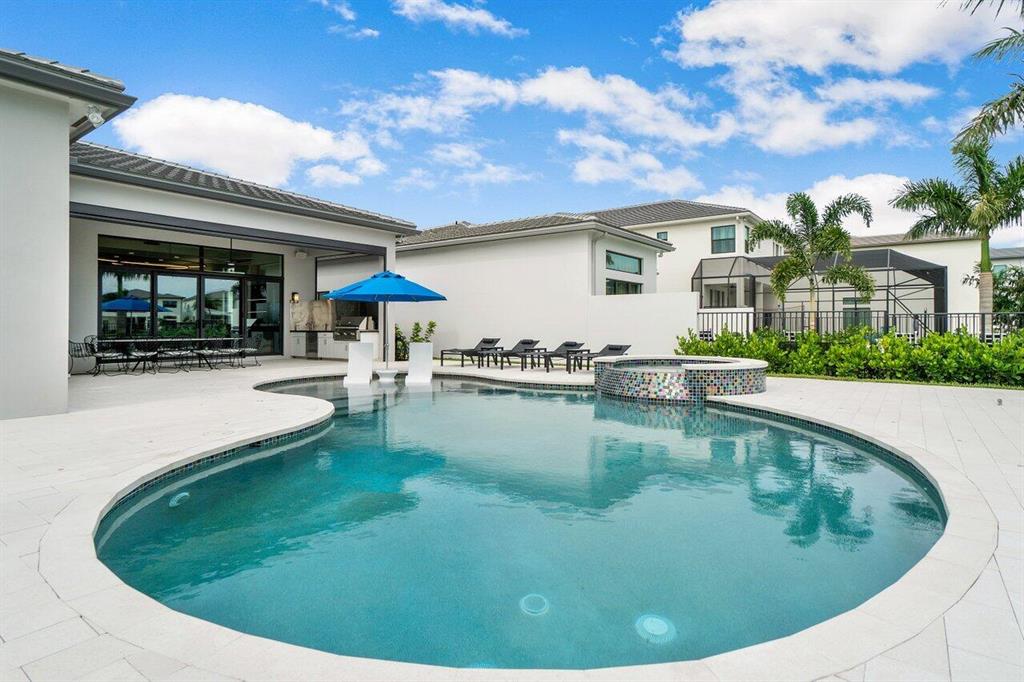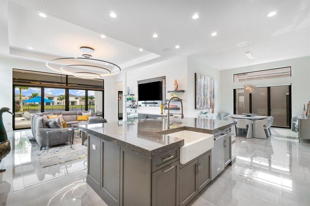 Stunning one-story, fully upgraded home in the highly desired Boca Bridges. 3 bedroom plus den! This home features a long list of upgraded features and was meticulously designed to be a stand out in the community. The home owners sparred no expense in design. The contemporary home features soaring 12 1/2 foot coffered ceilings with gorgeous tile and wood flooring. The living area features a custom entertainment center and built in bar area with Quartz countertops. Additionally, the home has custom, motorized blinds throughout. The bedrooms all have ensuite bathrooms that feature upgraded tile, vanities, lighting, and mirrors.Custom, European light fixtures throughout the home. The backyard features pool, spa and summer kitchen. Electronics included.