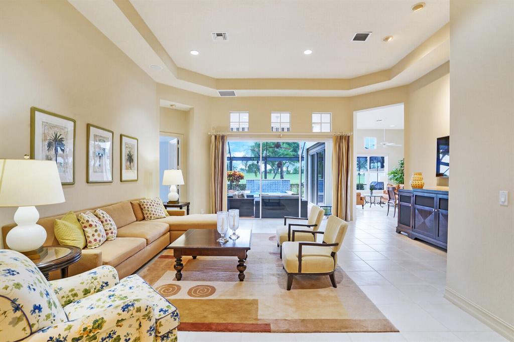 Move right into this meticulously maintained and incredibly upgraded 3BR/3BA+Den home. With premium golf course views and a bright-all-day Southern exposure, this Sabatello-built ''Tivoli'' features a picturesque backdrop of the 7th hole of the Nicklaus-designed Legend Course. An electric awning provides extra shade, perfect for serene outdoor living while overlooking the upgraded pool and spa, and golf and water views. This professionally decorated home is being sold furnished--start enjoying the fabulous Ibis lifestyle on Day 1! In addition to the timeless, quality furniture, this home boasts serious improvements: 2017- ROOF, GENERATOR, NEW AC, and ACCORDIAN SHUTTERS! Other upgrades and improvements include: