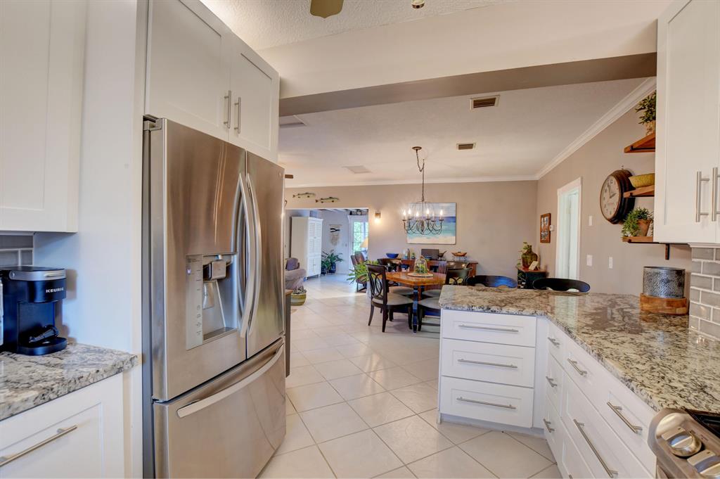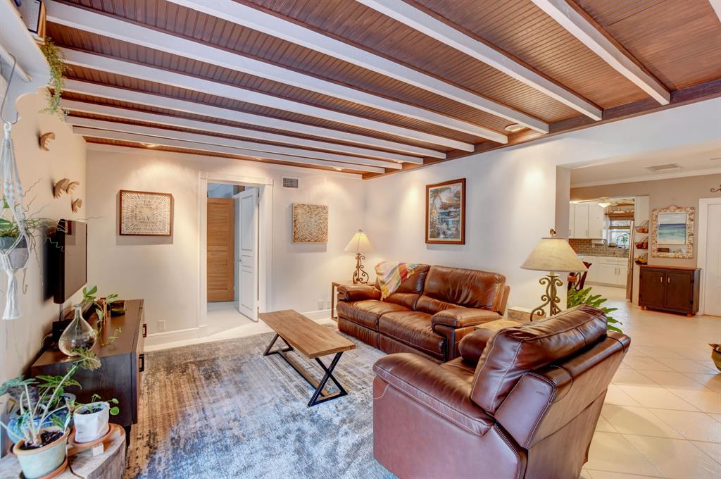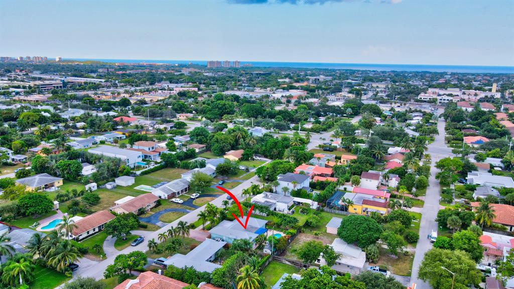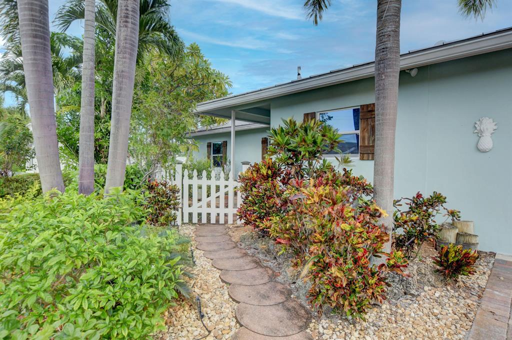Charm and character in the heart of east boca! Surround yourself with palm trees, tropical landscape, stone walking paths, picket fence, landscape rocks, and a front porch garden. Exterior has an oversized paver driveway, metal roof, decorative wood shutters, storage shed, large side yard, newer pool, pavers, sun awning, fenced back and side, and impact windows. Newer kitchen with stainless appliances, white cabinets, granite, subway tile, and a comfortable bar top. Open floorplan with dining and living close to the kitchen and a family room w/ wood ceiling that overlooks the pool. Perfect for entertaining, grilling and Florida lifestyle. Close to beach, Mizner, downtown, mall, highways, airports, proposed brightline station and so much more. This home is full of love and good vibes!