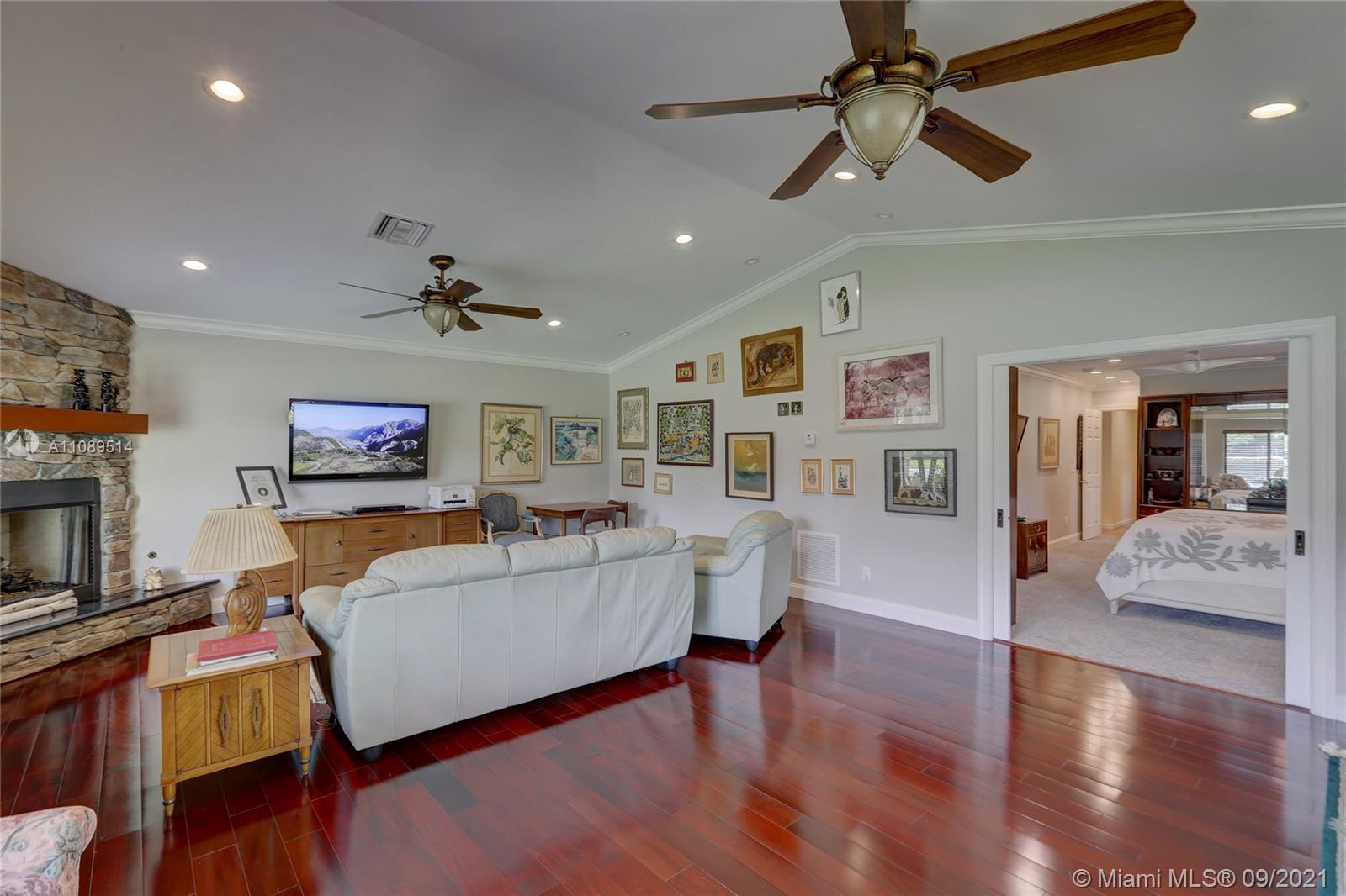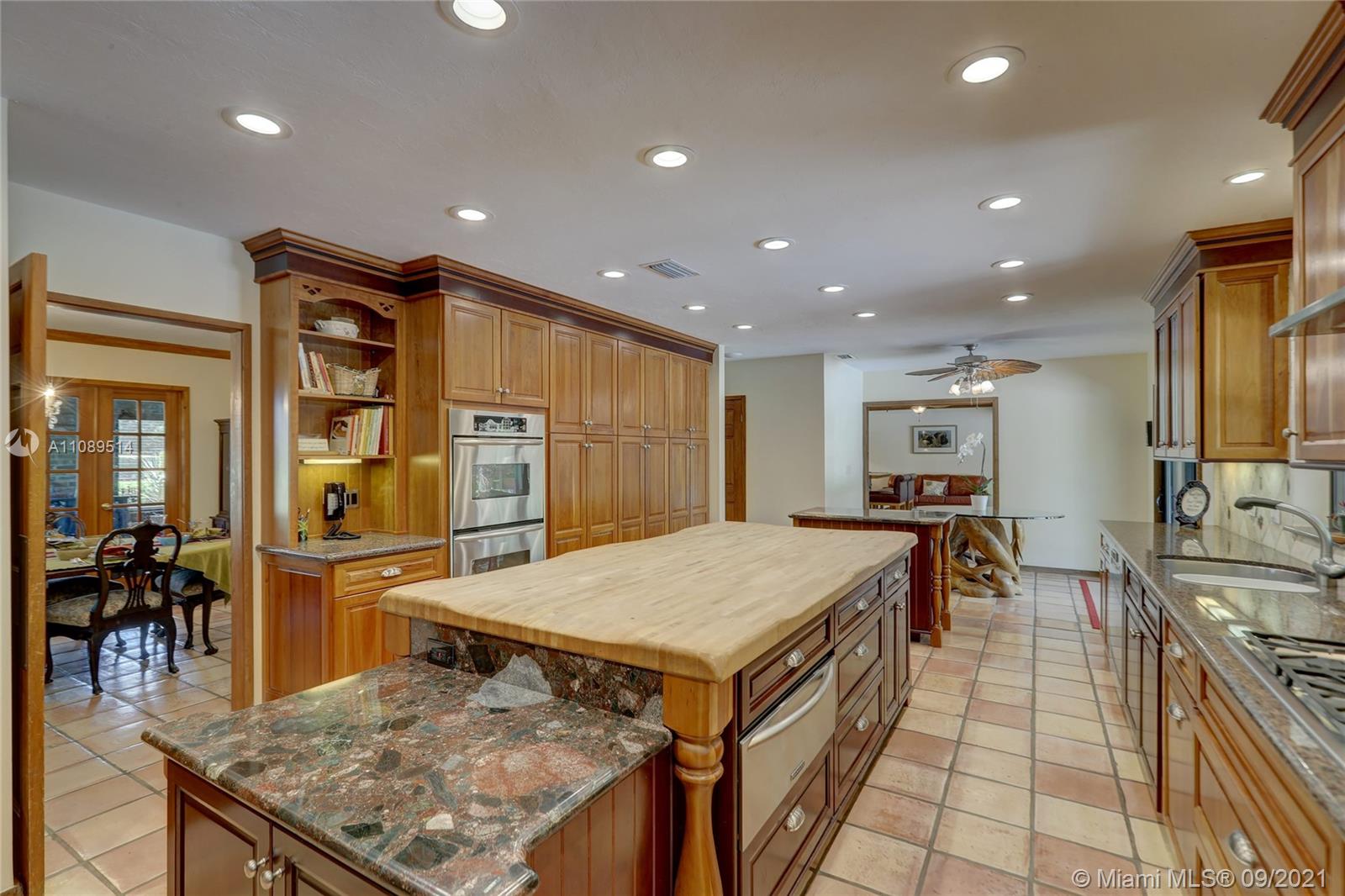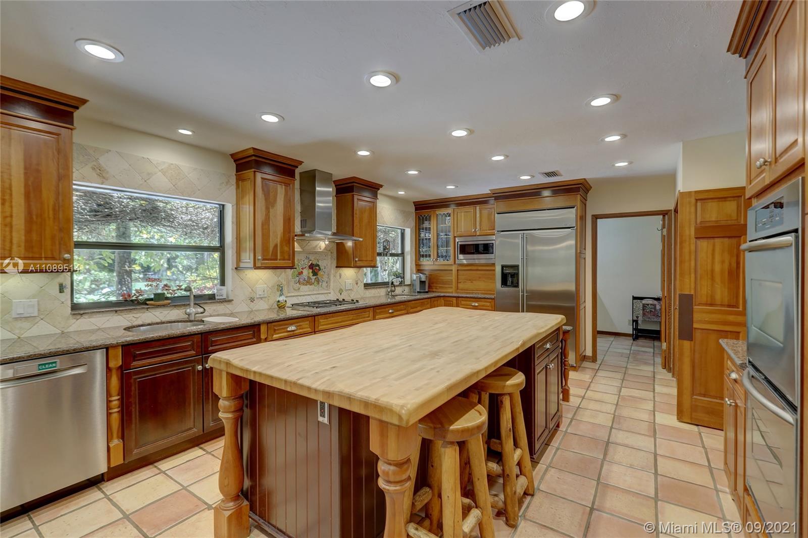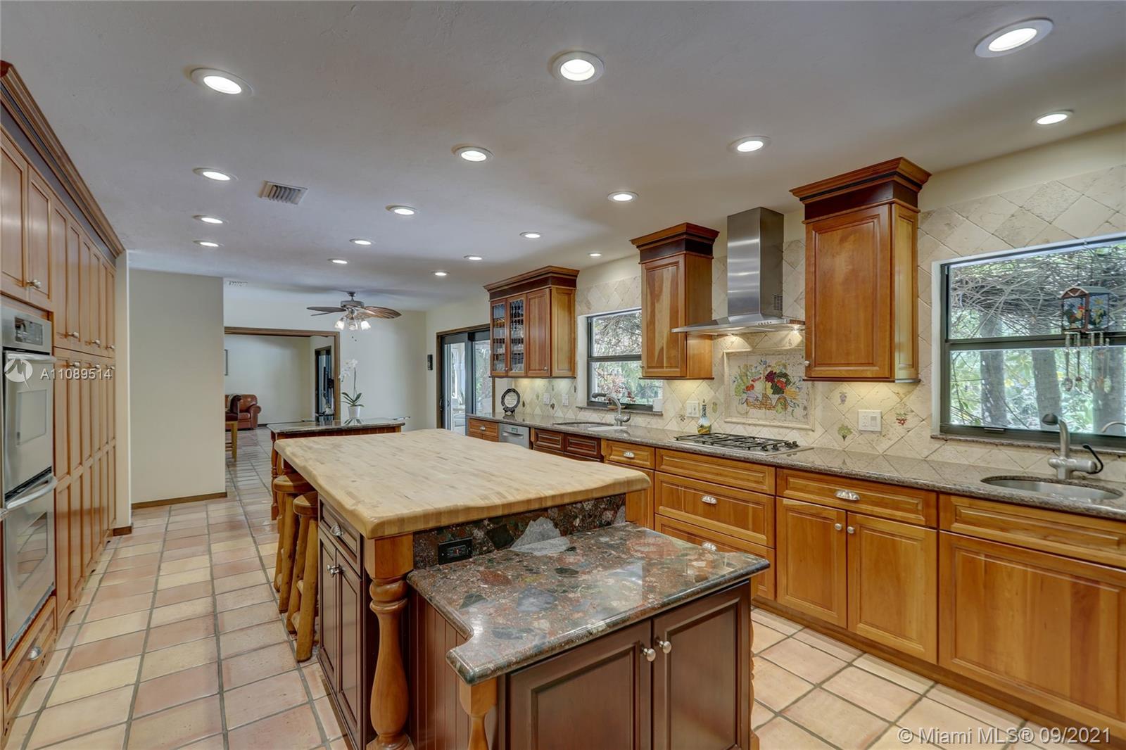 Entertainer’s dream; 4/4; living room has wet bar & expansive view of pool, very private yard, kitchen & breakfast room; den with wood burning stove & big TV; big sitting room with gas fireplace, wet bar & TV; chef’s kitchen with granite tops, baking station, dual sinks & double ovens, gas cook top, upgraded stainless steel appliances, 4x8 butcher block island, huge custom cabinets & warming drawer; separate entrance to granny flat with front porch; updated baths; custom cabinets in laundry with oversized washer/dryer; serenely landscaped yard features areca palm hedge, covered patio, lighted pergola, oversized pool with upgraded glass tile & converted horse barn available for multi-use; steam room; garage office; two custom vanities; showers with custom jets, many additional features.