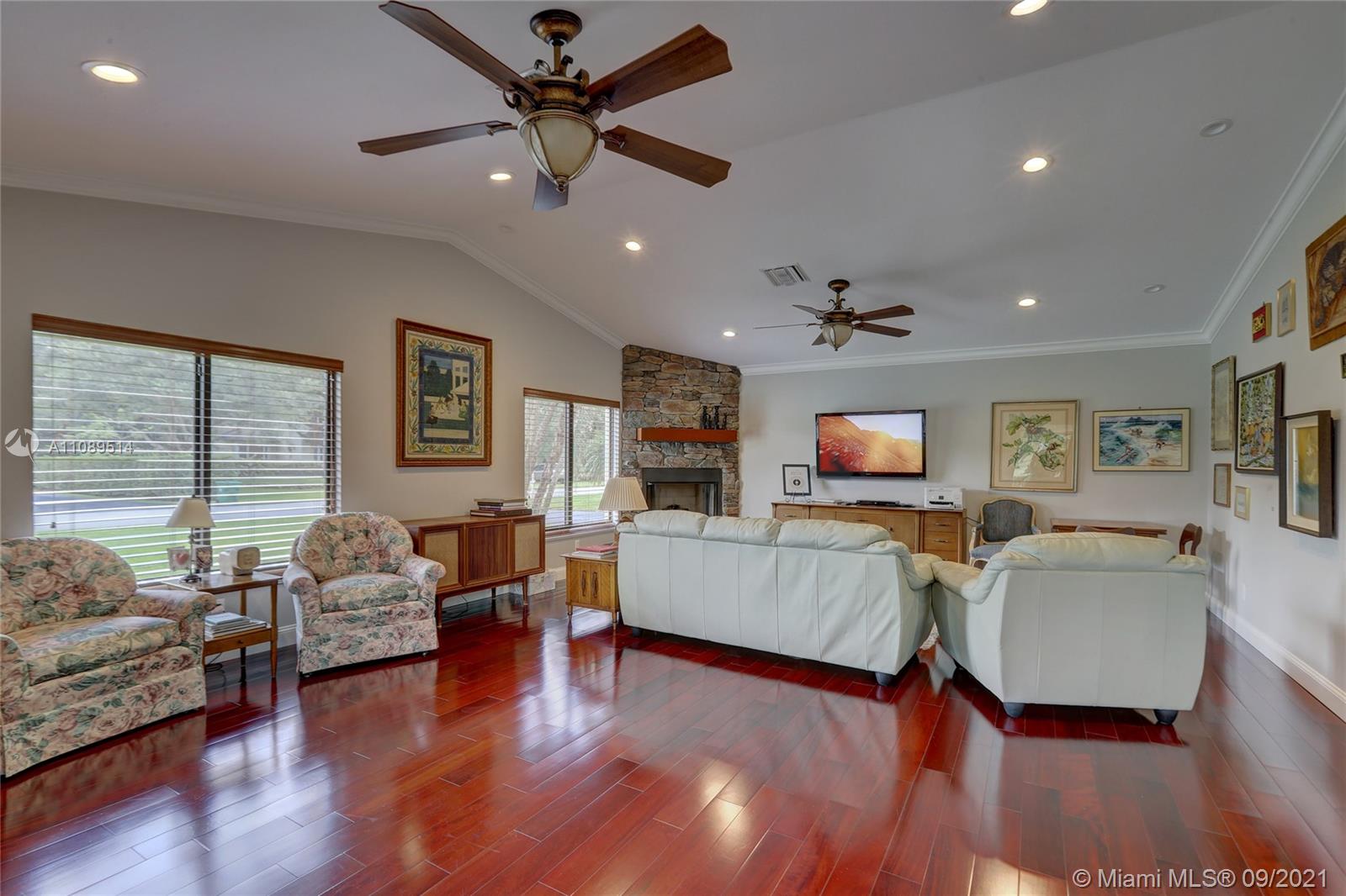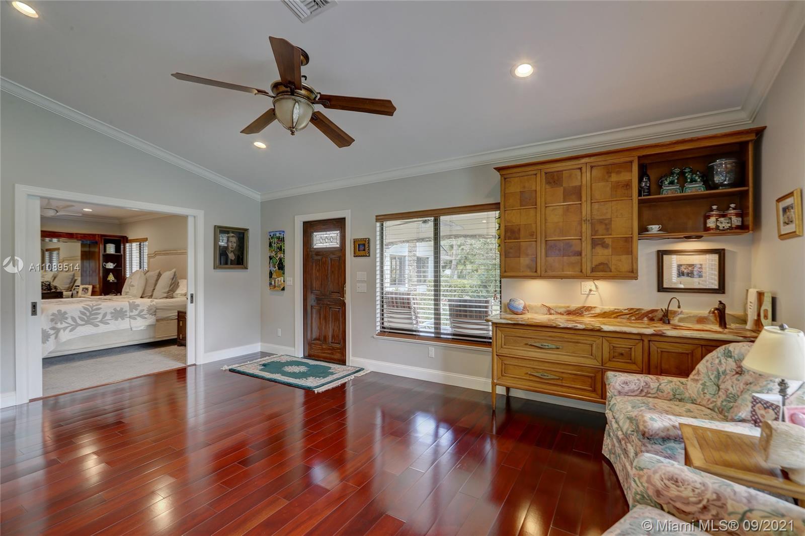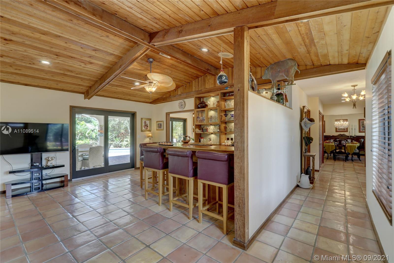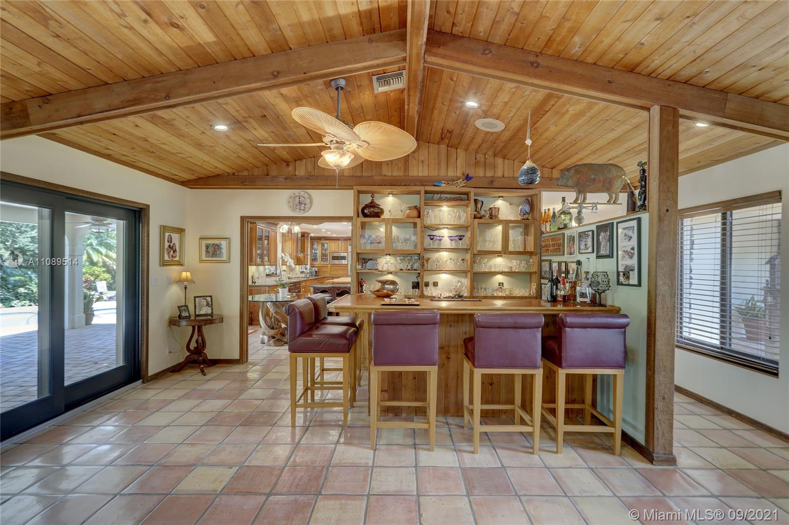 Entertainer’s dream; 4/4; living room has wet bar & expansive view of pool, very private yard, kitchen & breakfast room; den with wood burning stove & big TV; big sitting room with gas fireplace, wet bar & TV; chef’s kitchen with granite tops, baking station, dual sinks & double ovens, gas cook top, upgraded stainless steel appliances, 4x8 butcher block island, huge custom cabinets & warming drawer; separate entrance to granny flat with front porch; updated baths; custom cabinets in laundry with oversized washer/dryer; serenely landscaped yard features areca palm hedge, covered patio, lighted pergola, oversized pool with upgraded glass tile & converted horse barn available for multi-use; steam room; garage office; two custom vanities; showers with custom jets, many additional features.