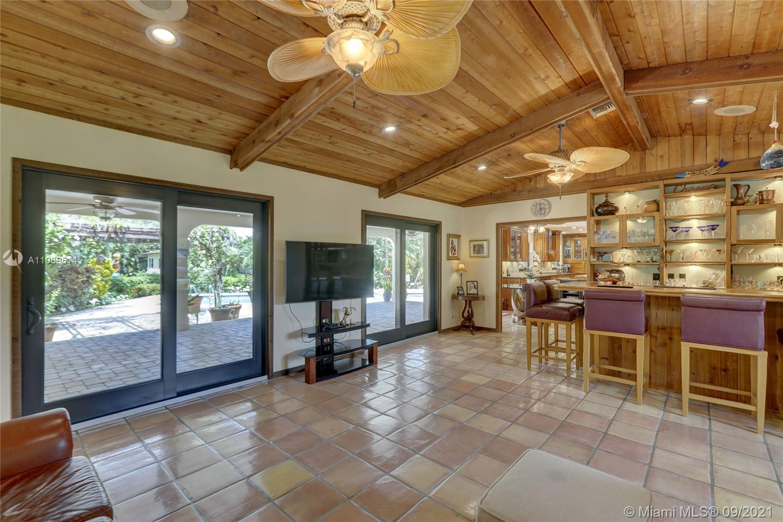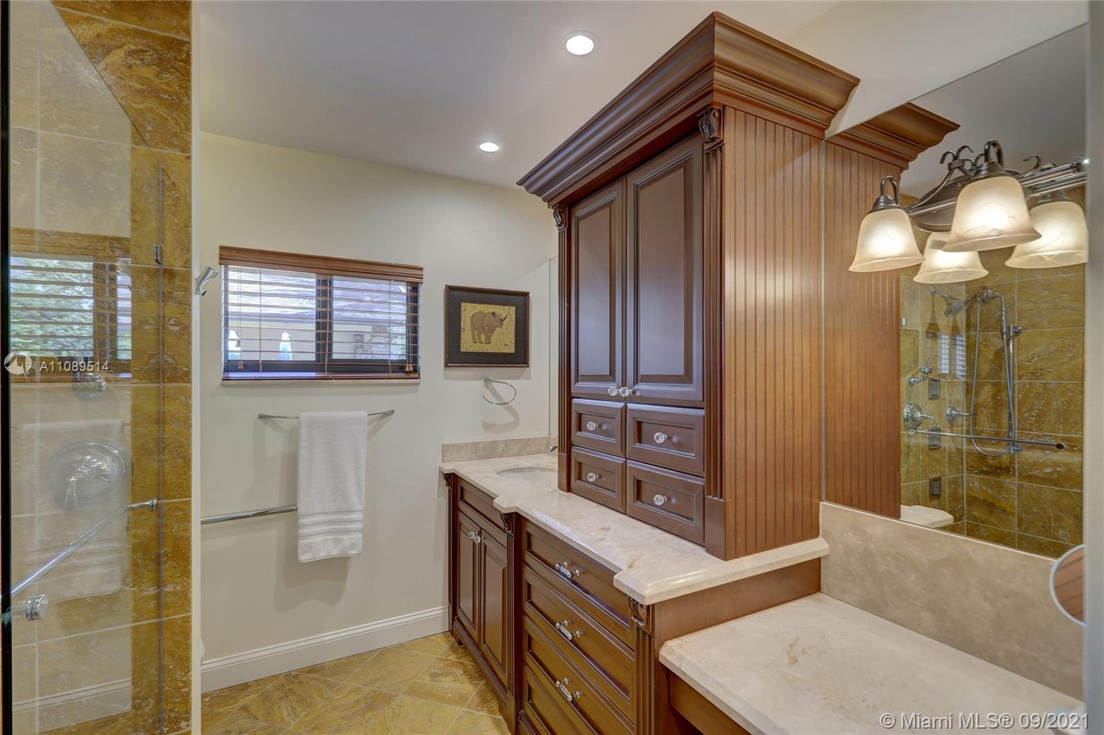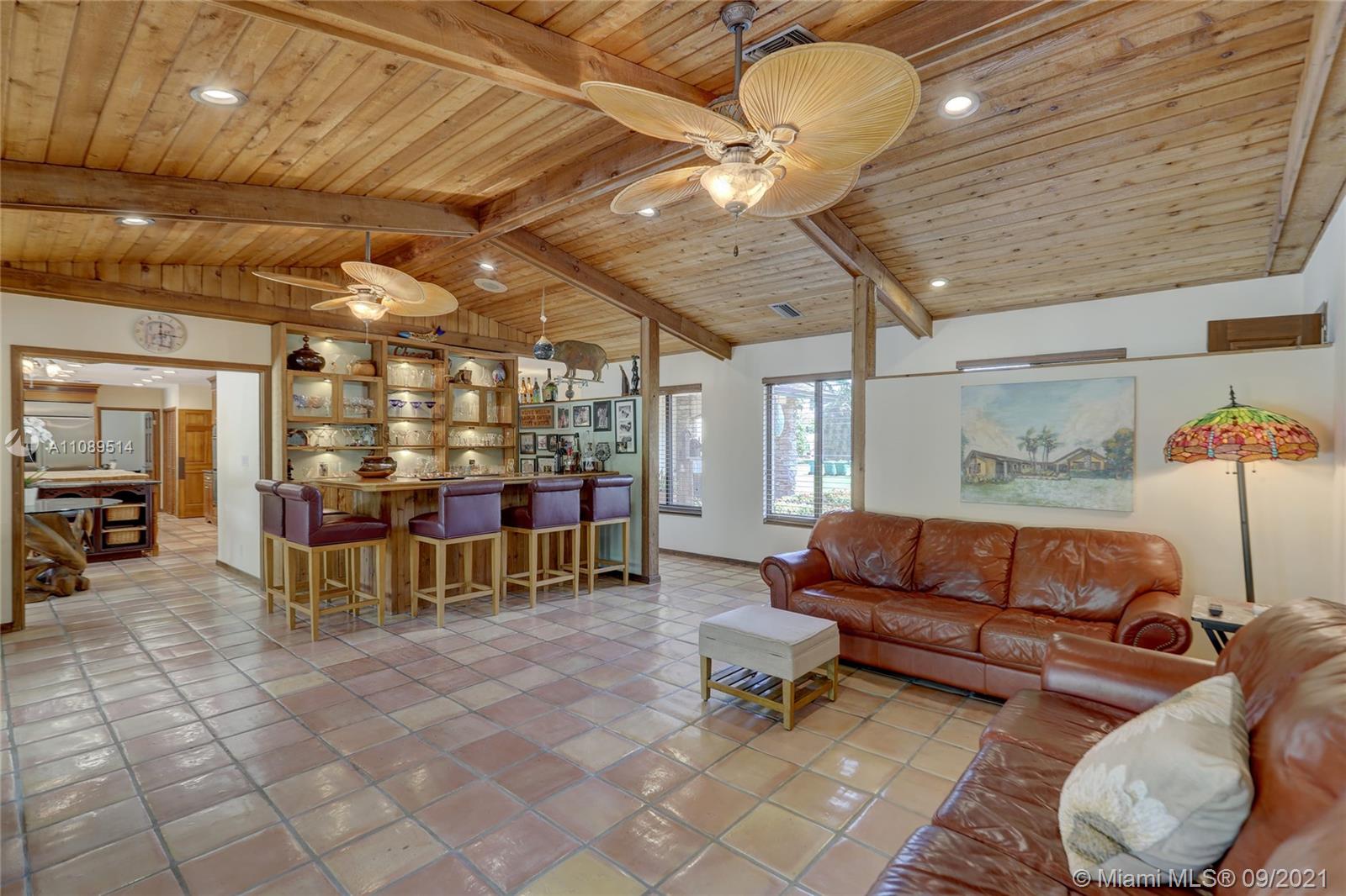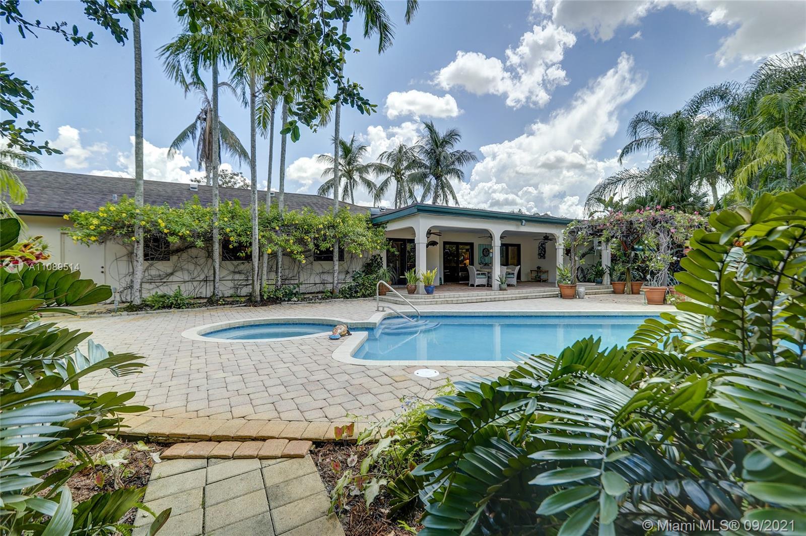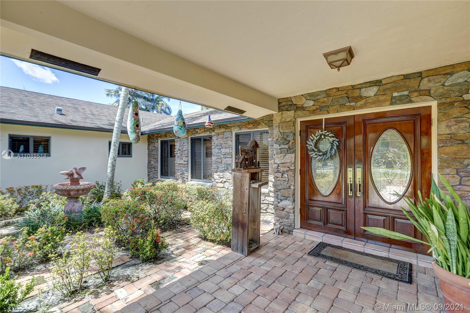 Entertainer’s dream; 4/4; living room has wet bar & expansive view of pool, very private yard, kitchen & breakfast room; den with wood burning stove & big TV; big sitting room with gas fireplace, wet bar & TV; chef’s kitchen with granite tops, baking station, dual sinks & double ovens, gas cook top, upgraded stainless steel appliances, 4x8 butcher block island, huge custom cabinets & warming drawer; separate entrance to granny flat with front porch; updated baths; custom cabinets in laundry with oversized washer/dryer; serenely landscaped yard features areca palm hedge, covered patio, lighted pergola, oversized pool with upgraded glass tile & converted horse barn available for multi-use; steam room; garage office; two custom vanities; showers with custom jets, many additional features.
