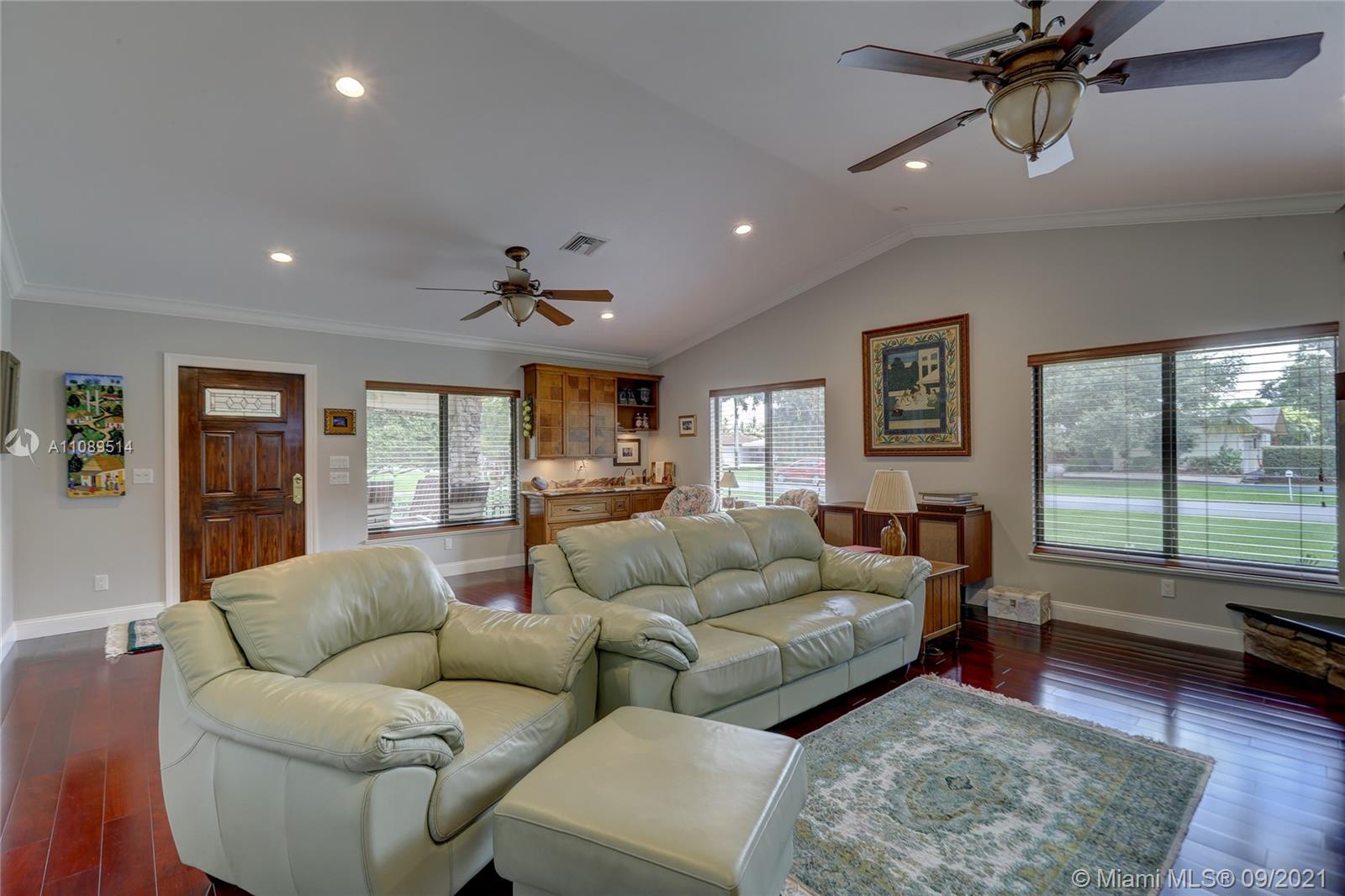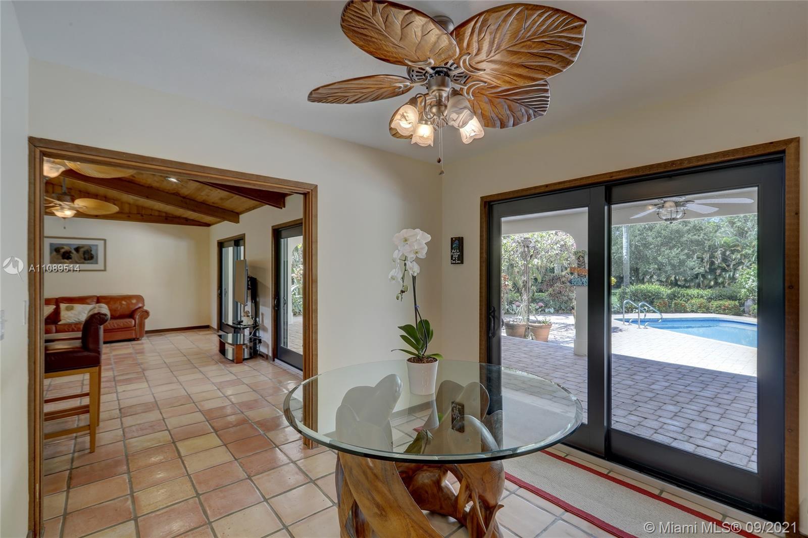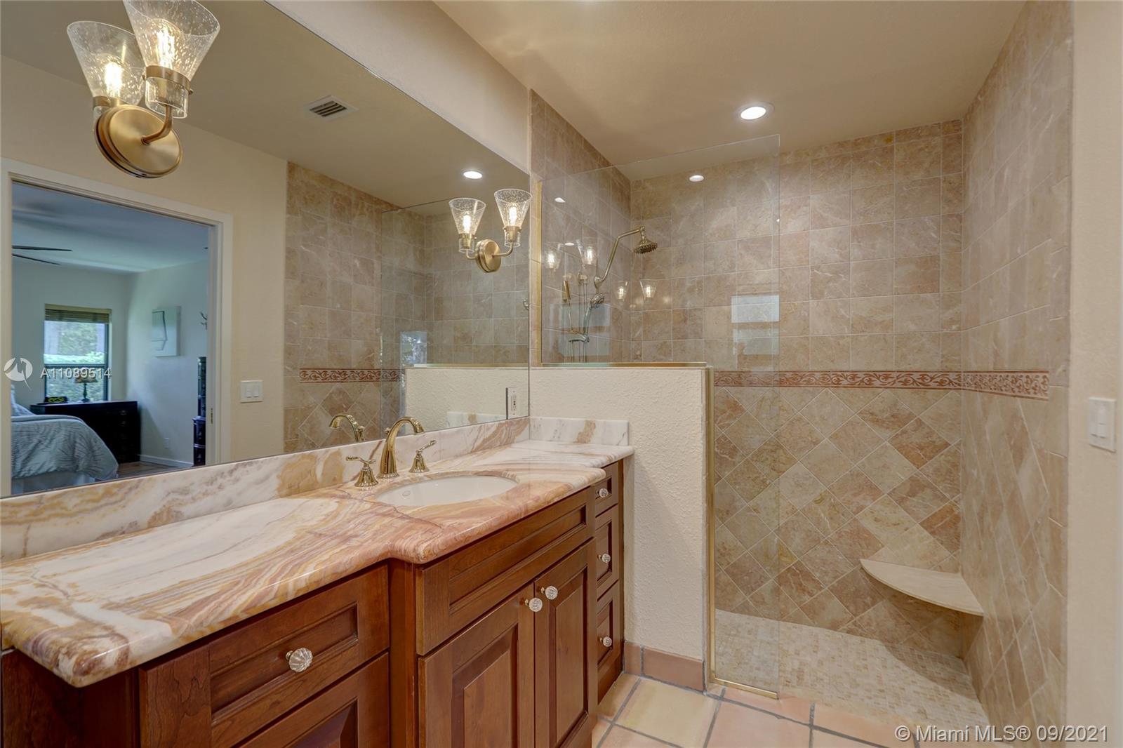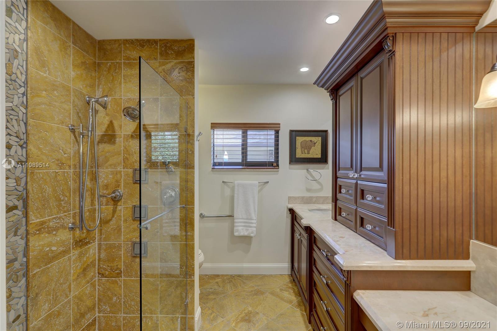 Entertainer’s dream; 4/4; living room has wet bar & expansive view of pool, very private yard, kitchen & breakfast room; den with wood burning stove & big TV; big sitting room with gas fireplace, wet bar & TV; chef’s kitchen with granite tops, baking station, dual sinks & double ovens, gas cook top, upgraded stainless steel appliances, 4x8 butcher block island, huge custom cabinets & warming drawer; separate entrance to granny flat with front porch; updated baths; custom cabinets in laundry with oversized washer/dryer; serenely landscaped yard features areca palm hedge, covered patio, lighted pergola, oversized pool with upgraded glass tile & converted horse barn available for multi-use; steam room; garage office; two custom vanities; showers with custom jets, many additional features.
