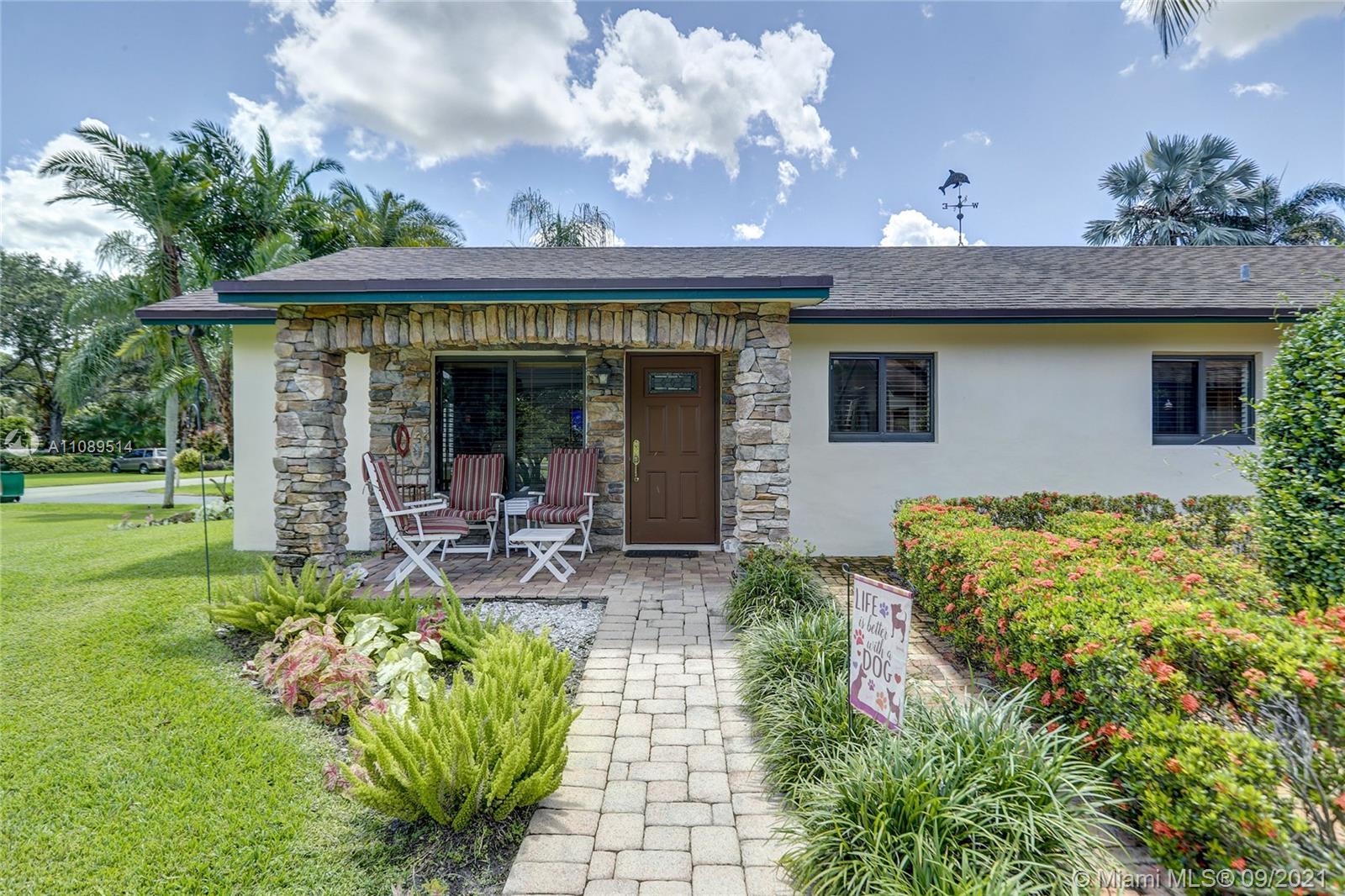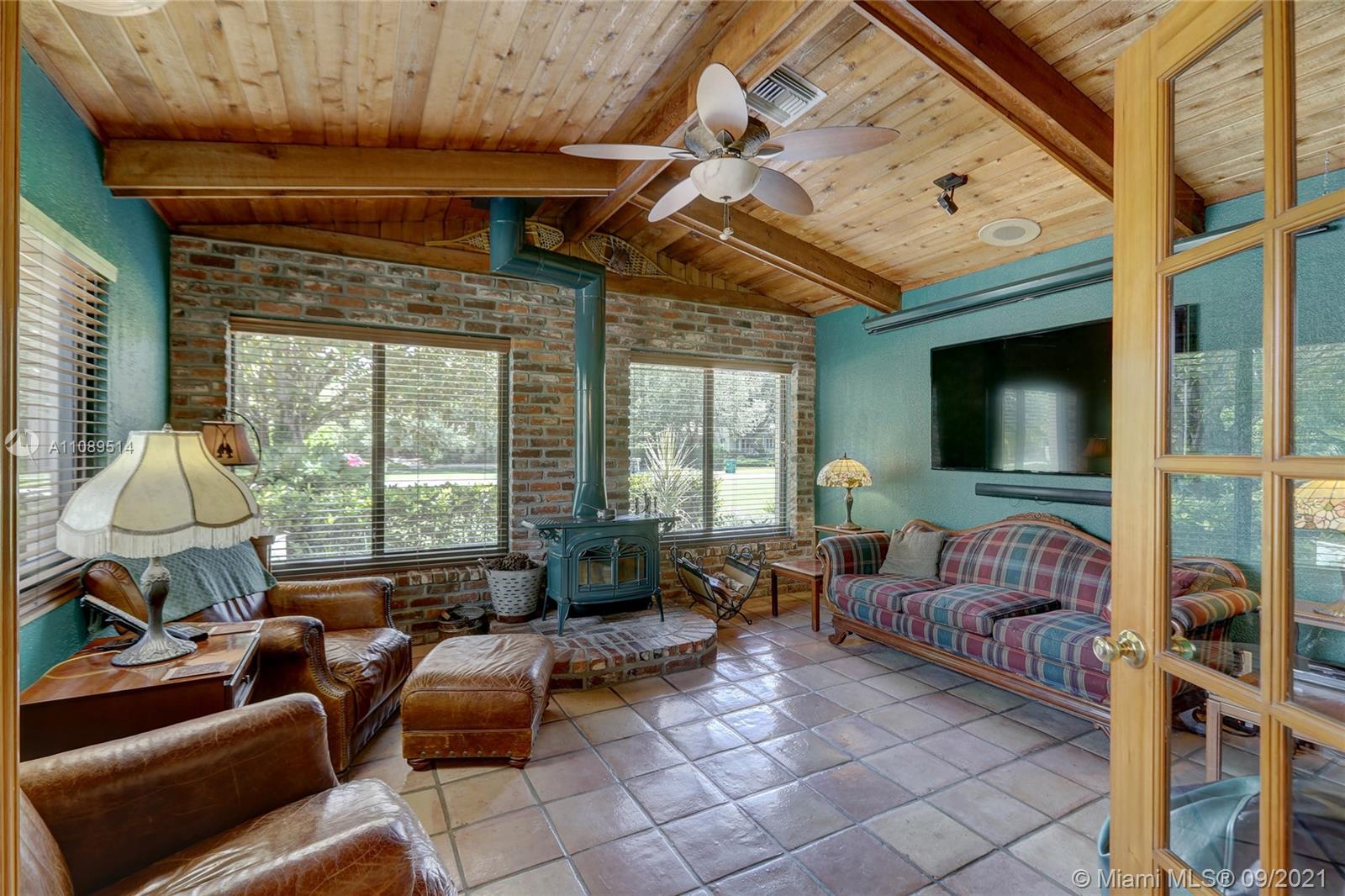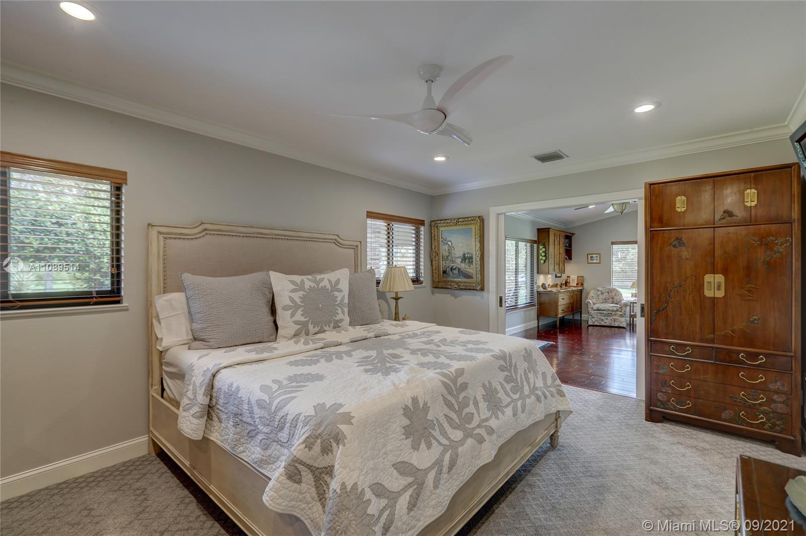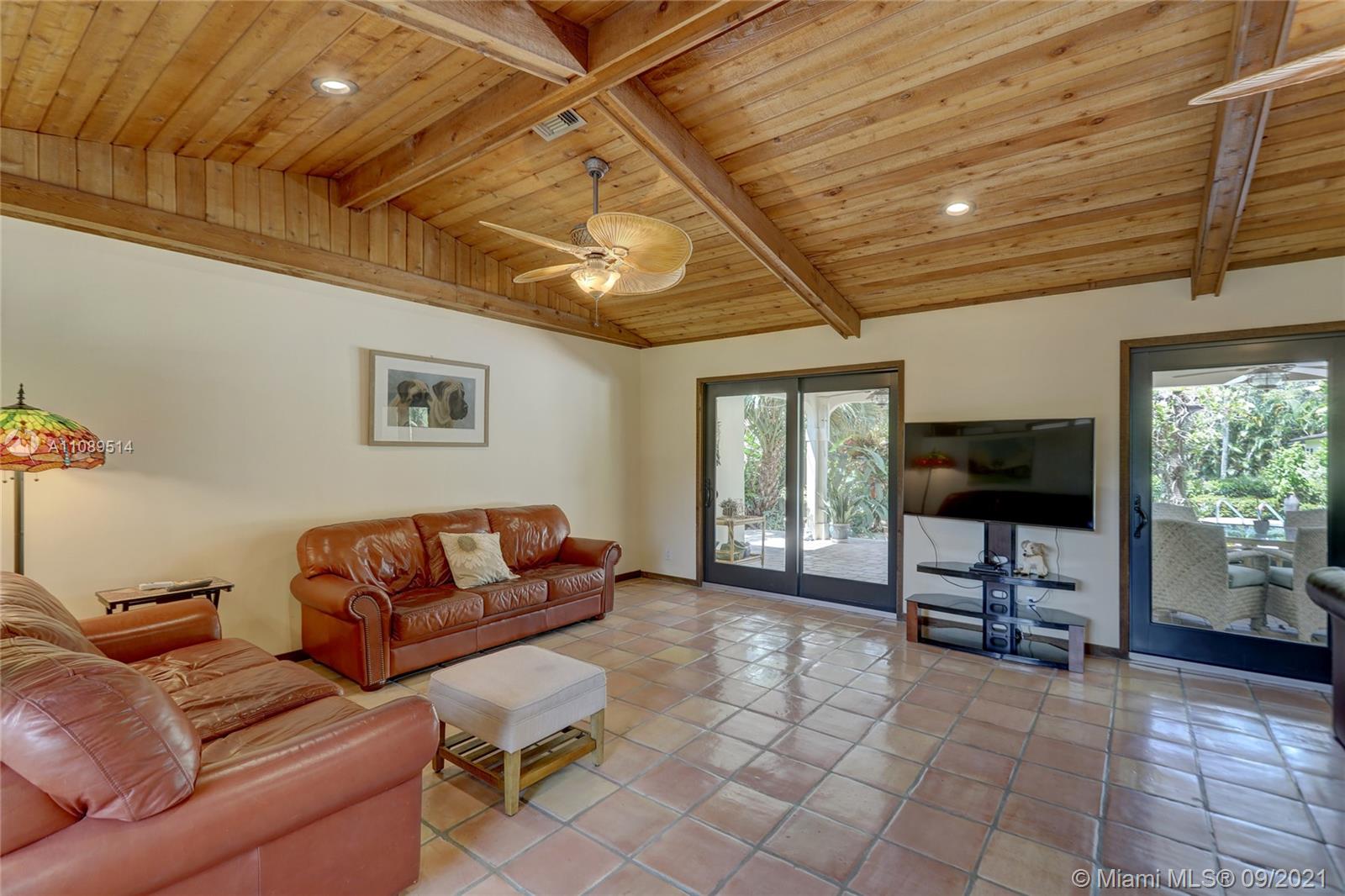 Entertainer’s dream; 4/4; living room has wet bar & expansive view of pool, very private yard, kitchen & breakfast room; den with wood burning stove & big TV; big sitting room with gas fireplace, wet bar & TV; chef’s kitchen with granite tops, baking station, dual sinks & double ovens, gas cook top, upgraded stainless steel appliances, 4x8 butcher block island, huge custom cabinets & warming drawer; separate entrance to granny flat with front porch; updated baths; custom cabinets in laundry with oversized washer/dryer; serenely landscaped yard features areca palm hedge, covered patio, lighted pergola, oversized pool with upgraded glass tile & converted horse barn available for multi-use; steam room; garage office; two custom vanities; showers with custom jets, many additional features.