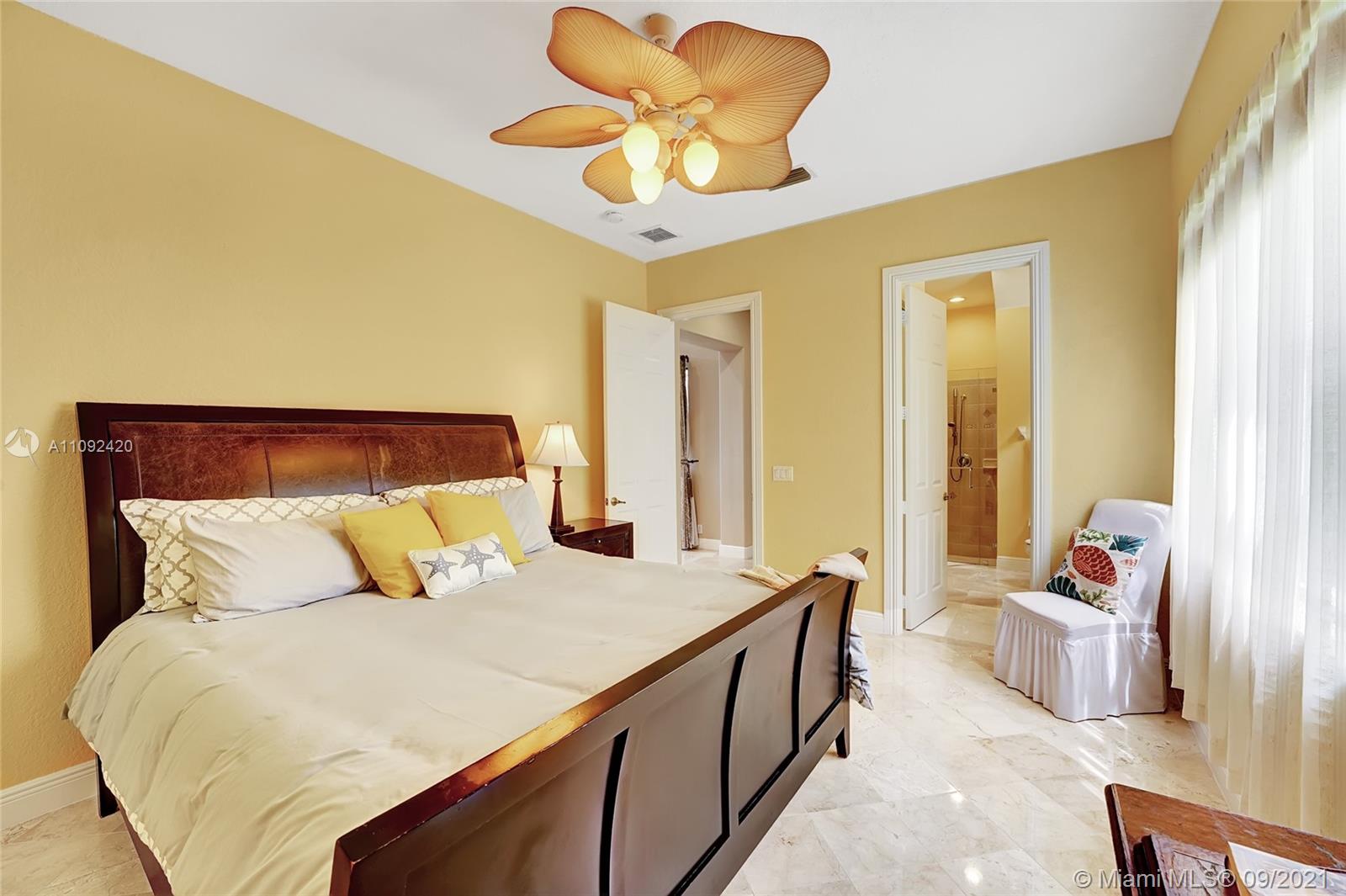 This immaculate 6-bedroom, 5-bathroom home boasts an array of refined finishes, including soaring ceilings, marble floors & walls of windows, bringing breathtaking pool & lake views in as soon as you enter. Large gathering areas include grand living and dining rooms. The open chef's kitchen features a suite of stainless steel appliances including a Viking wall oven & flows into the casual living area. Its outdoor living space includes a screened patio, expansive balcony & welcoming front courtyard. A luxurious owners suite features stunning water views & a grand bath with jetted tub. The vast layout provides ample options for home office, gym, and/or game room areas, making it a great home for everyone to enjoy, in a gated neighborhood with premier amenities & access to excellent schools.