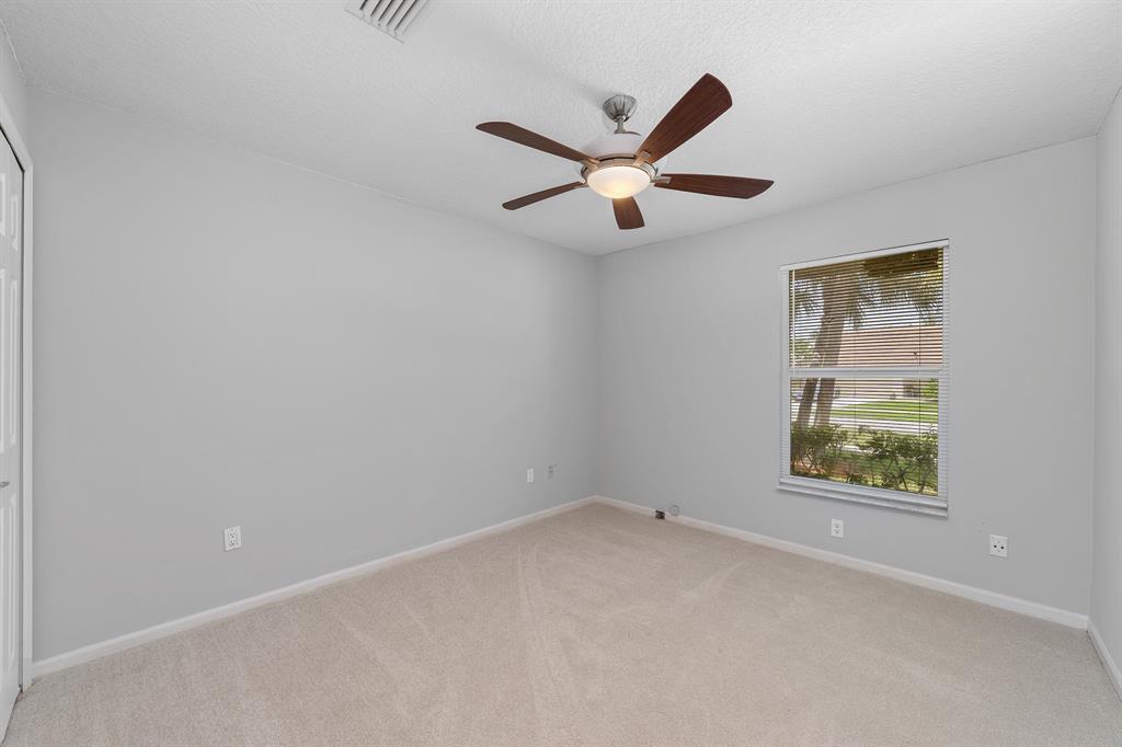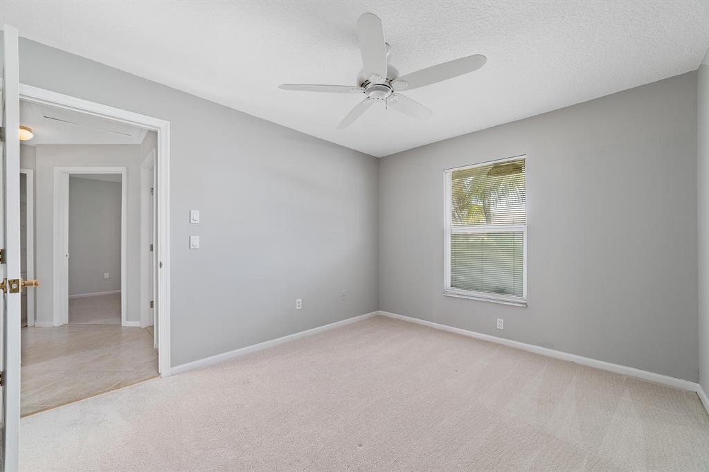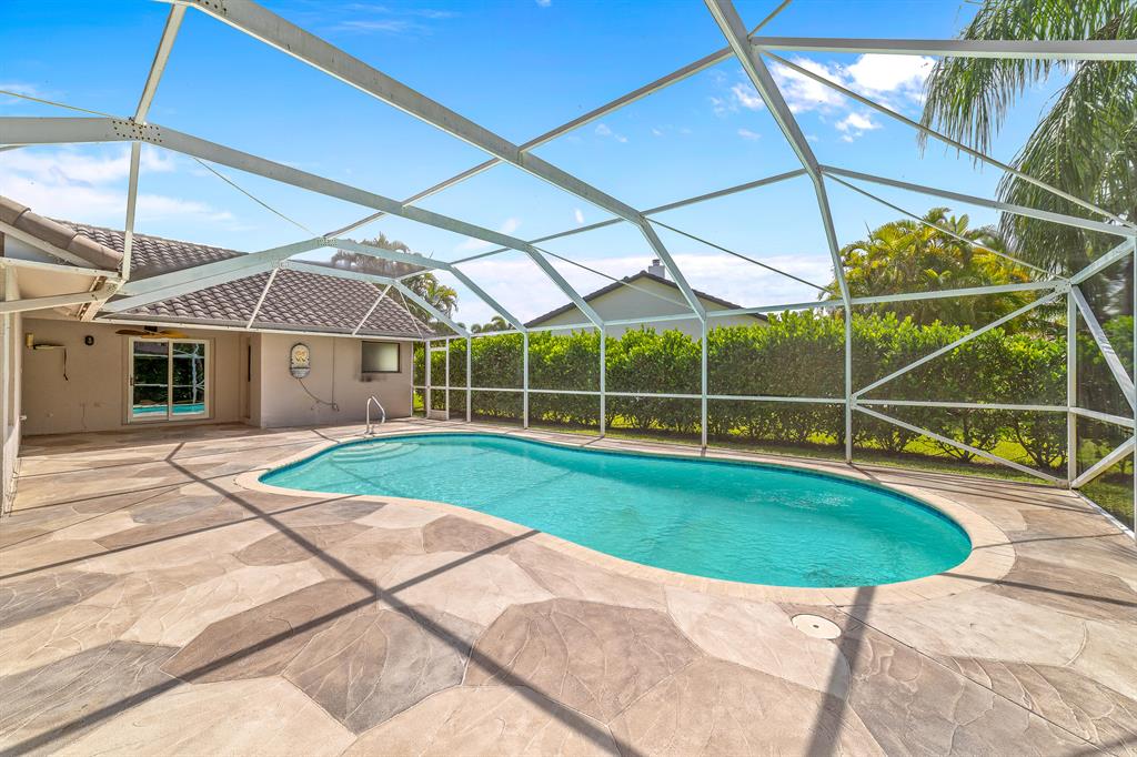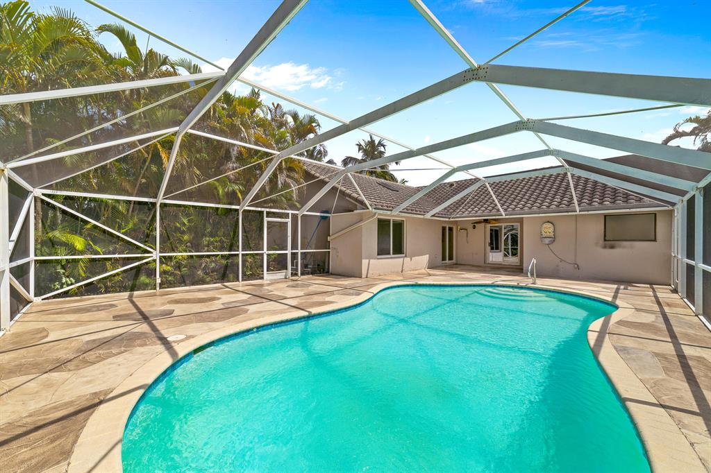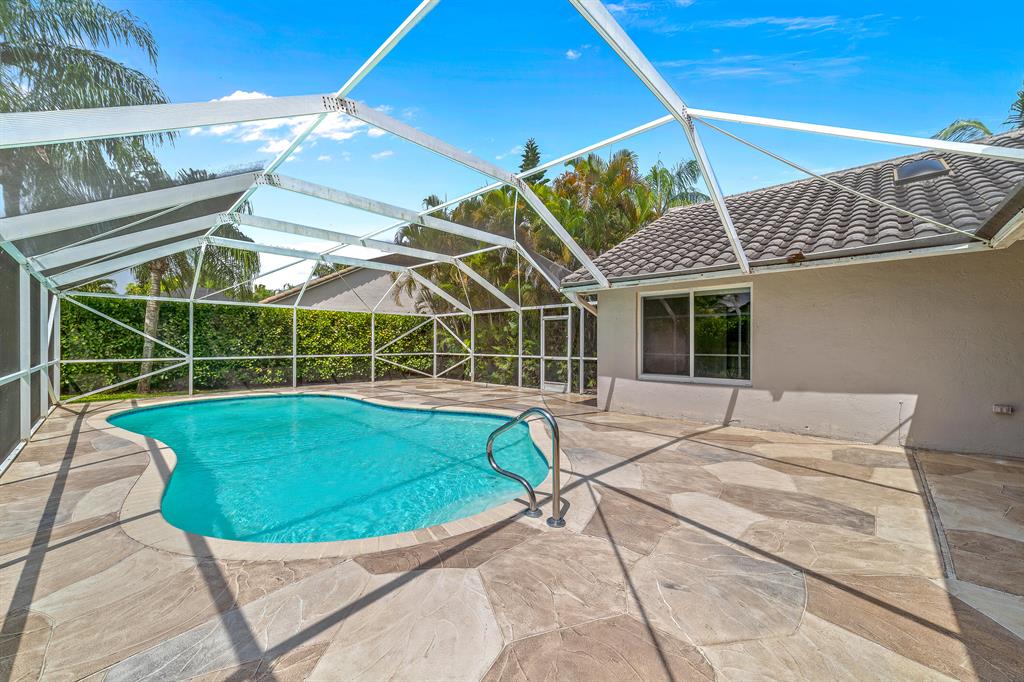 Welcome home! This Boca Raton property checks all the boxes. The home has a terrific location on a cul-de-sac in Cypress Bend. Huge pie shaped lot that offers tons of privacy. As you enter, you immediately notice the soaring vaulted ceilings. The home has tile flooring throughout the living areas and fresh new carpet in the bedrooms. The guest bathroom has been fully updated. Fresh neutral paint on the interior with a split bedroom floor plan. The kitchen opens out into the large family room, perfect for entertaining. Sliding glass doors invite you out to the large stamped concrete patio with large curvilinear pool and huge screened enclosure. The backyard and pool area have terrific privacy with large full hedges on all sides. The property has a two car garage and tons of