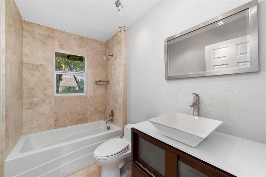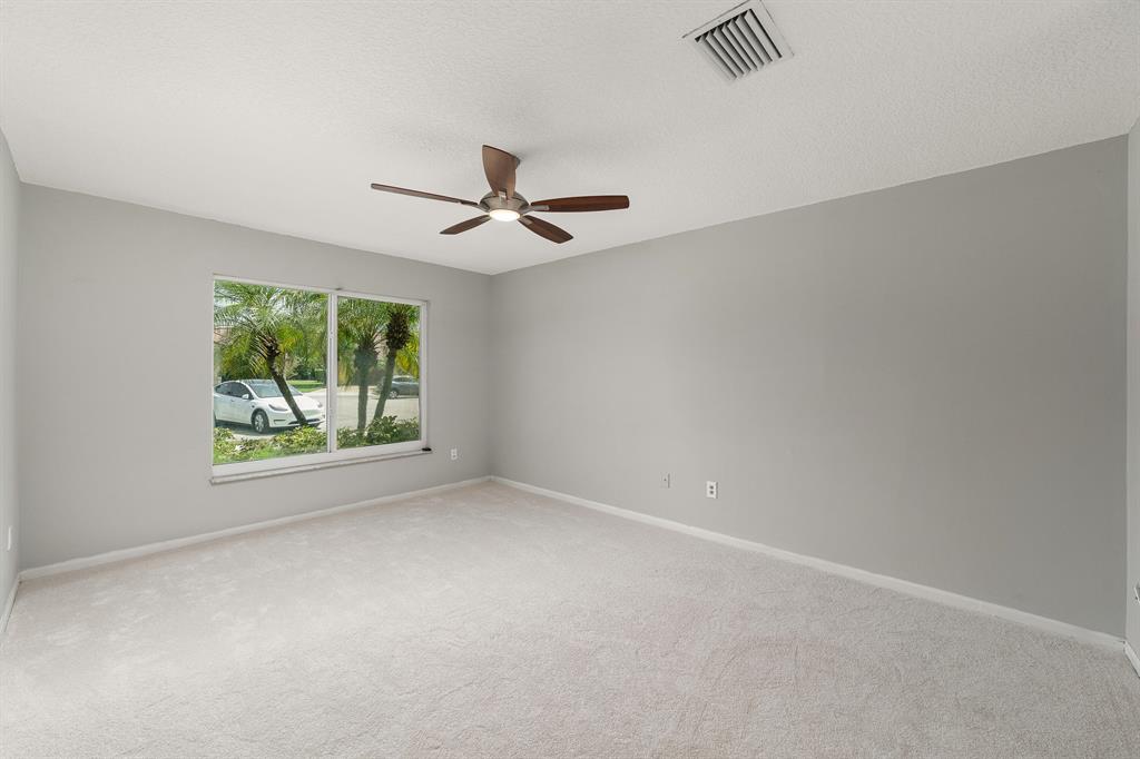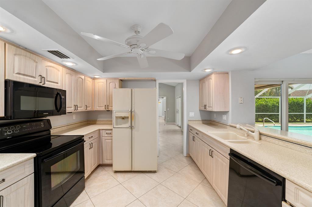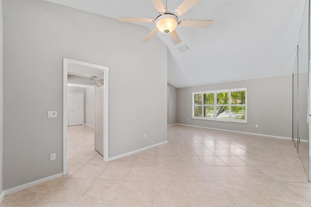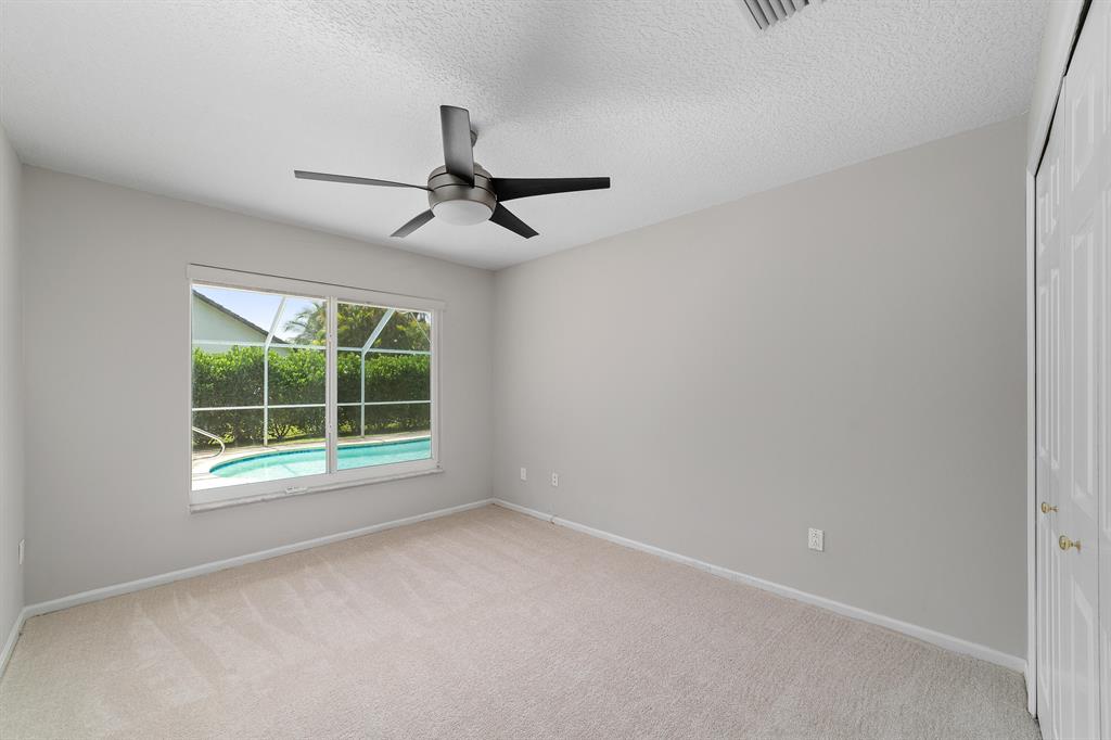 Welcome home! This Boca Raton property checks all the boxes. The home has a terrific location on a cul-de-sac in Cypress Bend. Huge pie shaped lot that offers tons of privacy. As you enter, you immediately notice the soaring vaulted ceilings. The home has tile flooring throughout the living areas and fresh new carpet in the bedrooms. The guest bathroom has been fully updated. Fresh neutral paint on the interior with a split bedroom floor plan. The kitchen opens out into the large family room, perfect for entertaining. Sliding glass doors invite you out to the large stamped concrete patio with large curvilinear pool and huge screened enclosure. The backyard and pool area have terrific privacy with large full hedges on all sides. The property has a two car garage and tons of