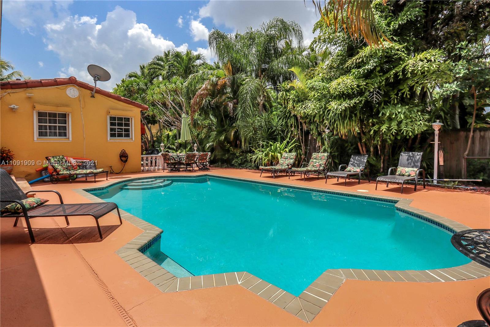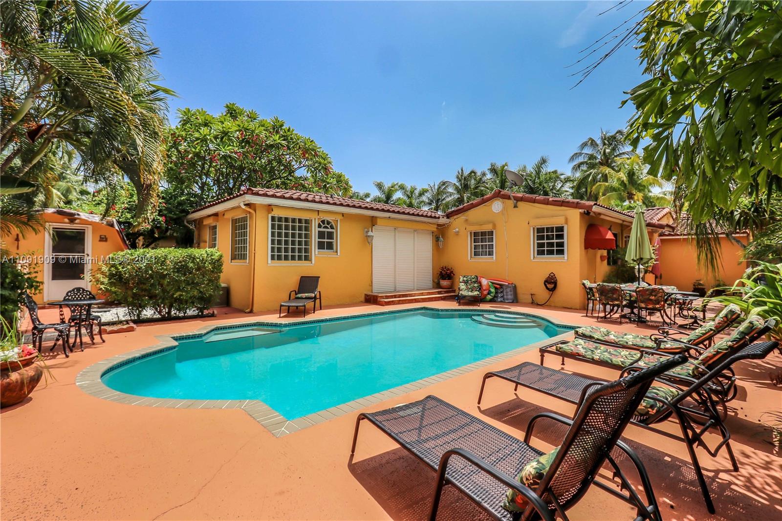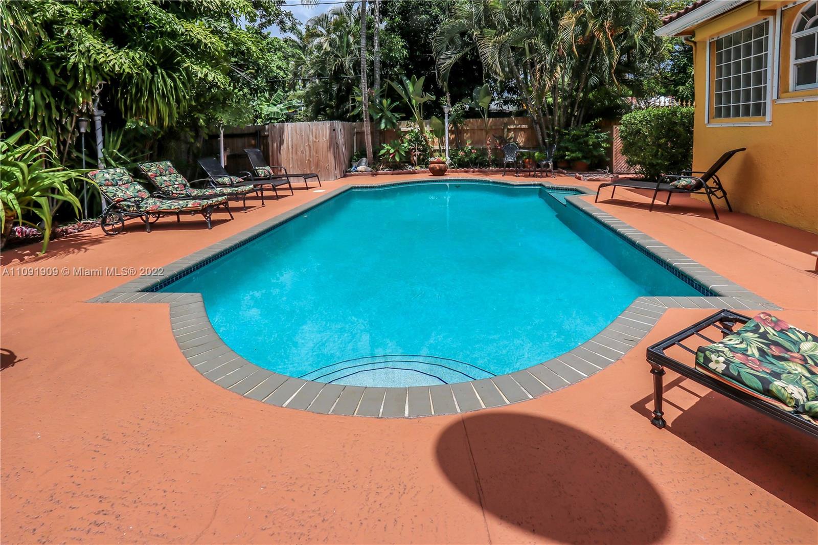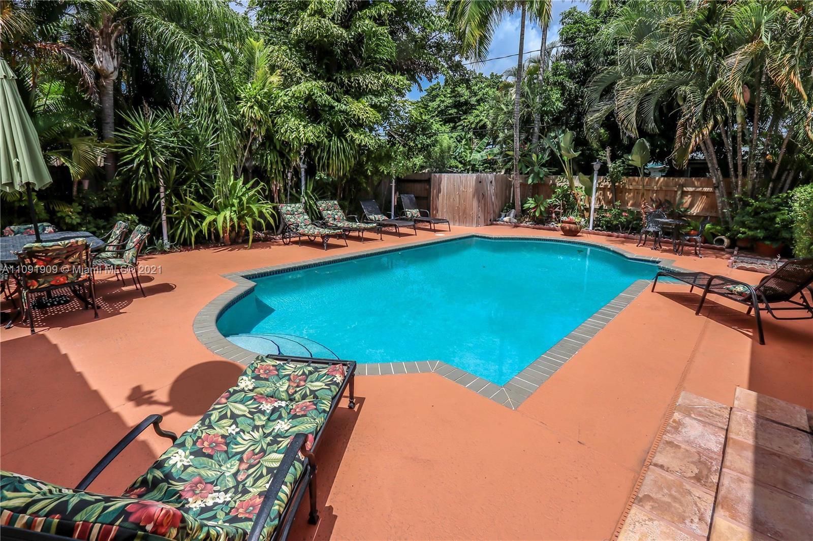 MODERN 4BED / 4BATH FAMILY HOME WITH RESORT STYLE POOL AREA, 5 MINUTES TO BEACH, DOWNTOWN, GULFSTREAM PARK OR AVENTURA! THIS HOME FEATURES FORMAL LIVING ROOM WITH EXPOSED WOOD BEAMS, FRENCH DOORS AND LOTS OF NATURAL LIGHT~ POLISHED HARD WOOD FLOORS IN DINING AREA~ LARGE FAMILY ROOM WITH MARBLE FLOORS AND LARGE WINDOWS OPENING TO PATIO WITH SITTING AREA FOR OUTDOOR DINING EXPERIENCE~ LARGE KITCHEN WITH 2 GRANITE COUNTER AREAS, STAINLESS STEEL APPLIANCES AND WINE COOLER WITH OPENING TO FAMILY ROOM AND BAR EATING AREA~ MASTER SUITE FEATURES LARGE CLOSETS AND OPENS TO BEAUTIFUL HEATED POOL/PATIO AREA. LARGE AND BRIGHT MASTER BATH WITH ROMAN TUB AND SEPARATE SHOWER. FENCED BACKYARD WITH TROPICAL LANDSCAPE SURROUNDING POOL AND PATIO.