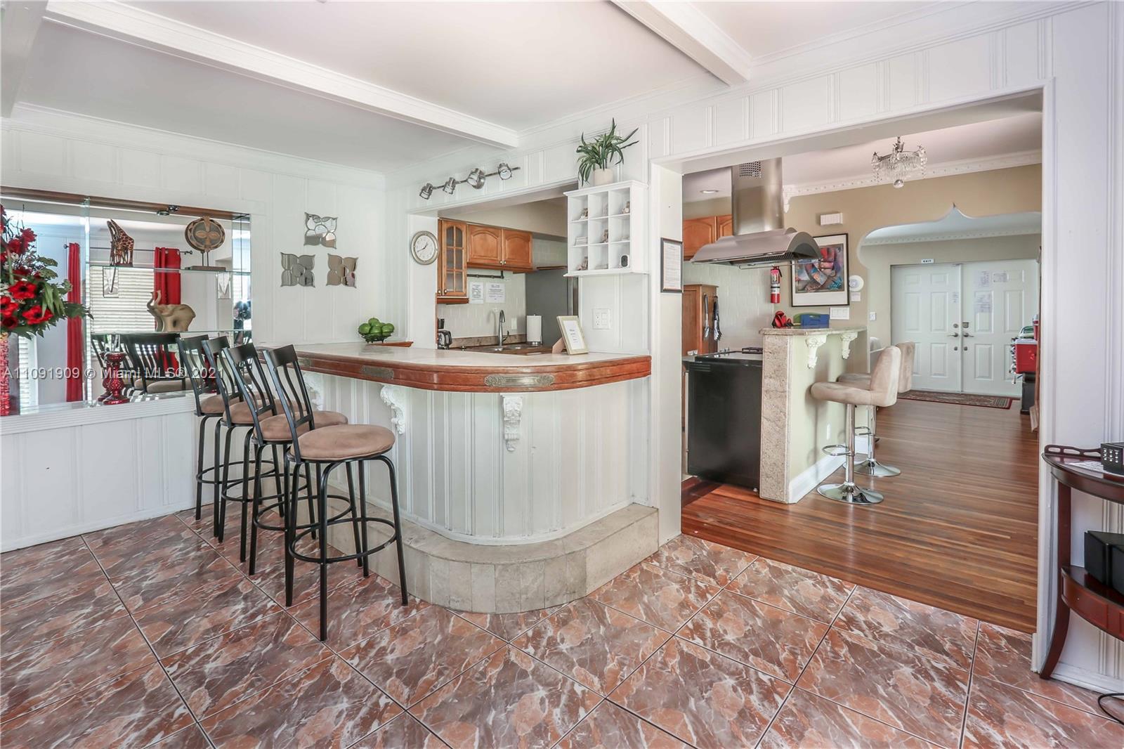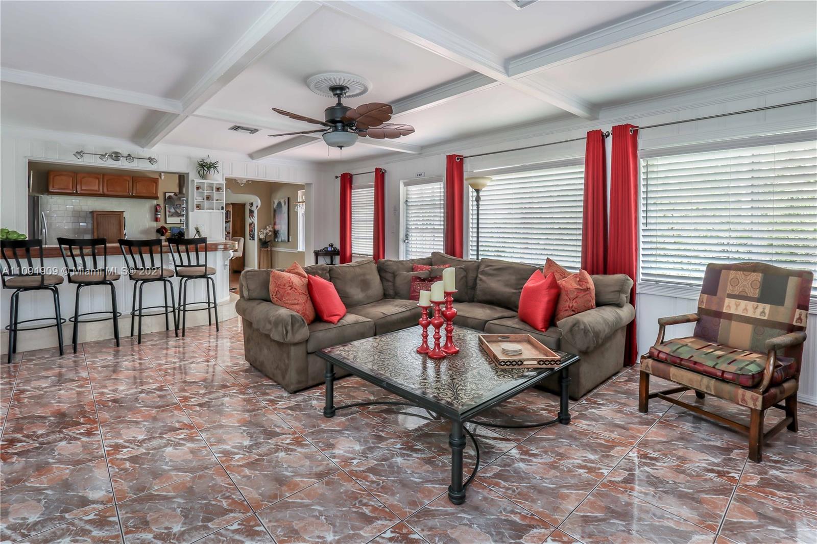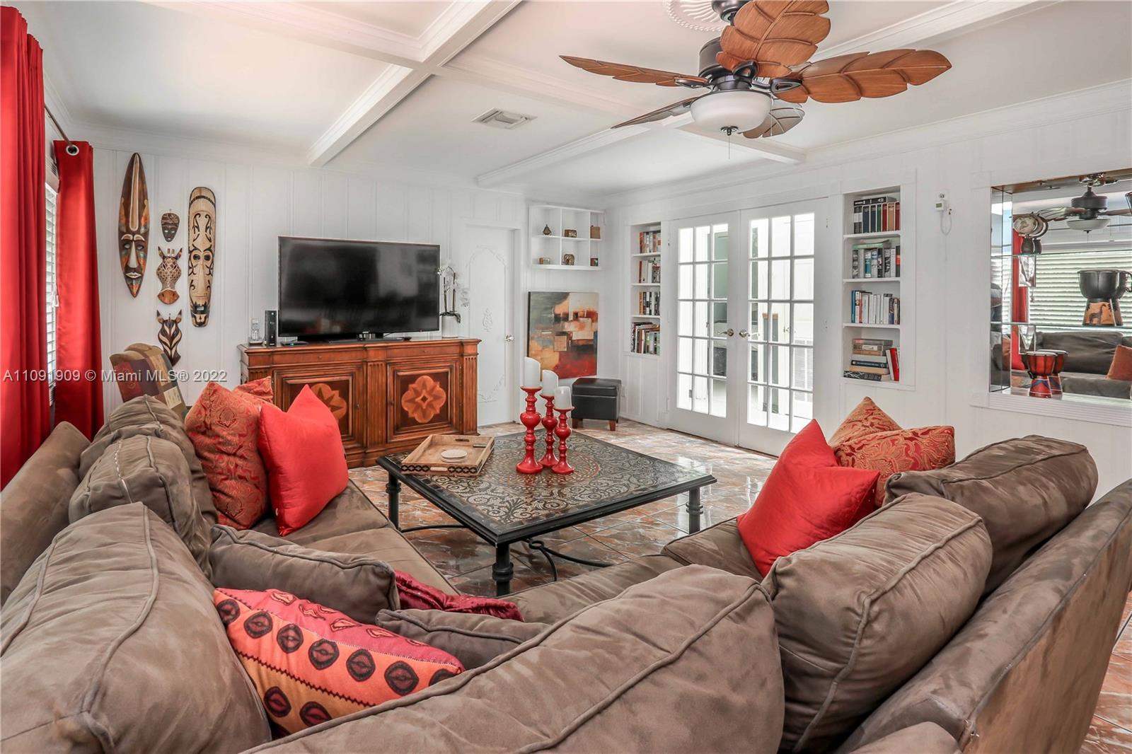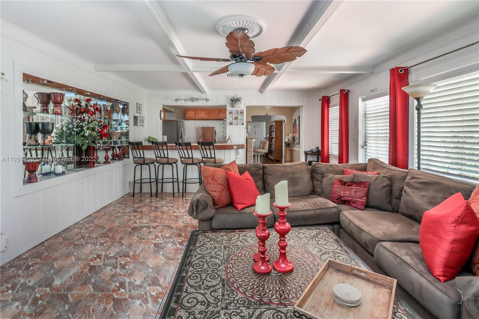 MODERN 4BED / 4BATH FAMILY HOME WITH RESORT STYLE POOL AREA, 5 MINUTES TO BEACH, DOWNTOWN, GULFSTREAM PARK OR AVENTURA! THIS HOME FEATURES FORMAL LIVING ROOM WITH EXPOSED WOOD BEAMS, FRENCH DOORS AND LOTS OF NATURAL LIGHT~ POLISHED HARD WOOD FLOORS IN DINING AREA~ LARGE FAMILY ROOM WITH MARBLE FLOORS AND LARGE WINDOWS OPENING TO PATIO WITH SITTING AREA FOR OUTDOOR DINING EXPERIENCE~ LARGE KITCHEN WITH 2 GRANITE COUNTER AREAS, STAINLESS STEEL APPLIANCES AND WINE COOLER WITH OPENING TO FAMILY ROOM AND BAR EATING AREA~ MASTER SUITE FEATURES LARGE CLOSETS AND OPENS TO BEAUTIFUL HEATED POOL/PATIO AREA. LARGE AND BRIGHT MASTER BATH WITH ROMAN TUB AND SEPARATE SHOWER. FENCED BACKYARD WITH TROPICAL LANDSCAPE SURROUNDING POOL AND PATIO.