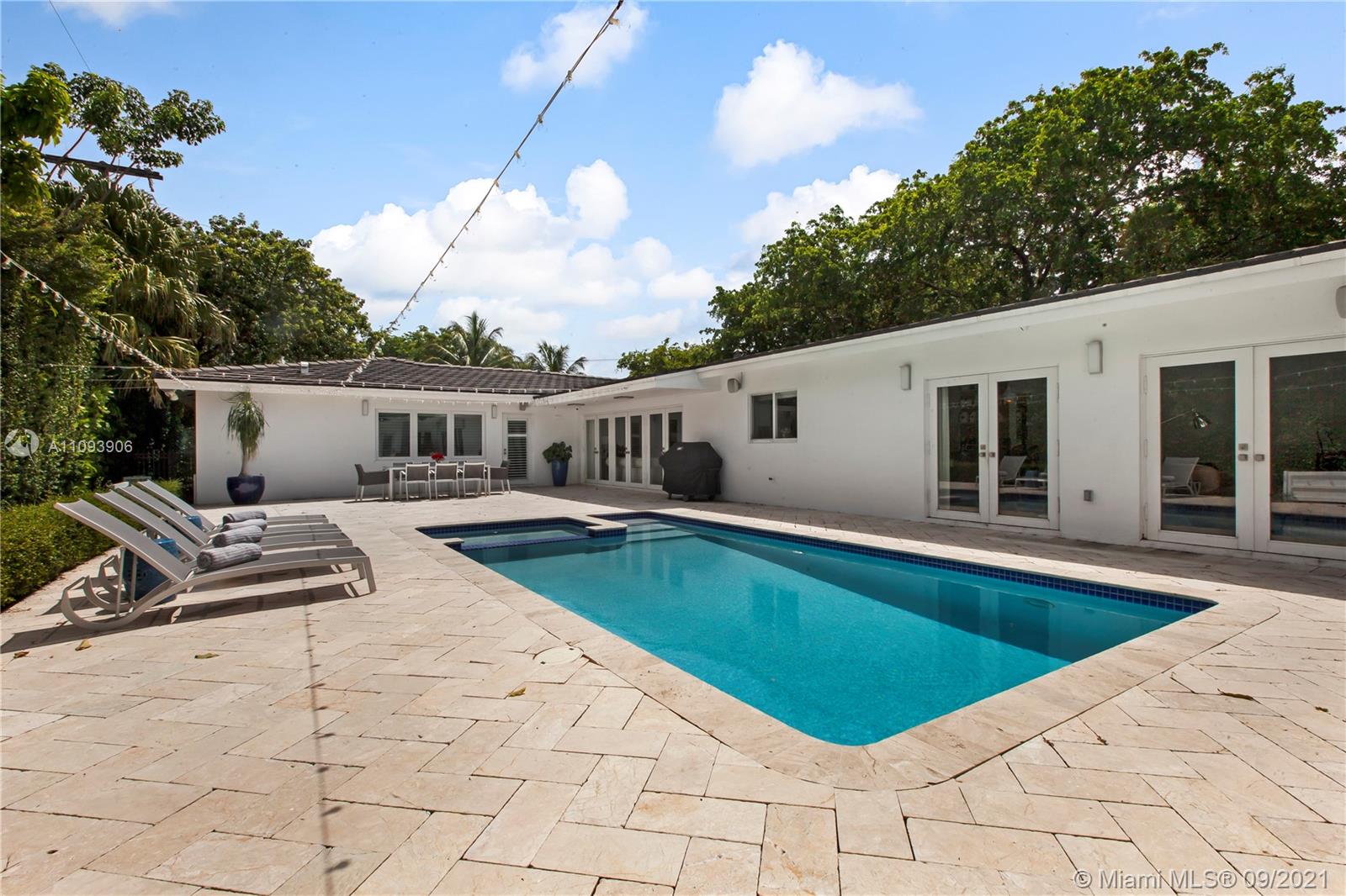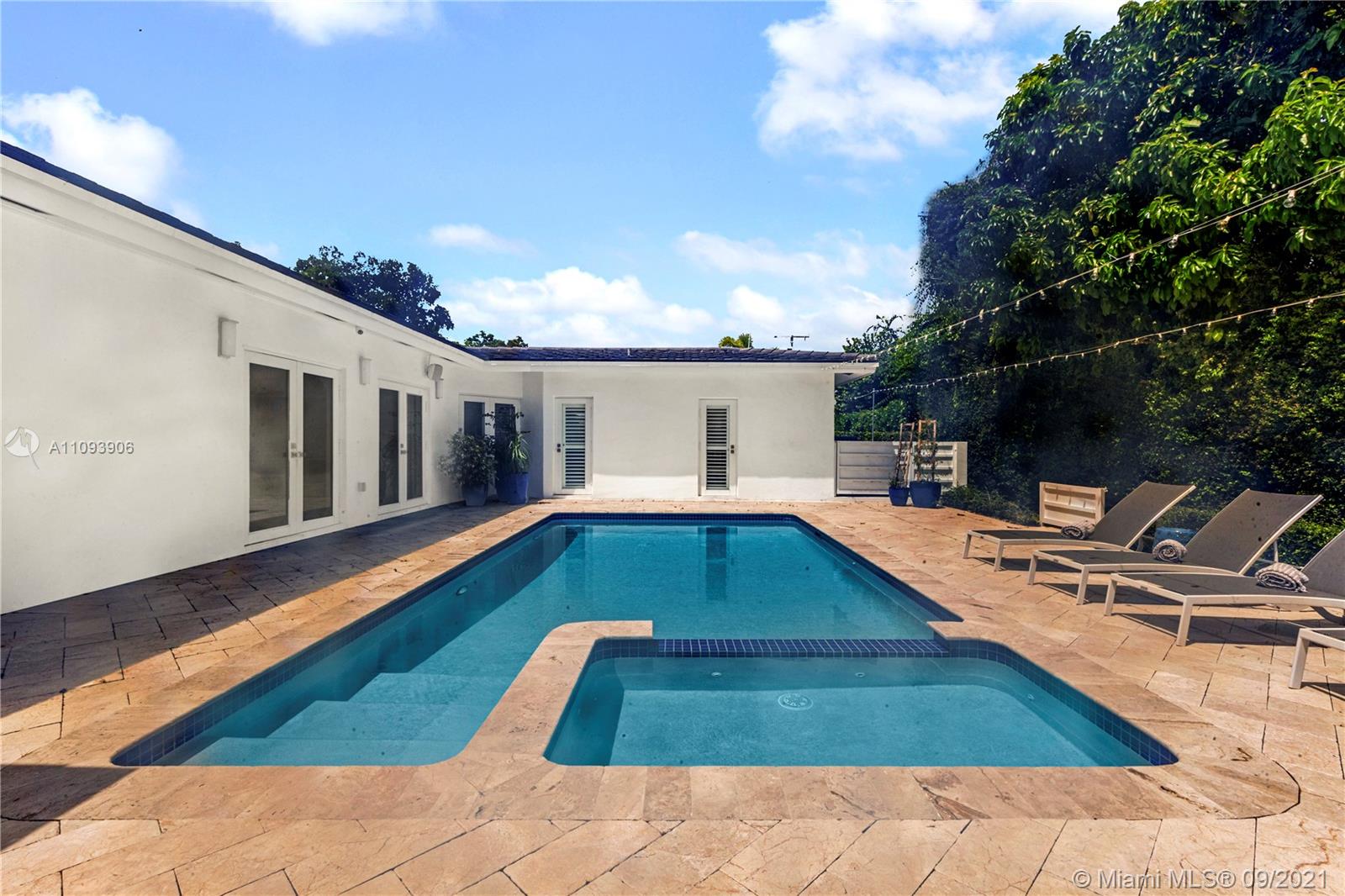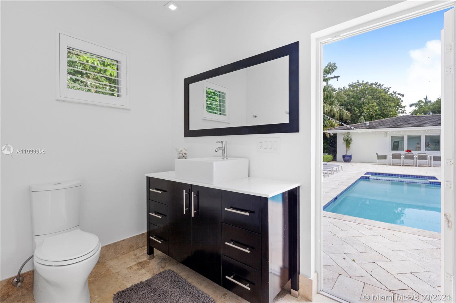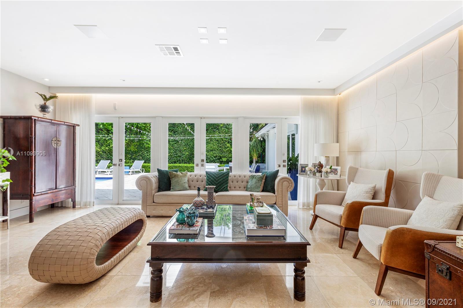 Stylish and Elegant one story home sitting on a 19,422 SF corner lot at a prestigious Coral Gables address. This tastefully completed renovated 5BD/6BA home features exceptional finishes like Ornare kitchen; high end appliances; recess lighting; linen curtains & plantation shutters; surround sound system; heated pool; generator; impact windows; marble and wood floors and more. New owner can start to enjoy this great turnkey house immediately. Very low running costs. Close to top schools, shops and entertainment. Ideally located for a healthy and active lifestyle.