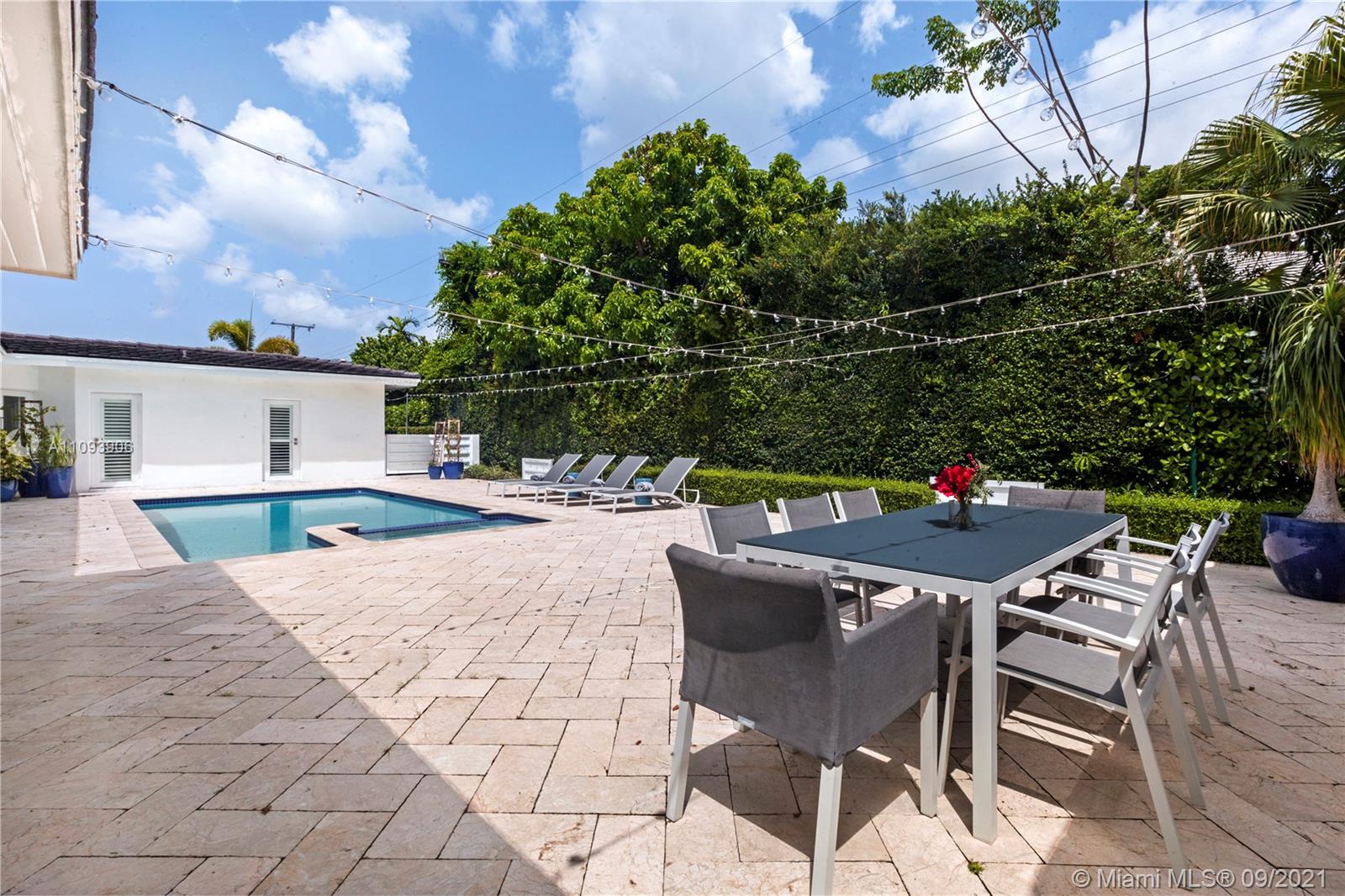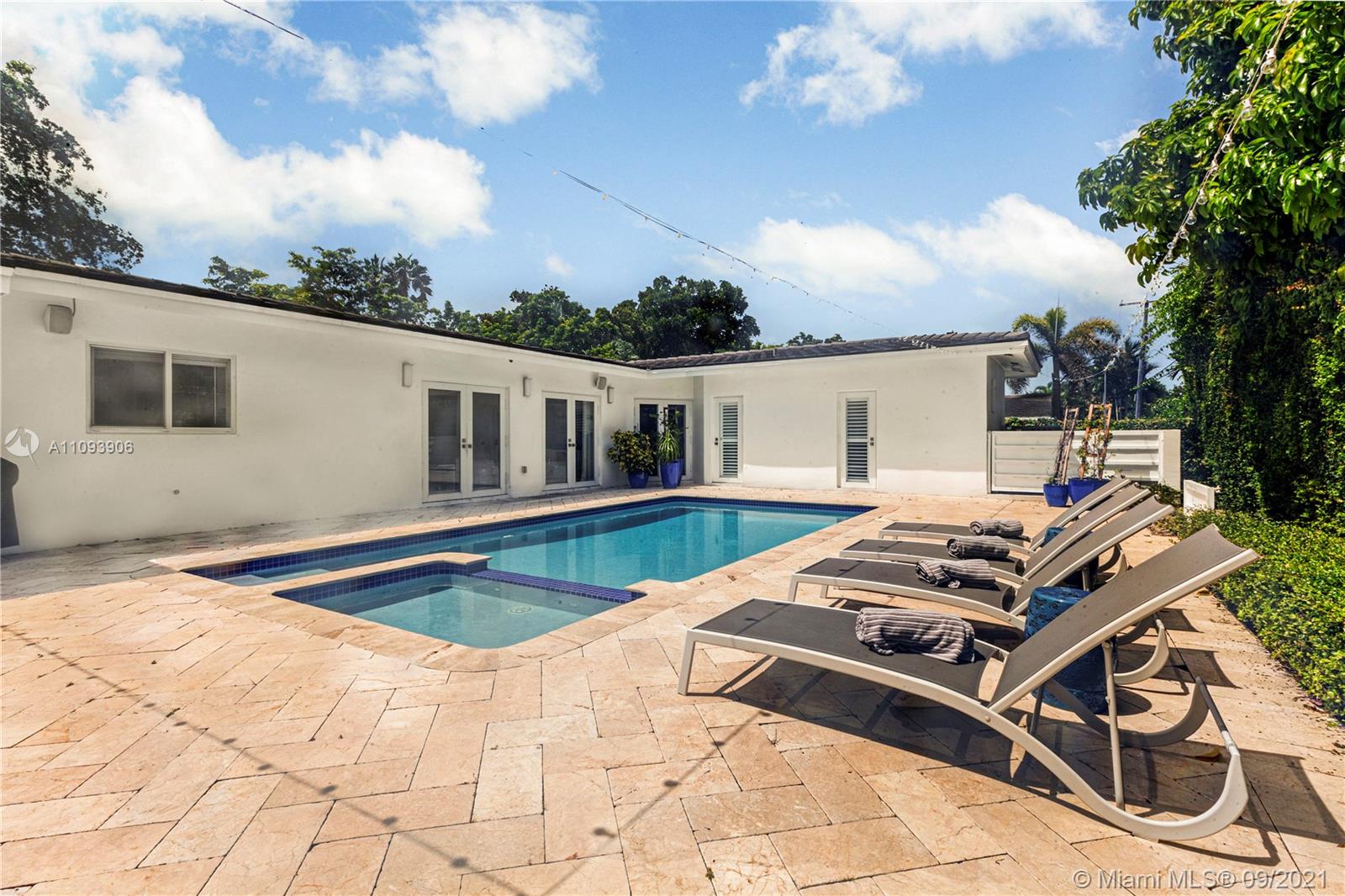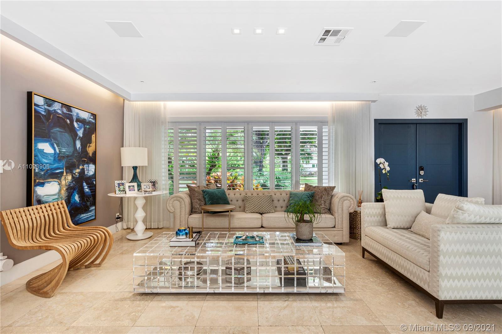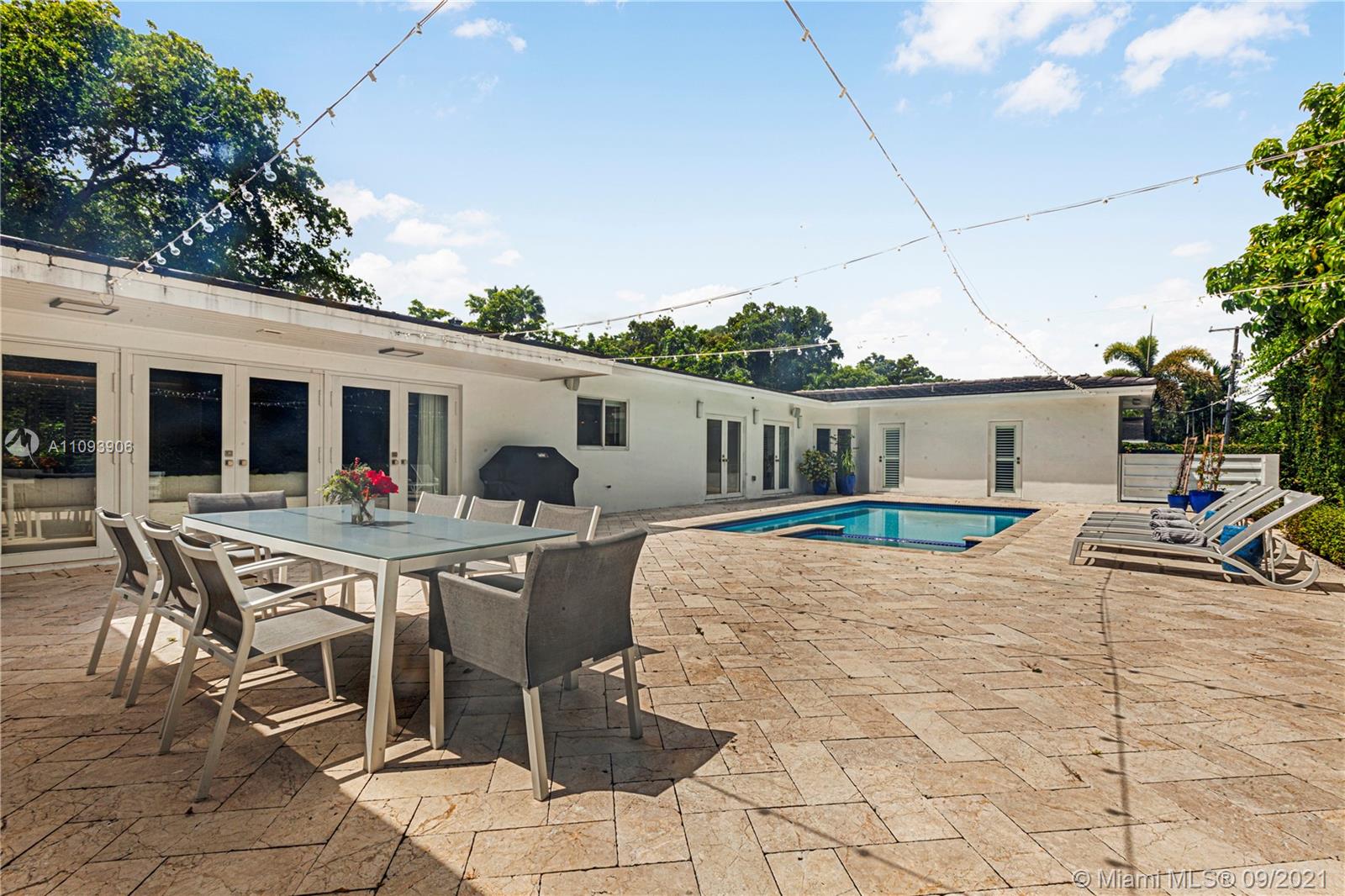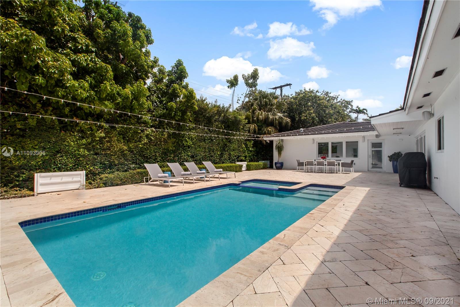 Stylish and Elegant one story home sitting on a 19,422 SF corner lot at a prestigious Coral Gables address. This tastefully completed renovated 5BD/6BA home features exceptional finishes like Ornare kitchen; high end appliances; recess lighting; linen curtains & plantation shutters; surround sound system; heated pool; generator; impact windows; marble and wood floors and more. New owner can start to enjoy this great turnkey house immediately. Very low running costs. Close to top schools, shops and entertainment. Ideally located for a healthy and active lifestyle.