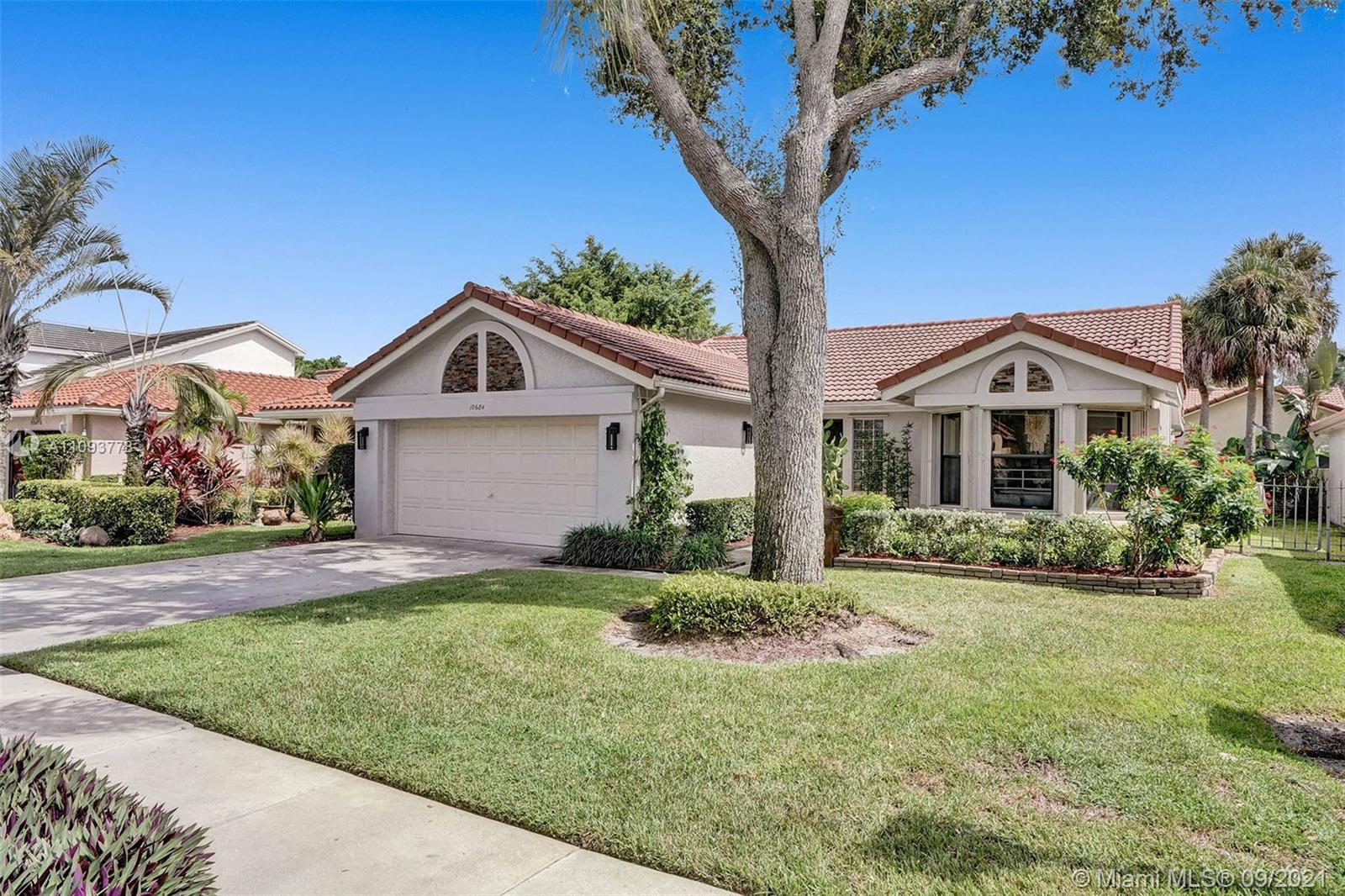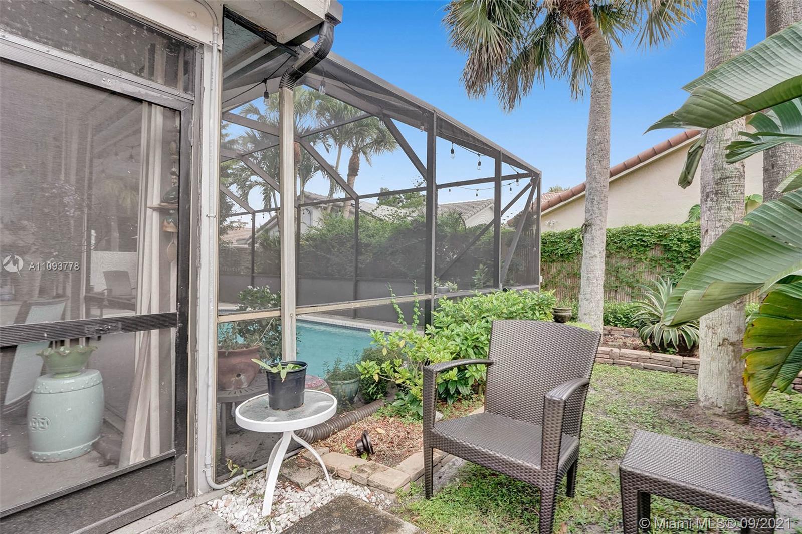Welcome to your new home in the amenity-filled neighborhood of Mission Bay. This lovely 3/2 home has bright vaulted ceilings in the living room. The interior has newly painted walls and updated floors. This home is move-in ready! As you make your way in you see straight through to the screened-in pool with a brand new pool heater. The kitchen has stainless steel appliances and a window nook that looks into the front yard. The Master bedroom suite has sliding glass doors with access to the pool and has a large walk-in closet w/ an en-suite bath. The neighborhood clubhouse gives you access to a large resort-style saltwater pool, high-end gym, clubhouse, playroom, + many more amenities. 24hr security, high-speed internet, and cable are all included at a super low HOA! Make your move today!