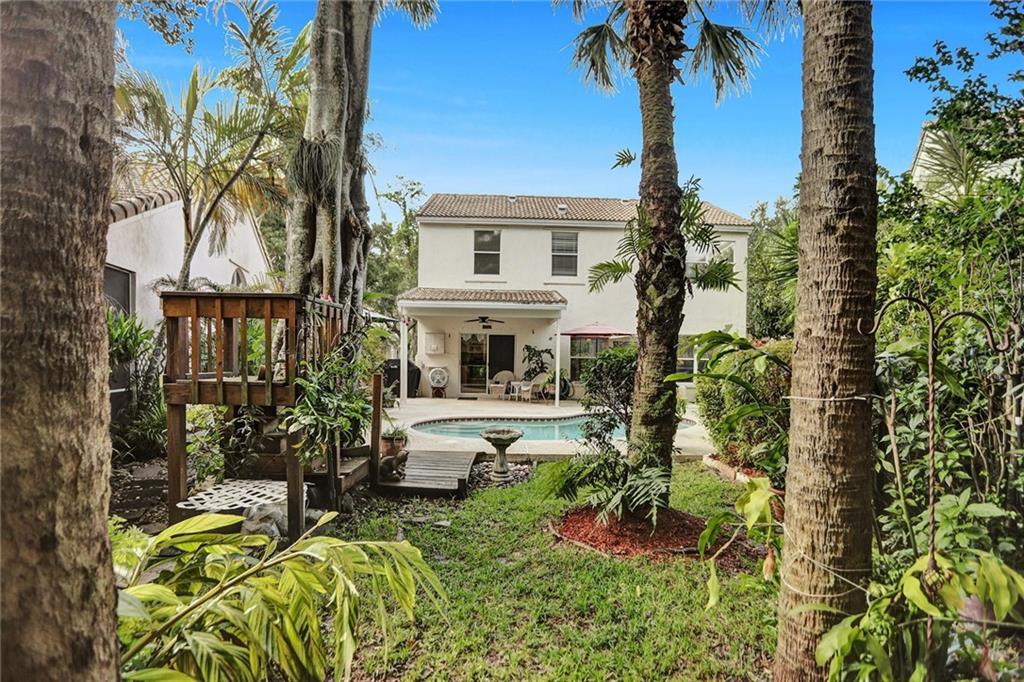 Renovated 2 story w/ the most beautiful backyard and pool! Immaculate home is set in the Preserve a precious, subtropical forest w/ rare plants from places like Cuba and the West Indies! Stepping outside you are met w/ glorious views of the striking blue pool and a meandering path to walk alongside the squirrels and birds! Interior has a stunning solid oak stairway to an upstairs w/3 bedrooms, a laundry room, a bath and a renovated master bath that will take your breath away! It has a huge jacuzzi tub, double vanities/sinks, and a beautifully tiled walk in shower! All bedrooms overlook the glorious back with trees blowing in the wind! Downstairs has a spacious living room, dining area, an eat-in kitchen and a converted garage w/ central a/c-a bonus room to meet your dreams! Won't last!