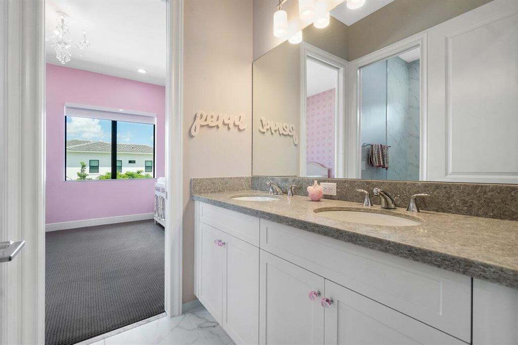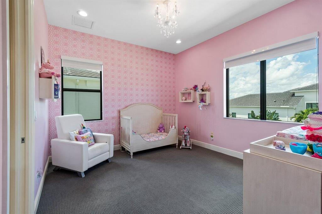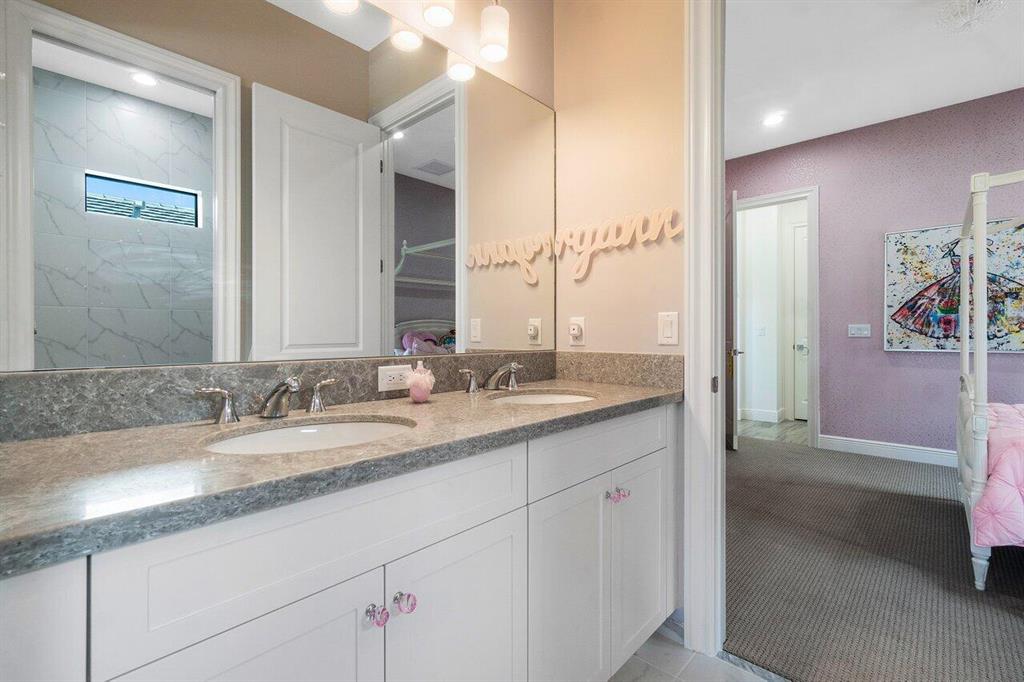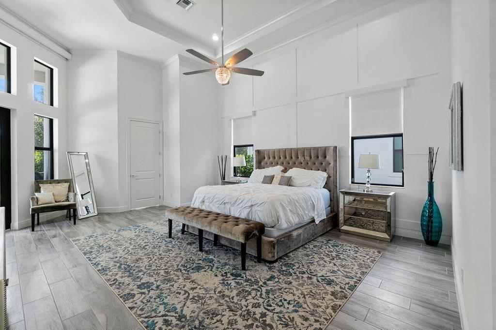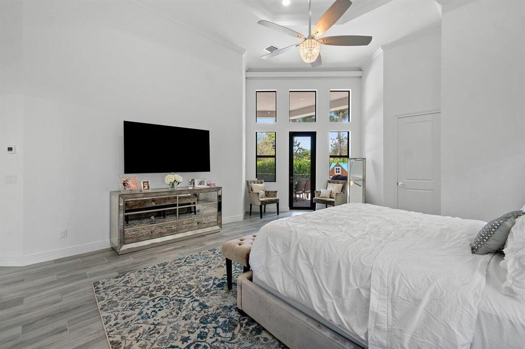 RARELY AVAILABLE Callahan model in the desirable gated community of Royal Palm Polo! Nestled in a quiet corner of the neighborhood featuring 5 Beds + Office + Loft with Master Bedroom on the ground floor with split his & hers master baths & closets! Soaring 22' ceilings on the 1st floor with tons of natural light. CONTEMPORARY finishes & custom molding, stunning window treatments, light fixtures & built-in closets! Bright chef's kitchen features Wolf/ Subzero appliances, gas cooktop & with views of the pool and fenced-in yard. NON-MEMBERSHIP community including gym, playground, 6 HarTru tennis courts, basketball, pickleball, & resort-style pool! A-rated schools! Floor plan with measurements attached and in the photos.