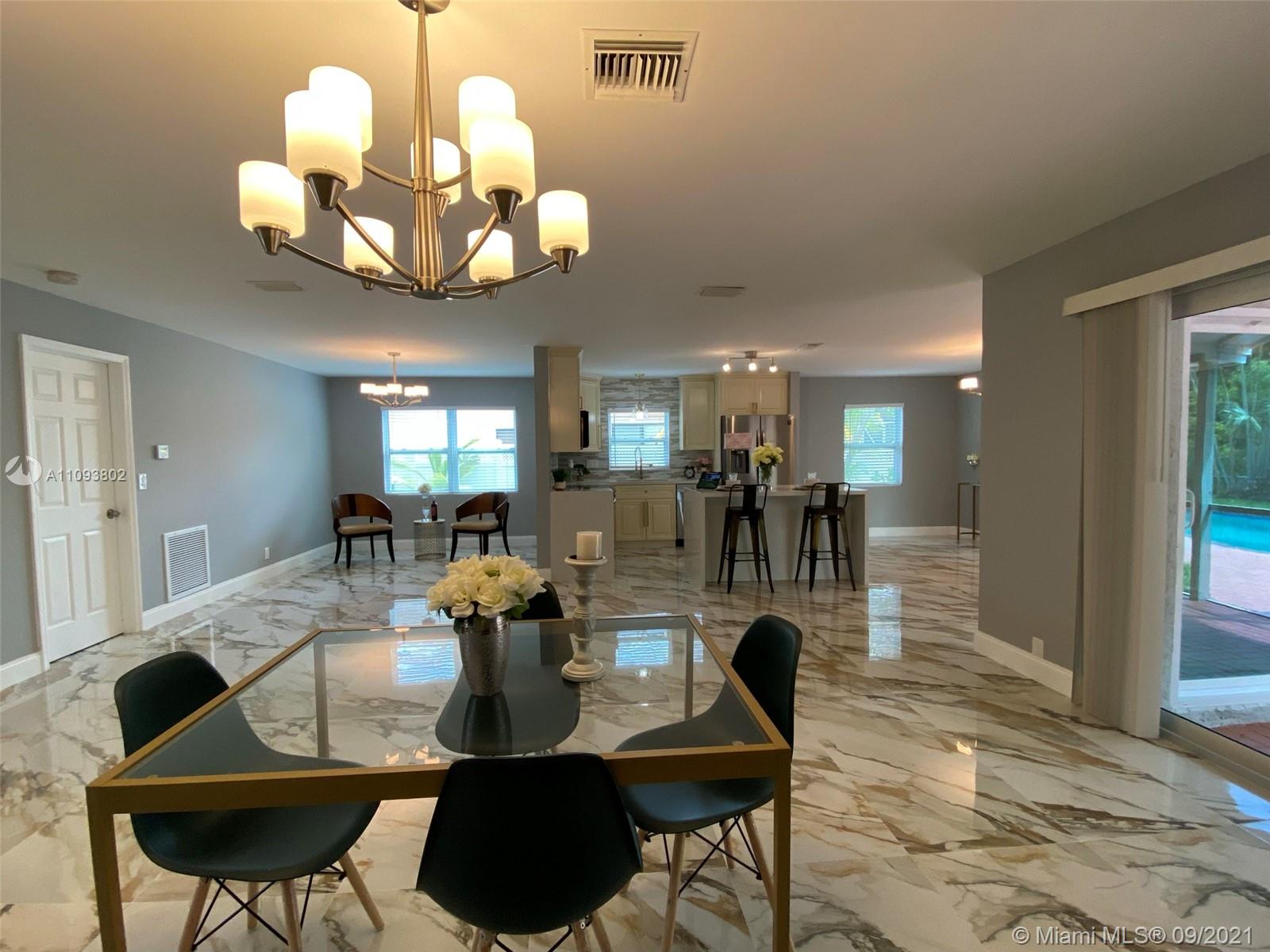 Luminous elegant one story pool home ,canal view,4 Bedrooms and 2 Bath. Totally Renovated and Remodeled from head to toe.Large free-form pool covered by a New pergola,New wood deck and Screened in patio. New Roof, New Impact Windows and Doors, New bathroom remodeling, New Kitchen remodeling, New smoke detector All these jobs done with permit. Decent size master bedroom w/walking closet. New A/C air handler.New luxury kitchen w/Quartz counter top on hard wood Cabinets & New SS Appliances. New Plumbing & Electrical fixtures. New flooring &Wood laminate in Bedrooms. 2 Car Garage with new Epoxy flooring. New landscaping with. New Pool equipment. Freshly exterior and interior painting.Fully fence. New Driveway Asphalt.New irrigation piping and equipment.Convenient location close to everything
