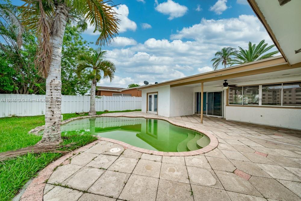 Lovely 4 bedroom, 2 bathroom single family home in Sunrise! This perfect starter home or investment opportunity is located on a large lot and offers a spacious layout in a very convenient location. Upon entering this home you will find a spacious living room area leading to the kitchen with plenty of windows allowing for natural light and beautiful neutral paint throughout. In the kitchen you will find lots of wooden cabinets for storage space. The exterior of this home features a large lot that can be fenced-in complete with a spacious patio area and a pool making this home perfect for outdoor entertaining. This home is conveniently located just minutes from major roadways, shopping, dining and more!